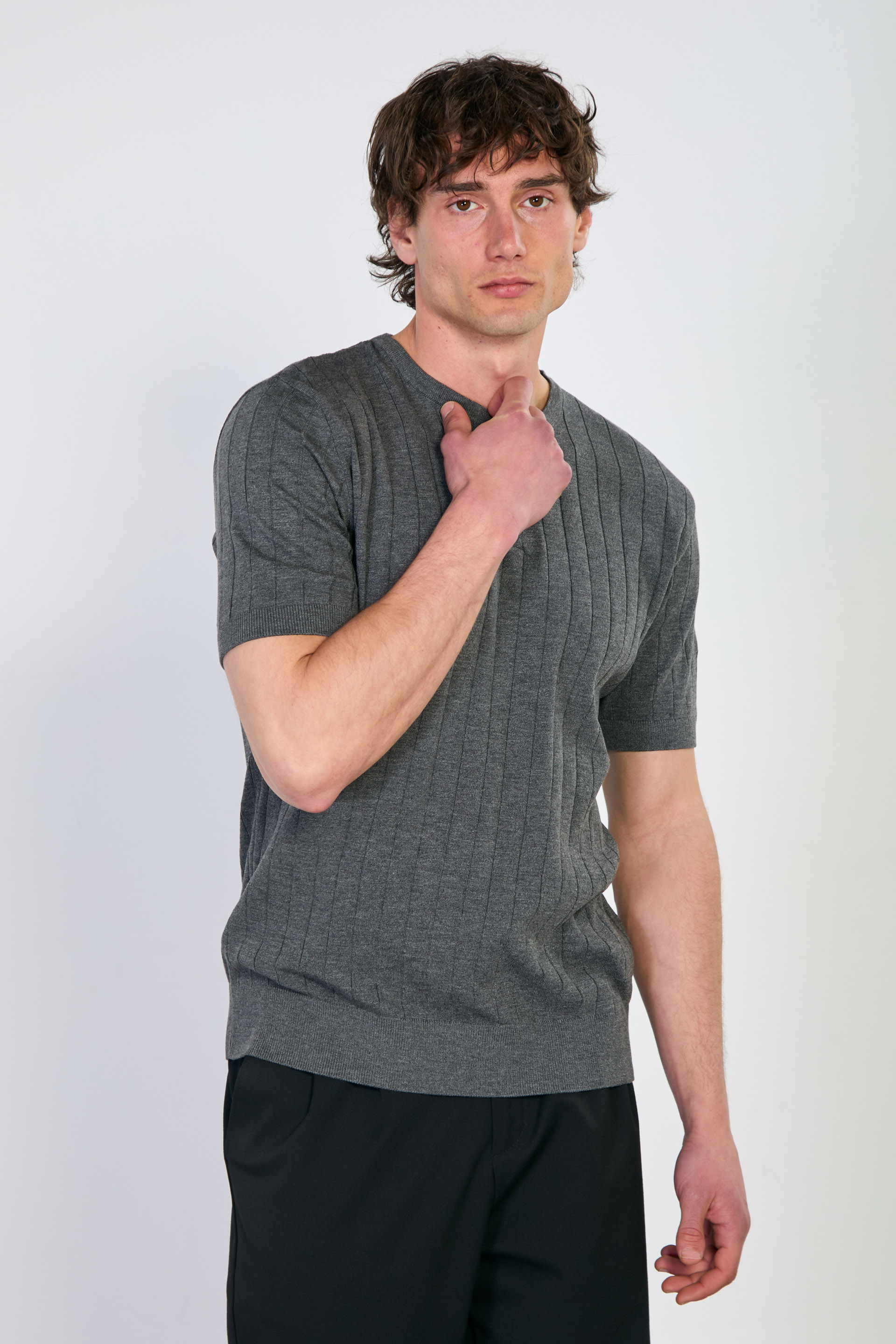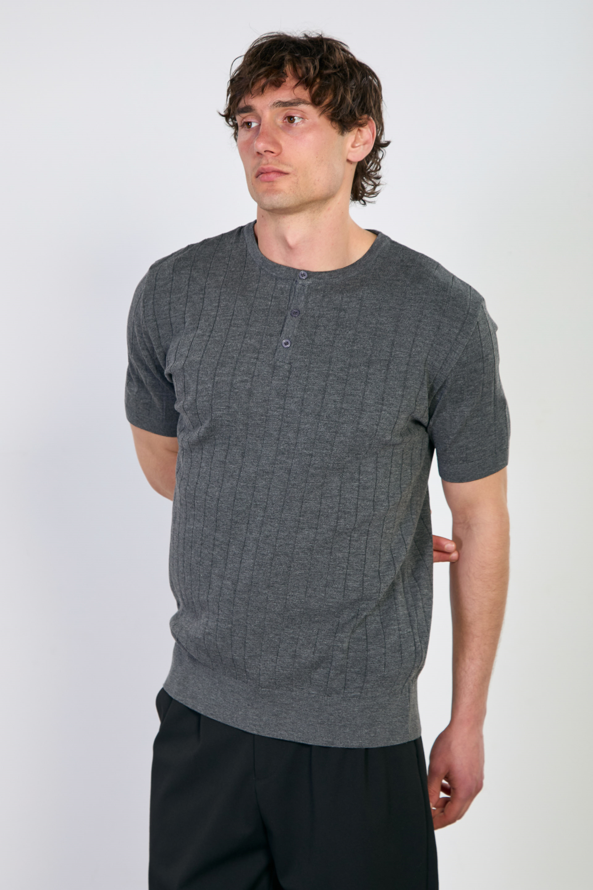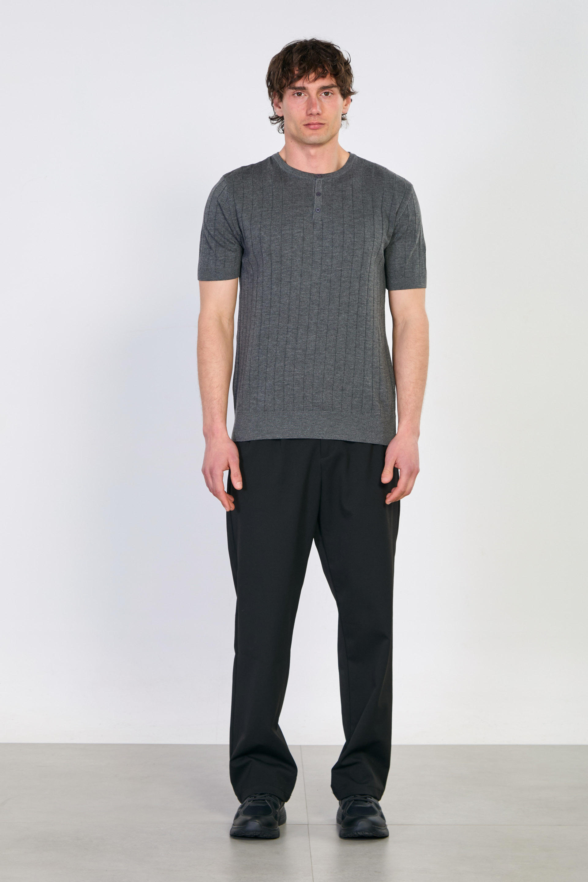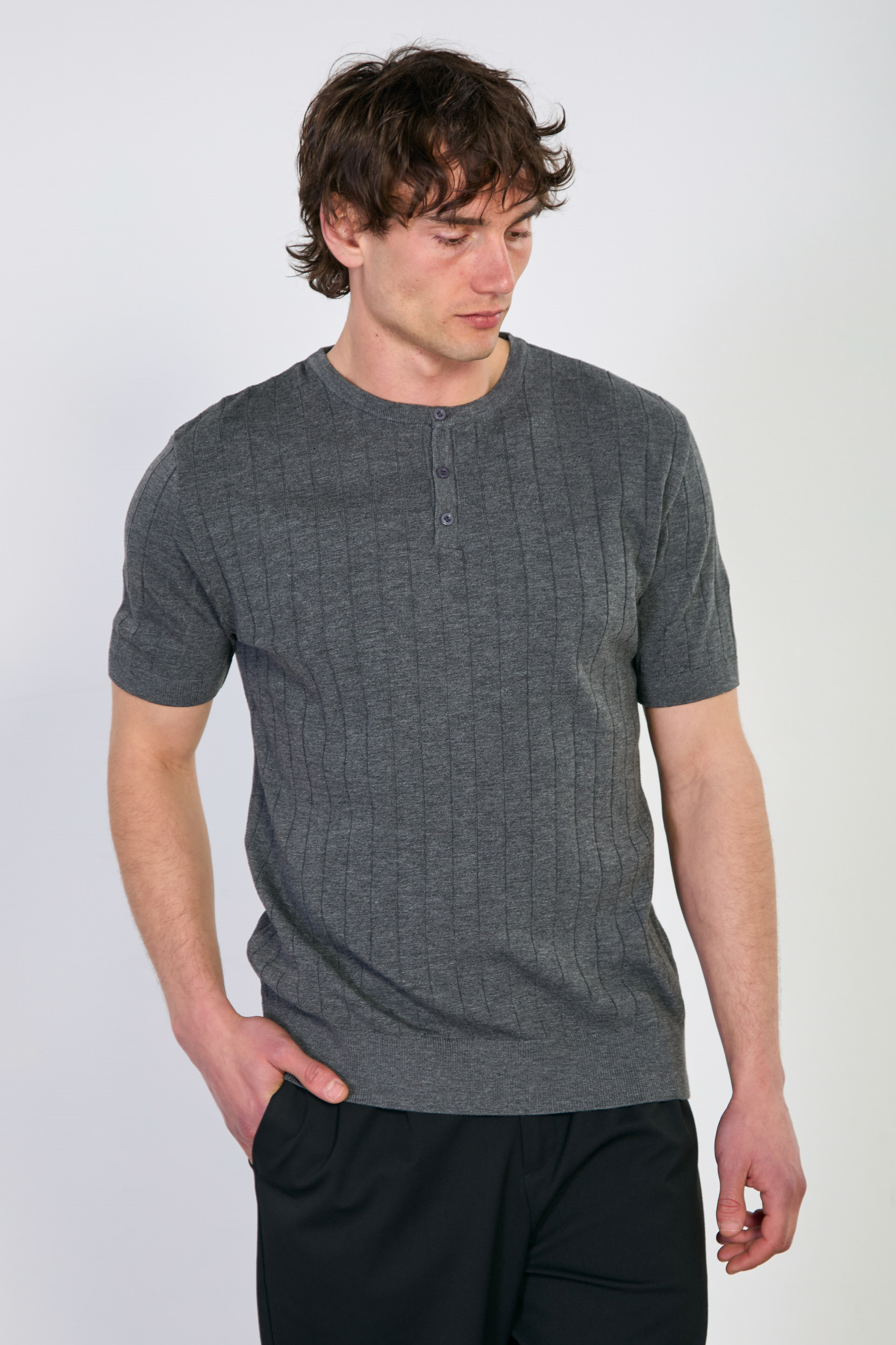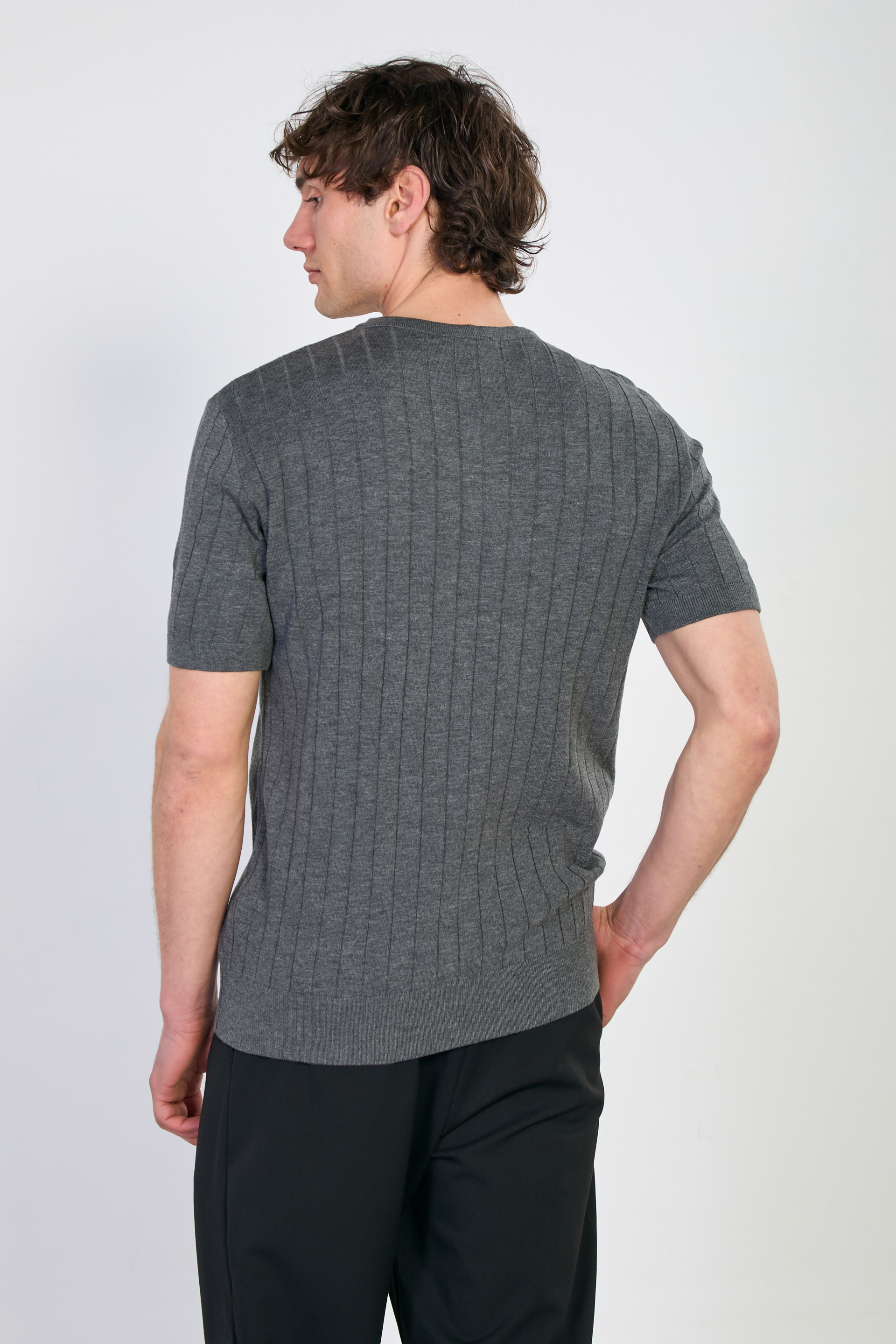Erkek Bisiklet Yaka Düğmeli Triko T-Shirt - Antrasit