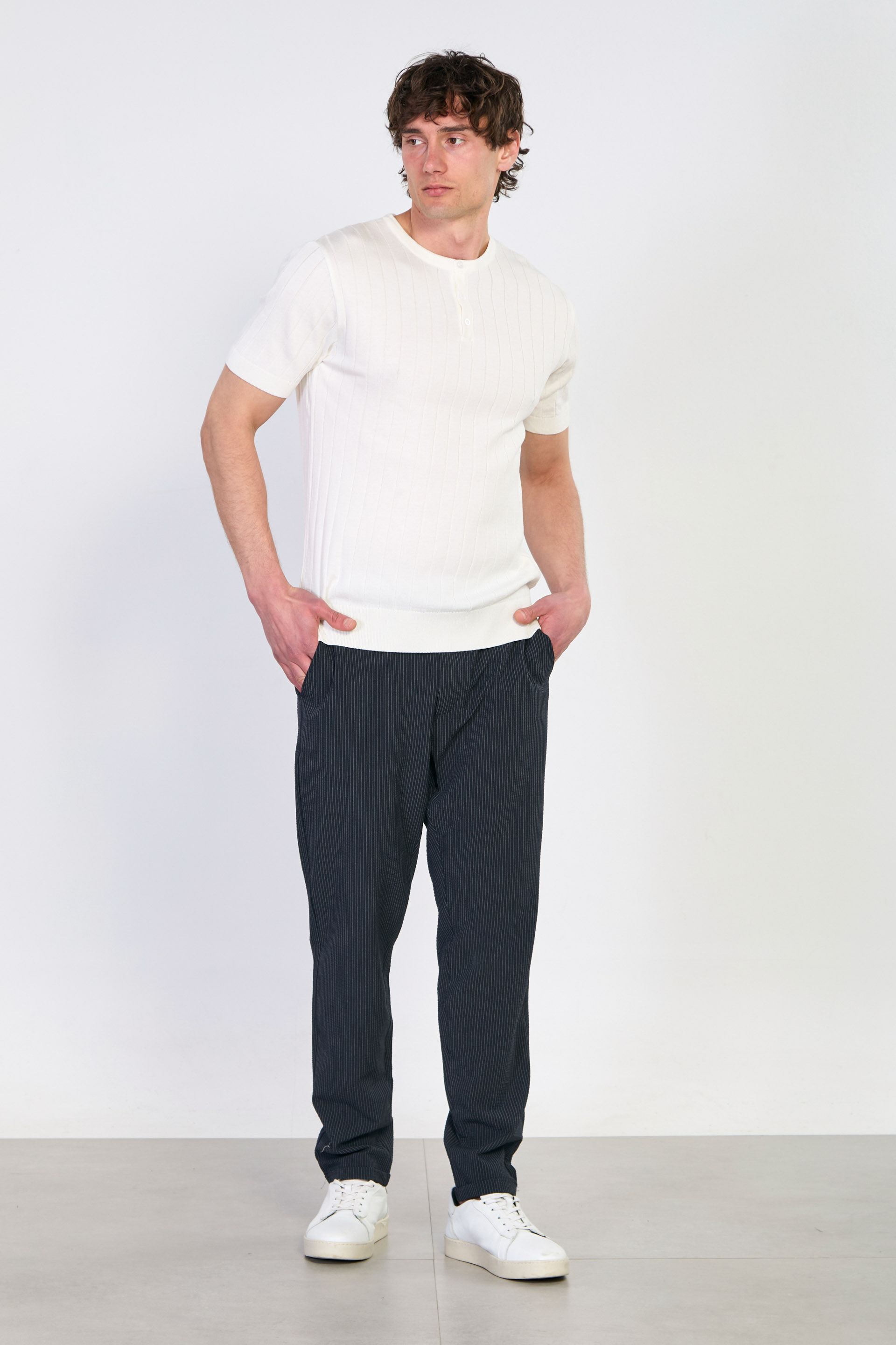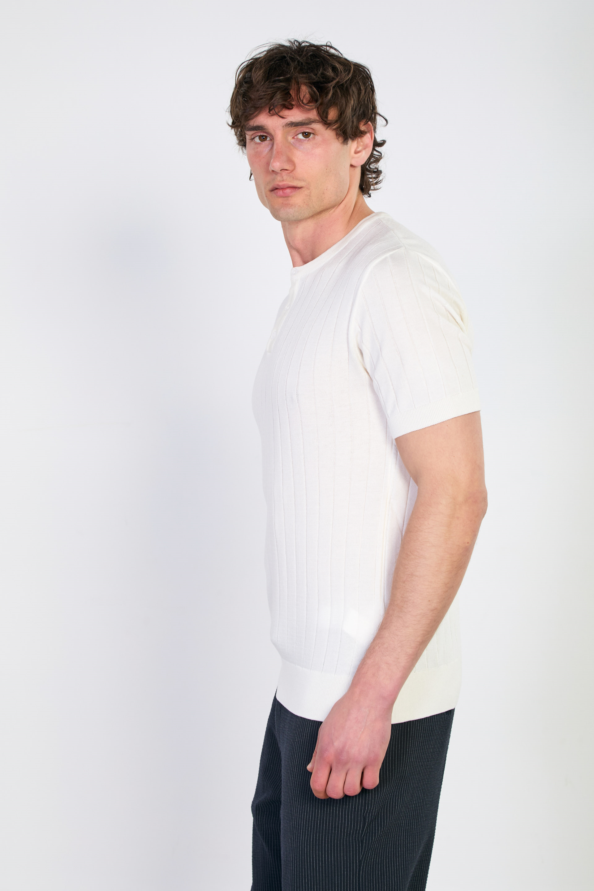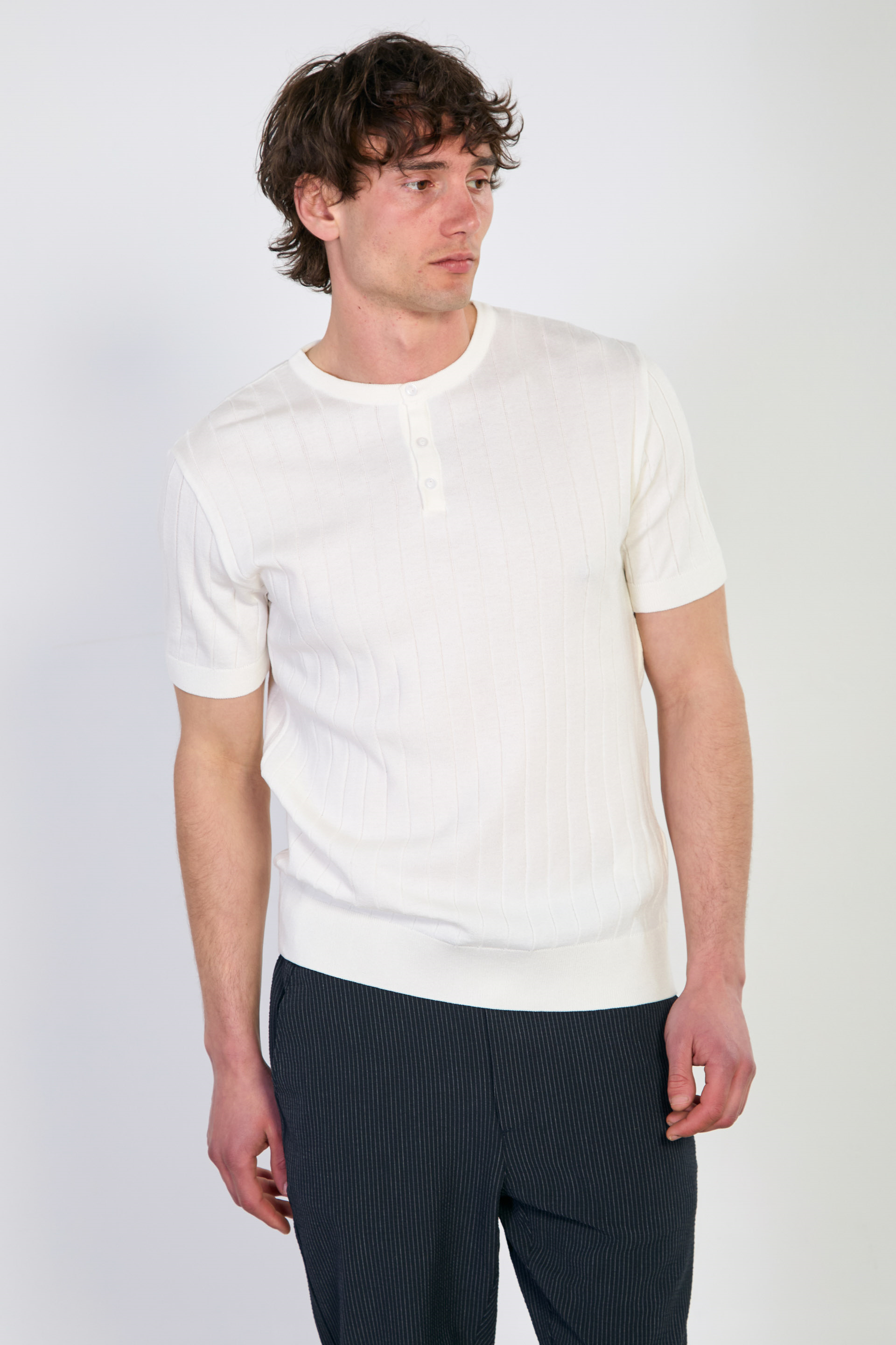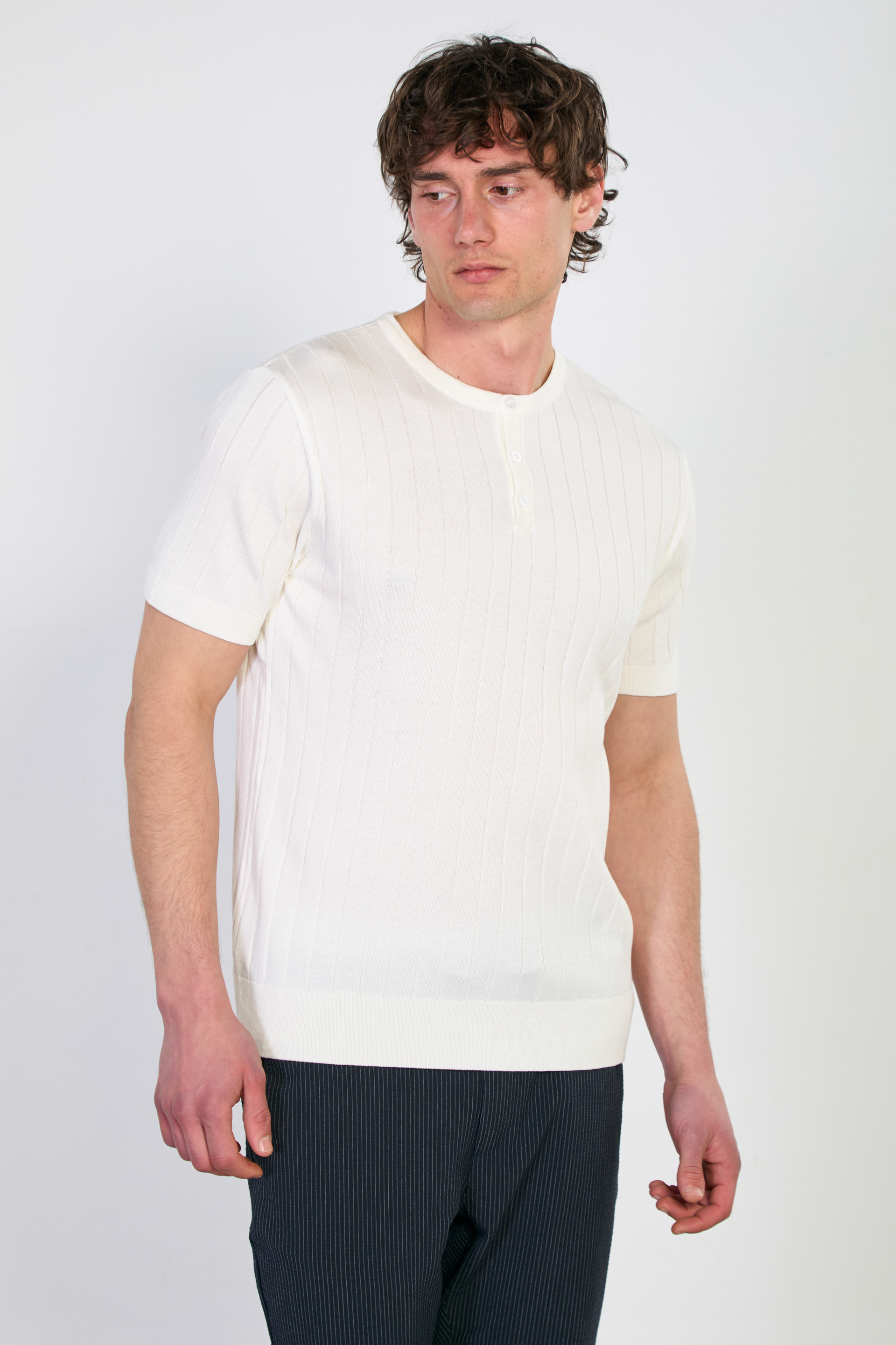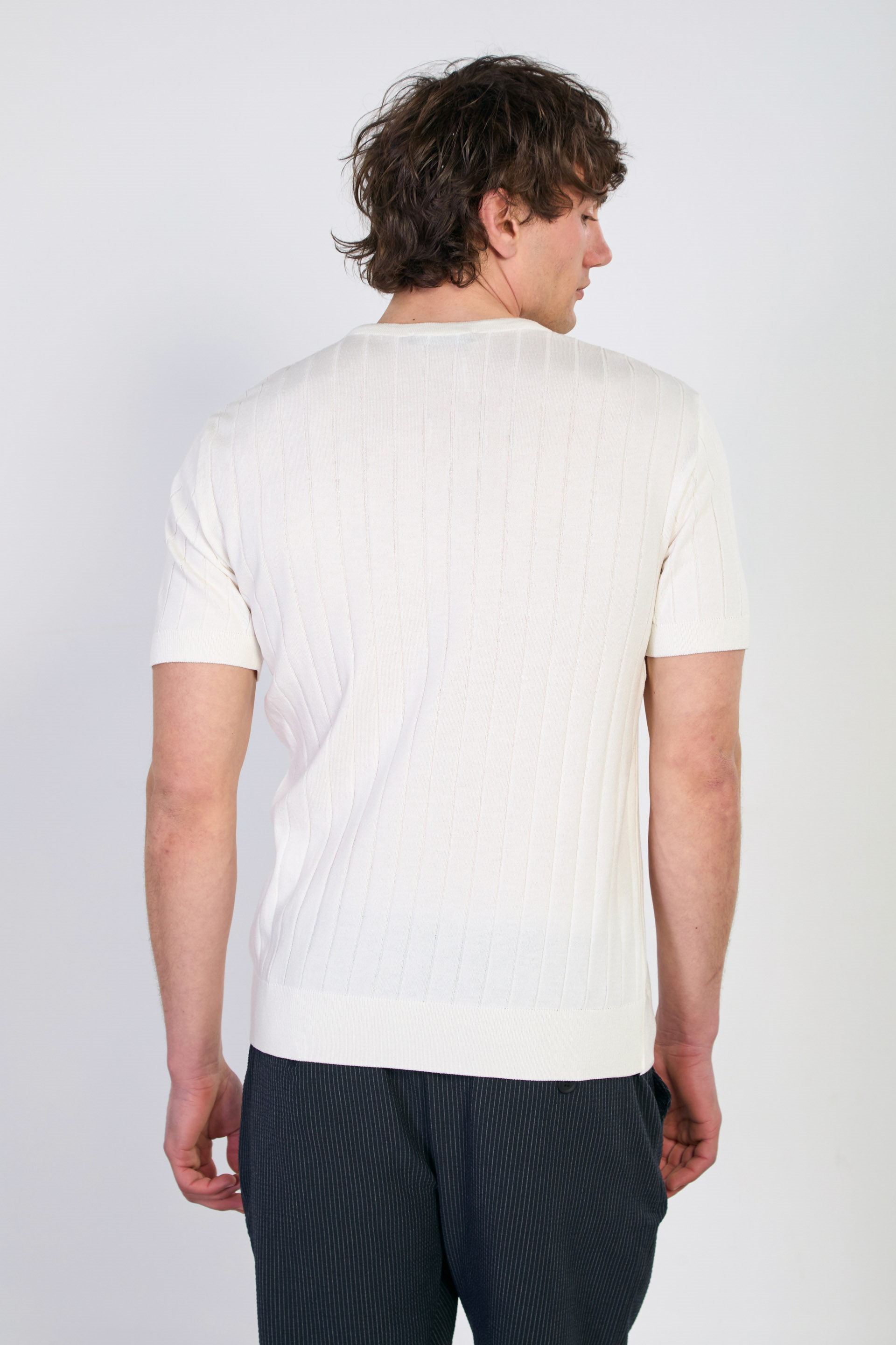Erkek Bisiklet Yaka Düğmeli Triko T-Shirt - Ekru