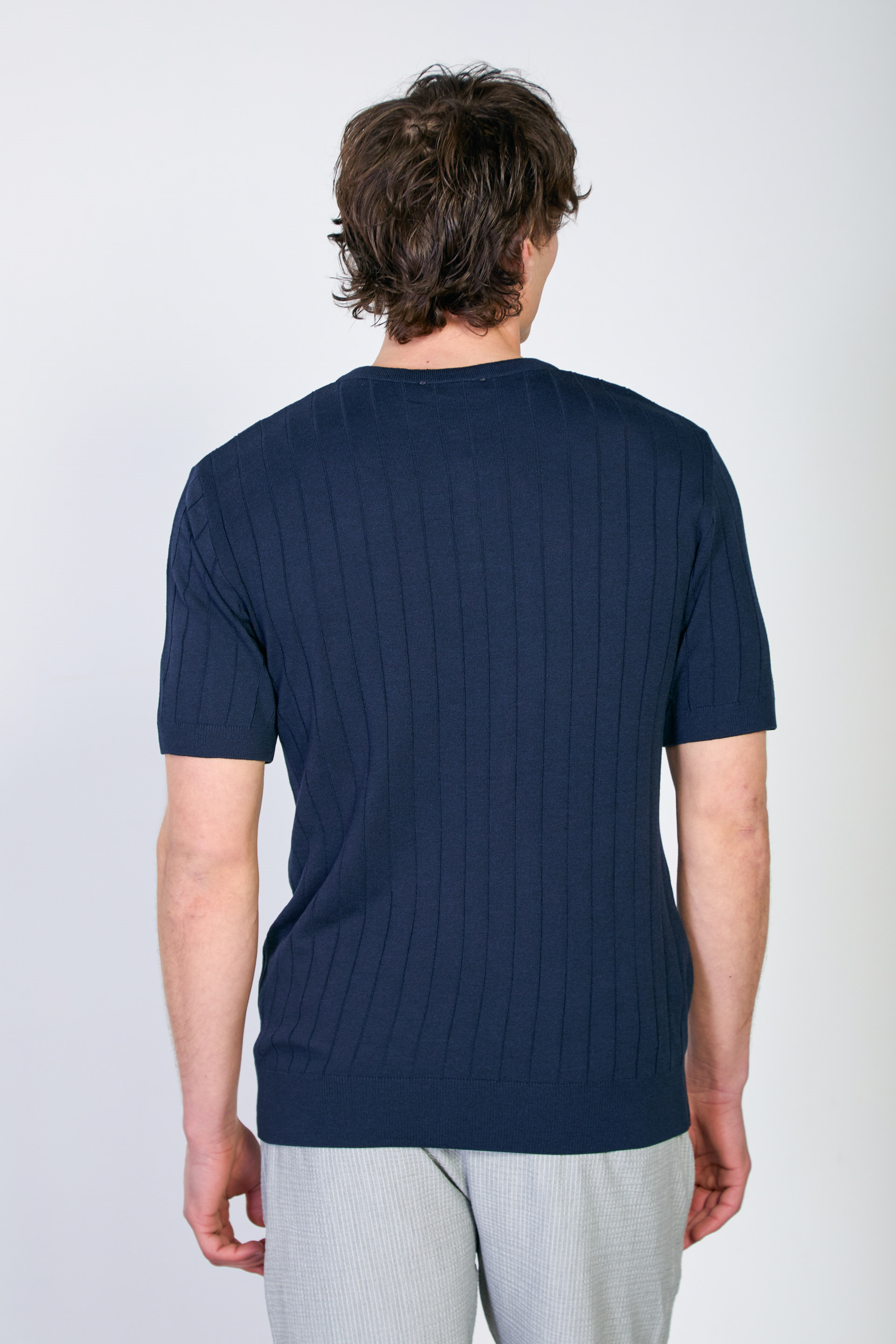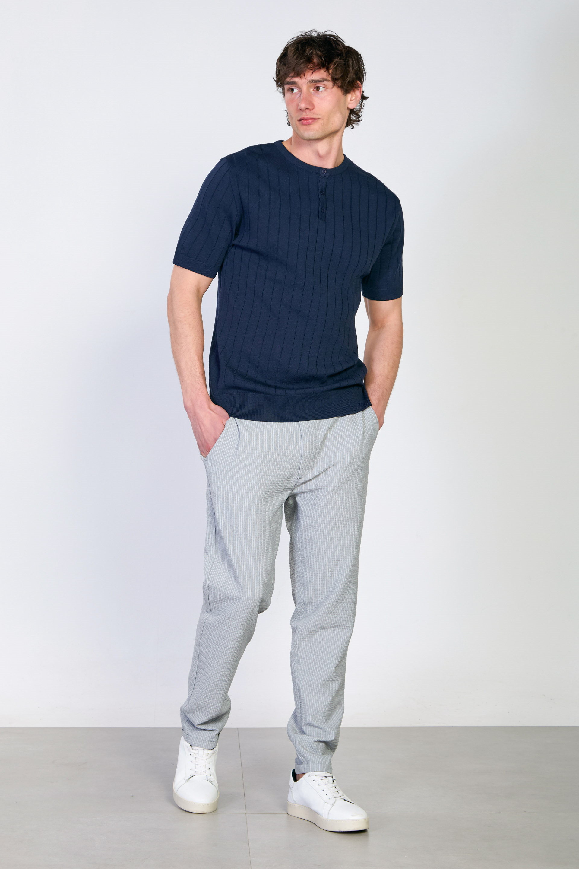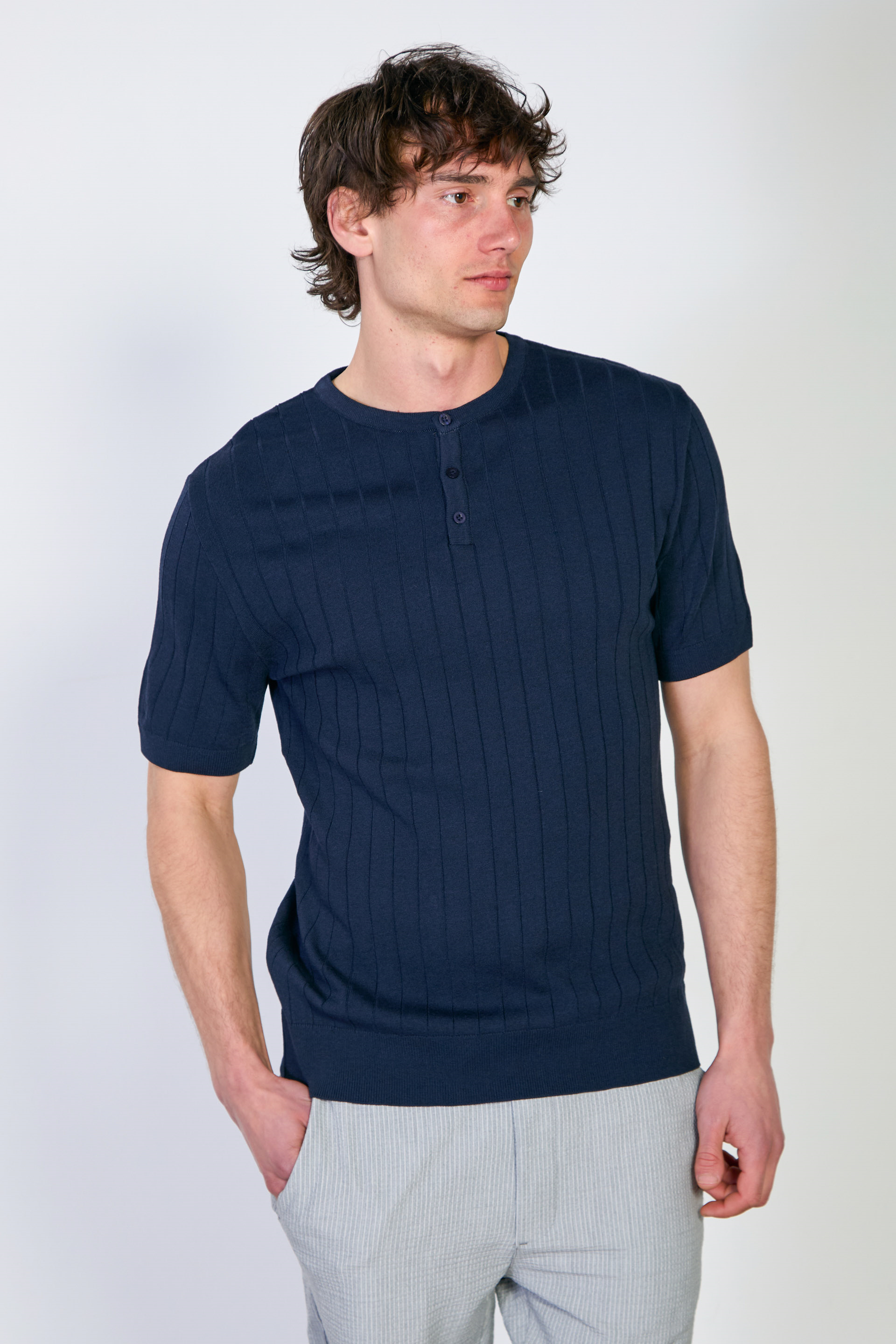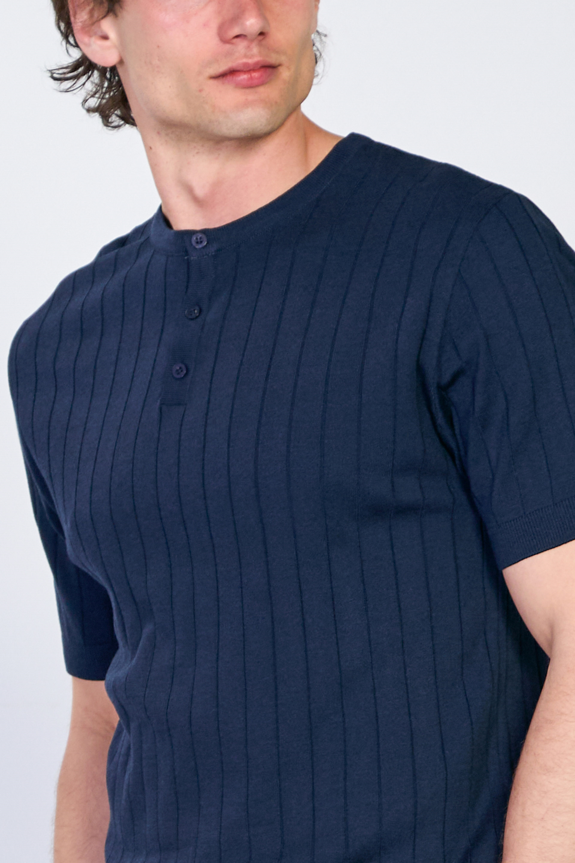 Erkek Bisiklet Yaka Düğmeli Triko T-Shirt - İndigo