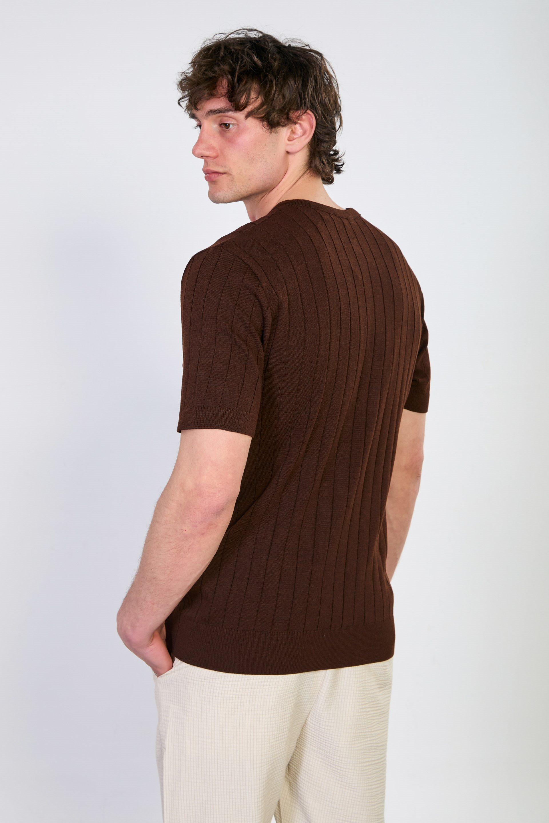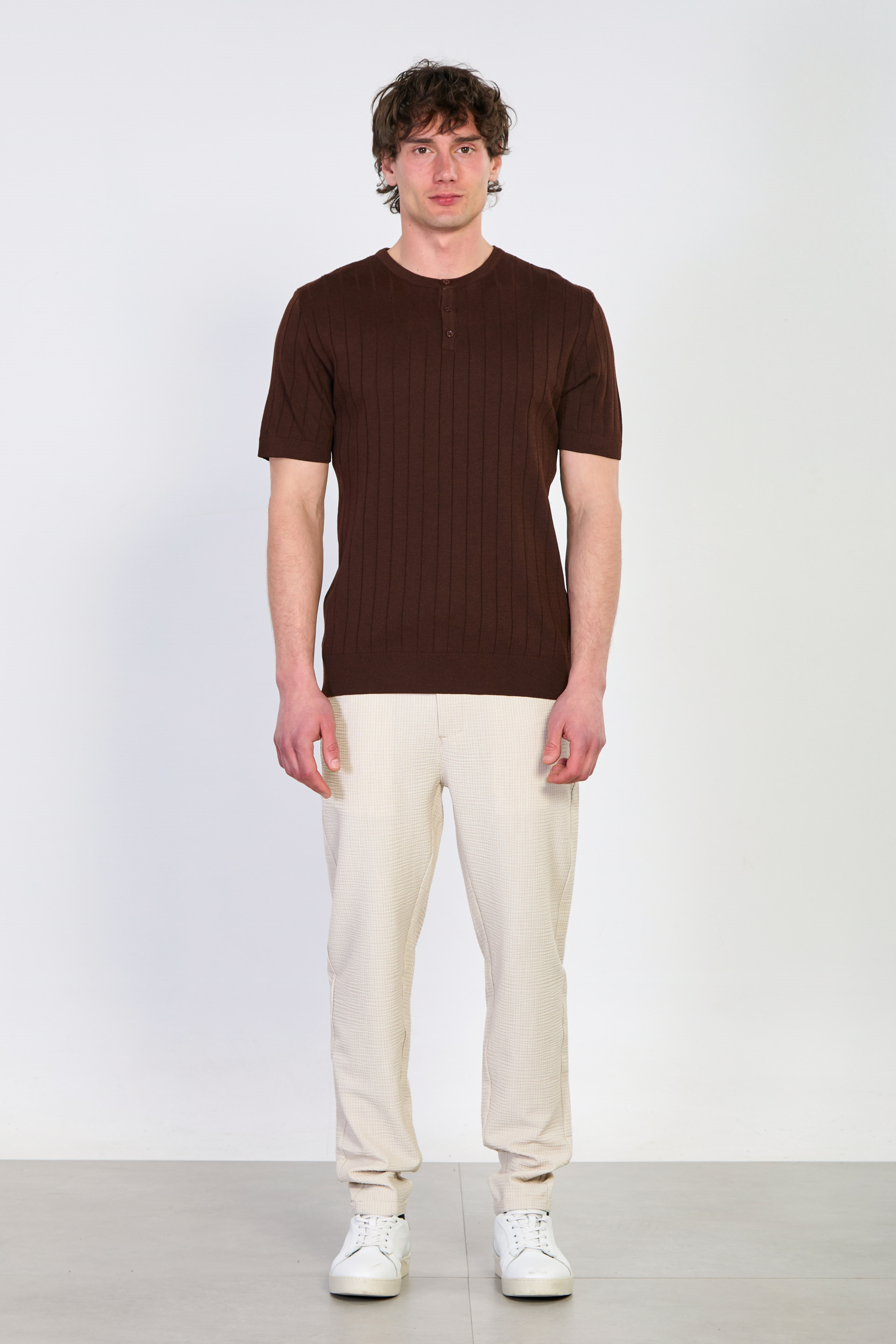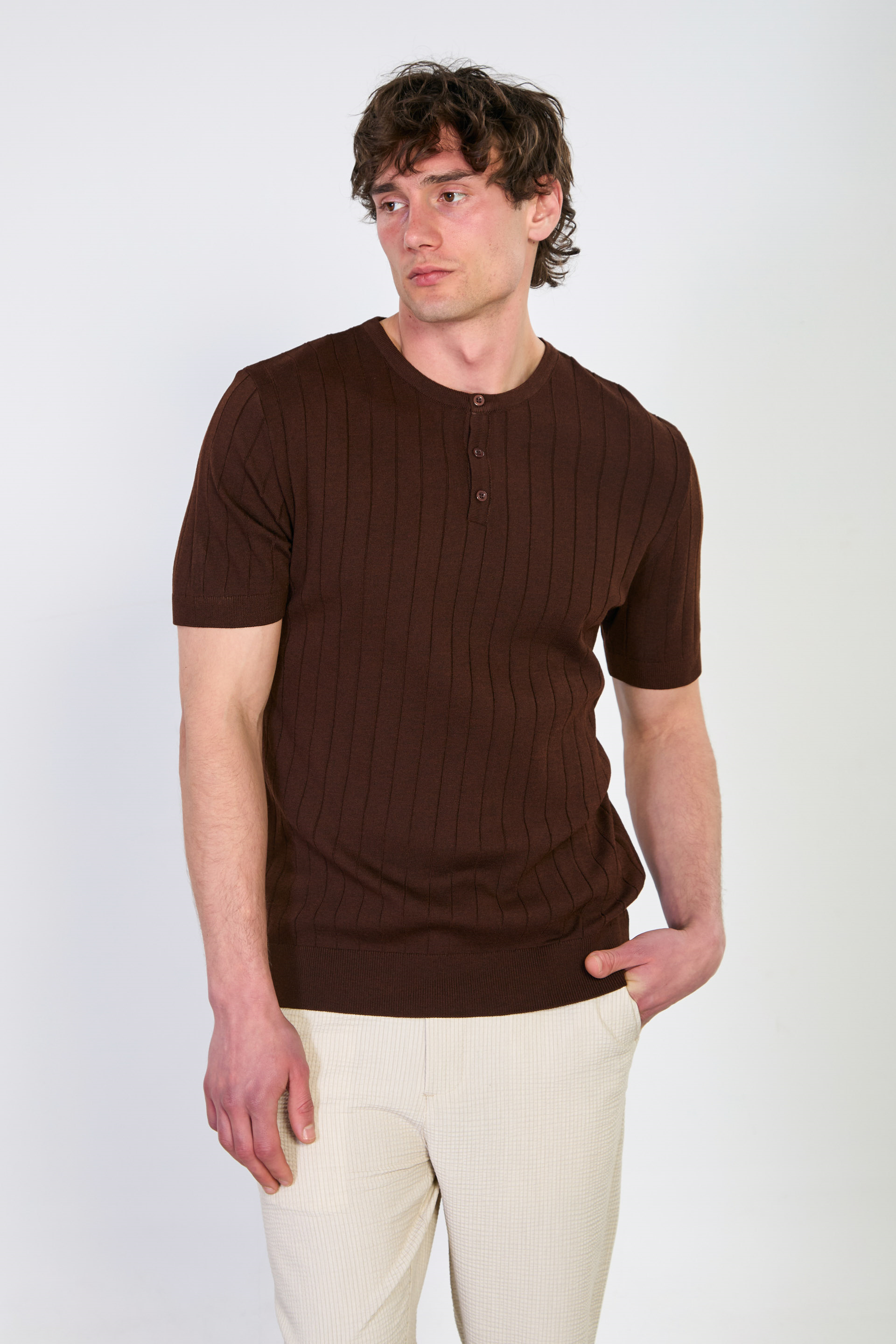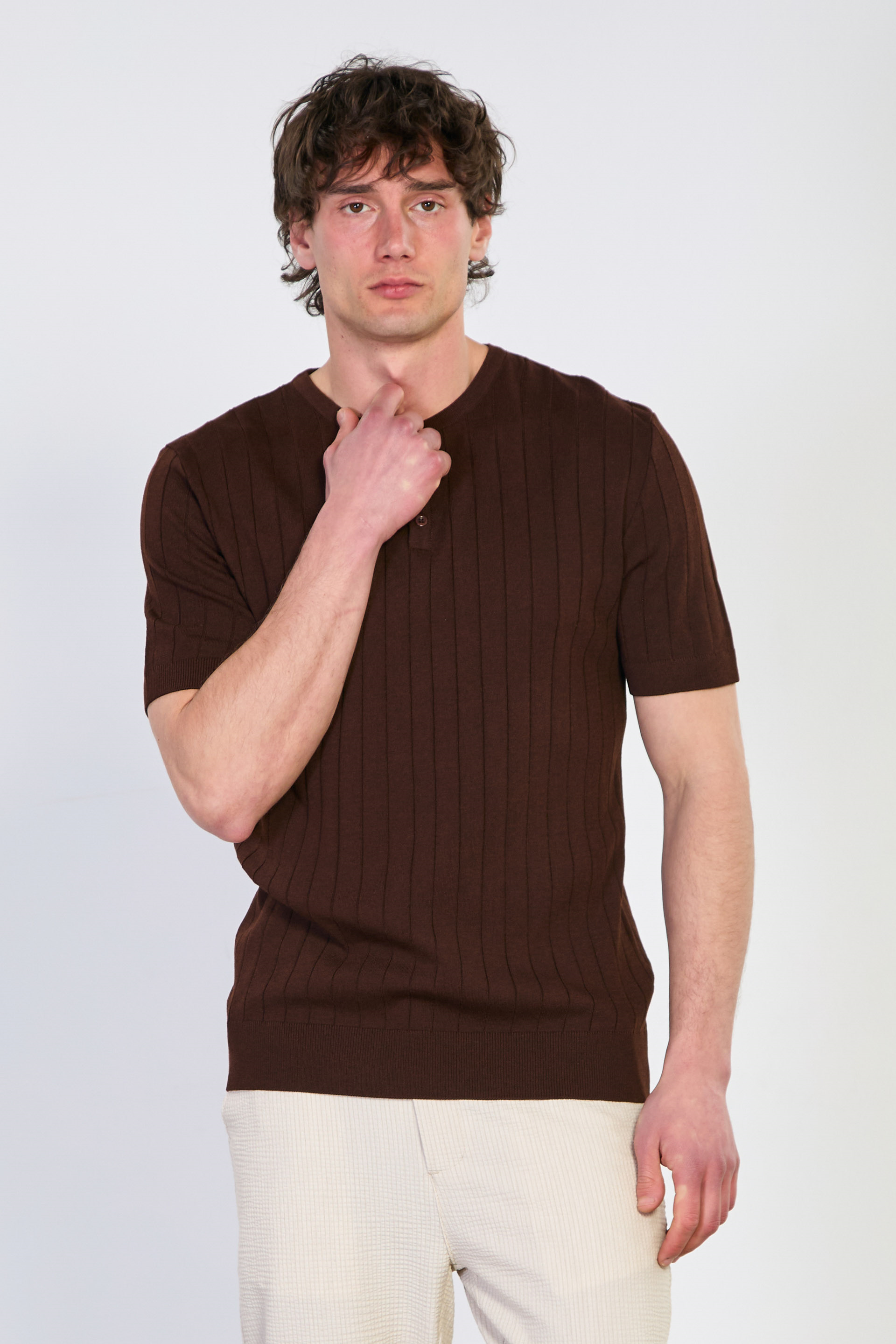 Erkek Bisiklet Yaka Düğmeli Triko T-Shirt - Kahve