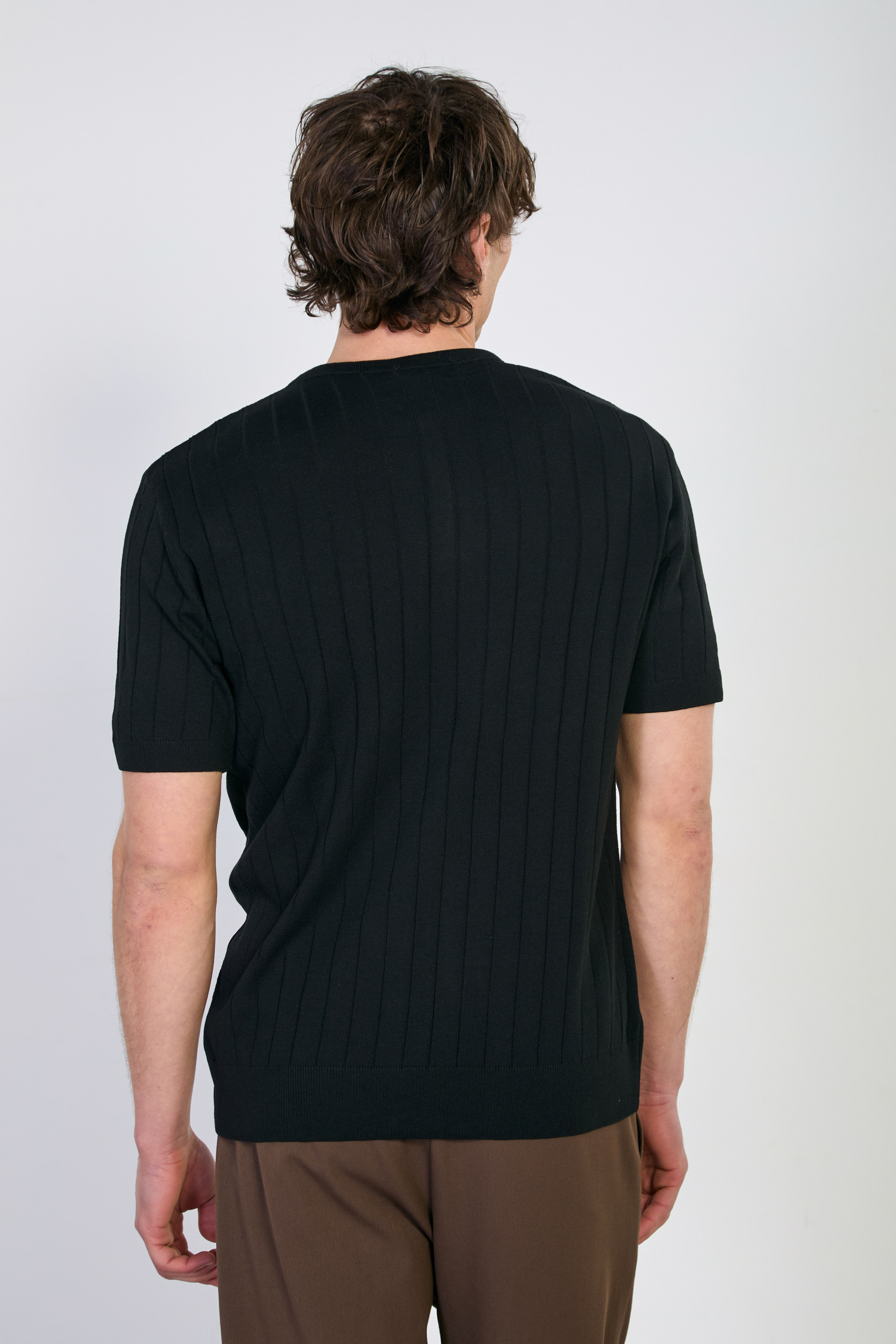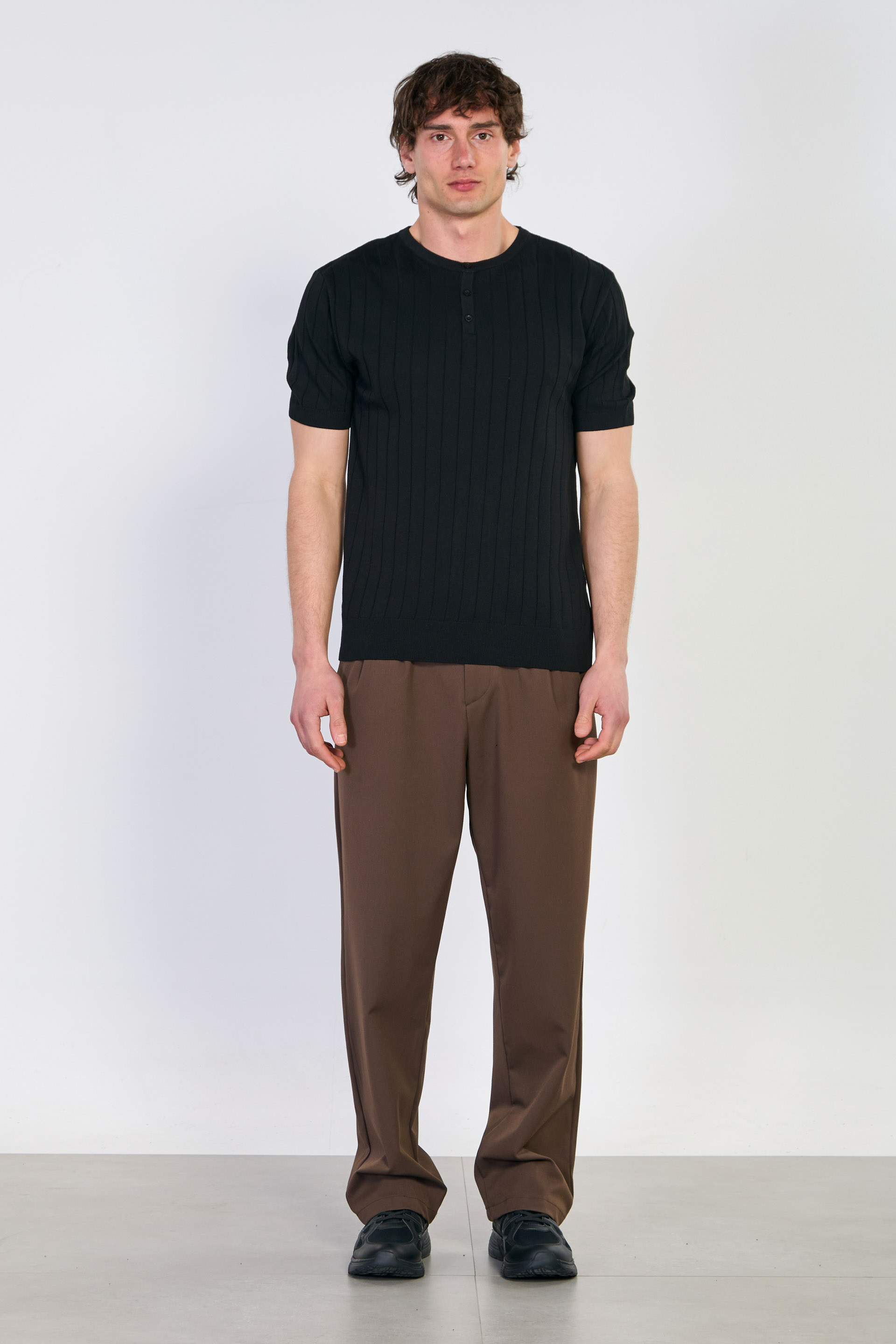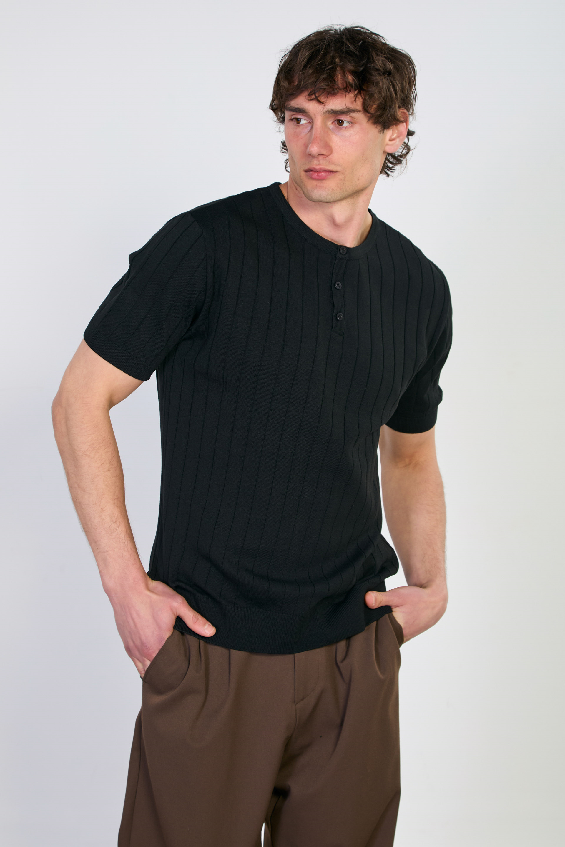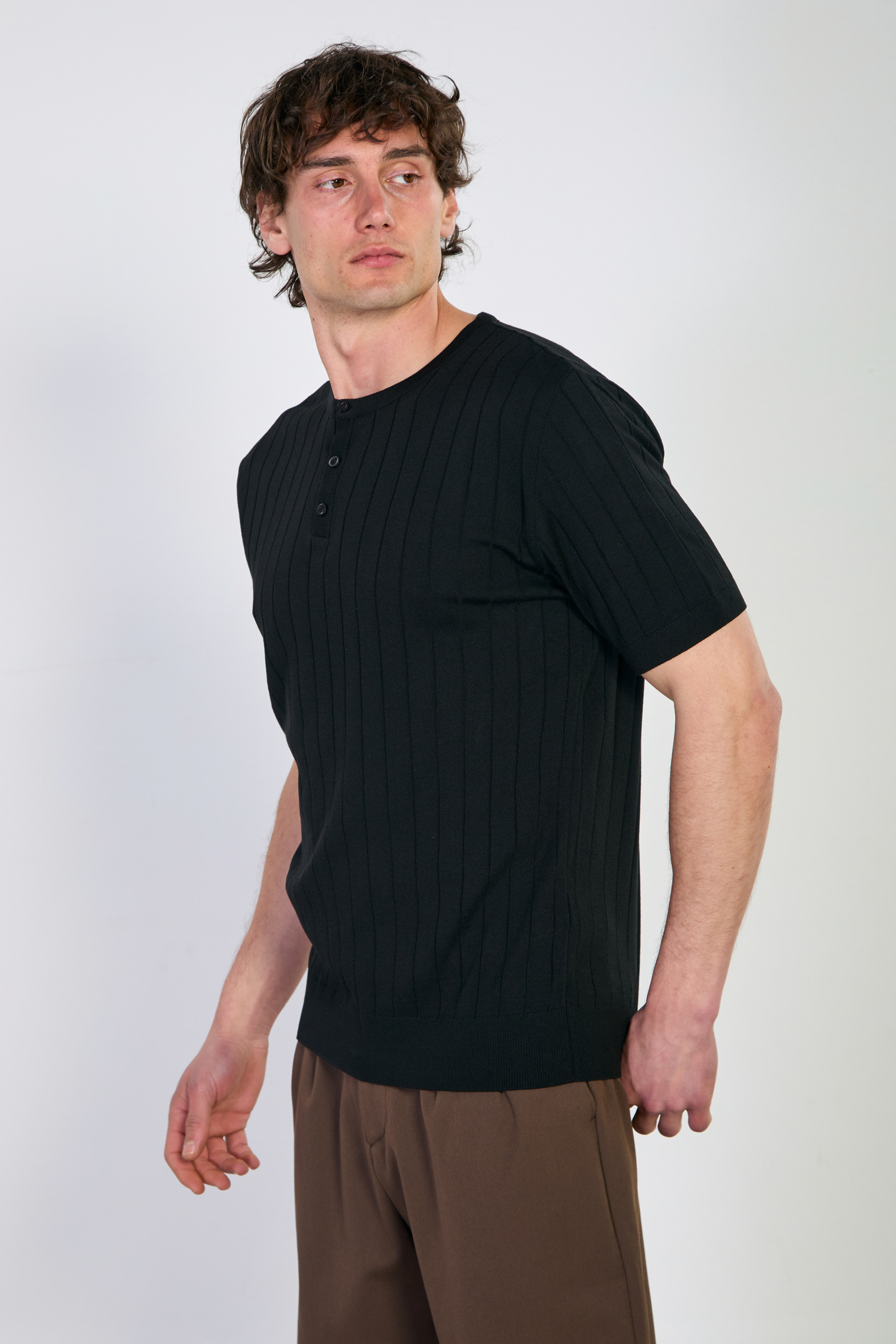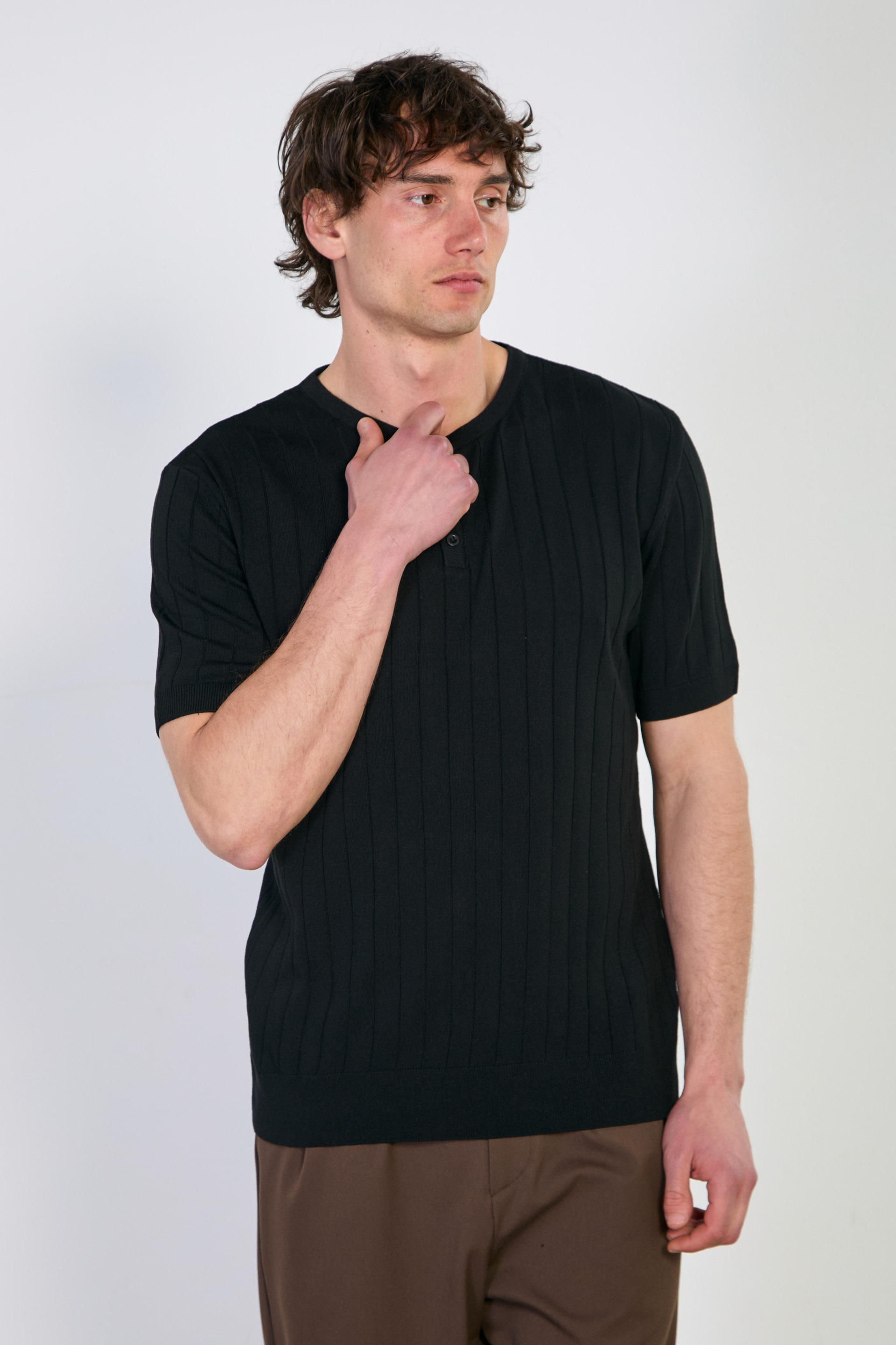 Erkek Bisiklet Yaka Düğmeli Triko T-Shirt - Siyah