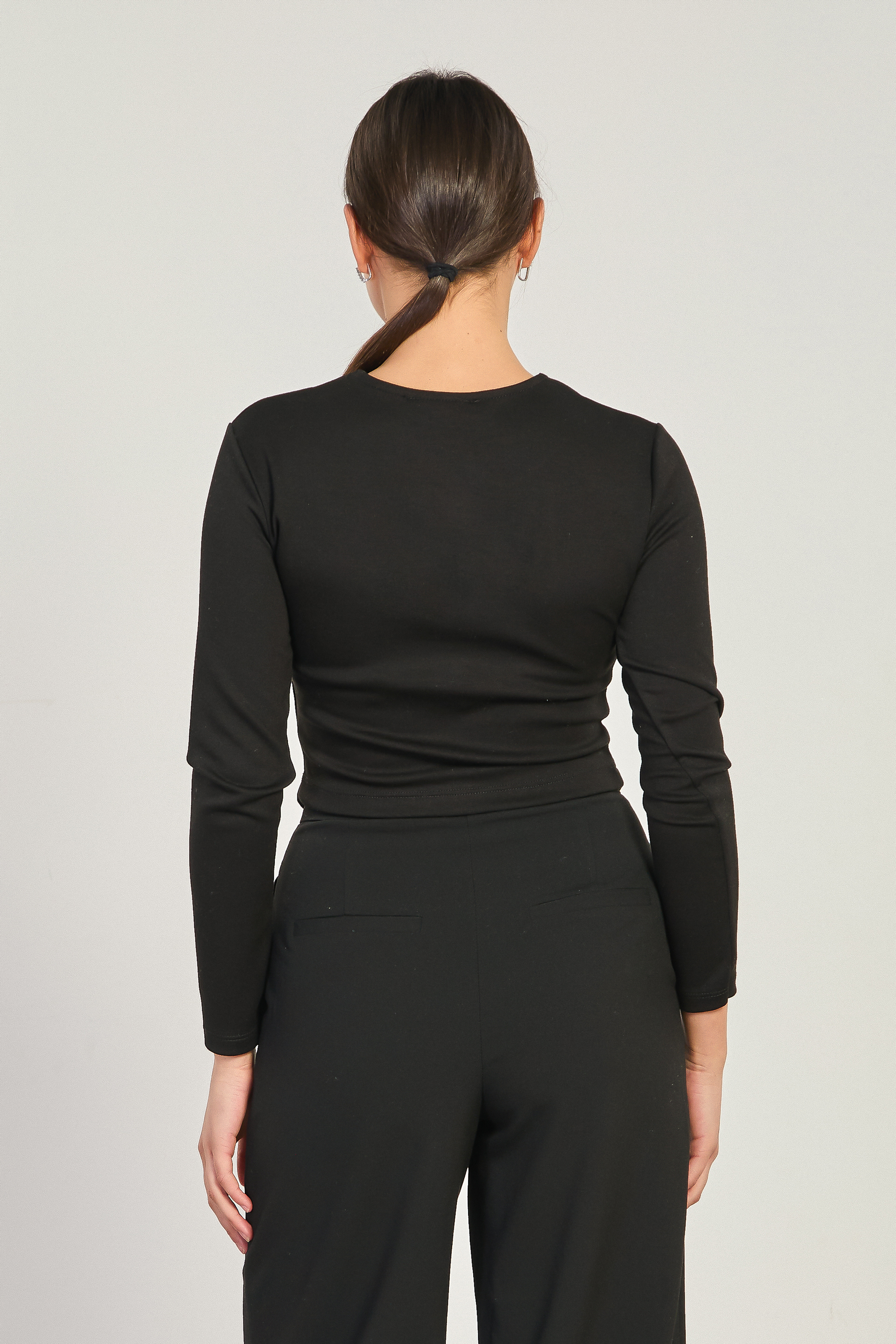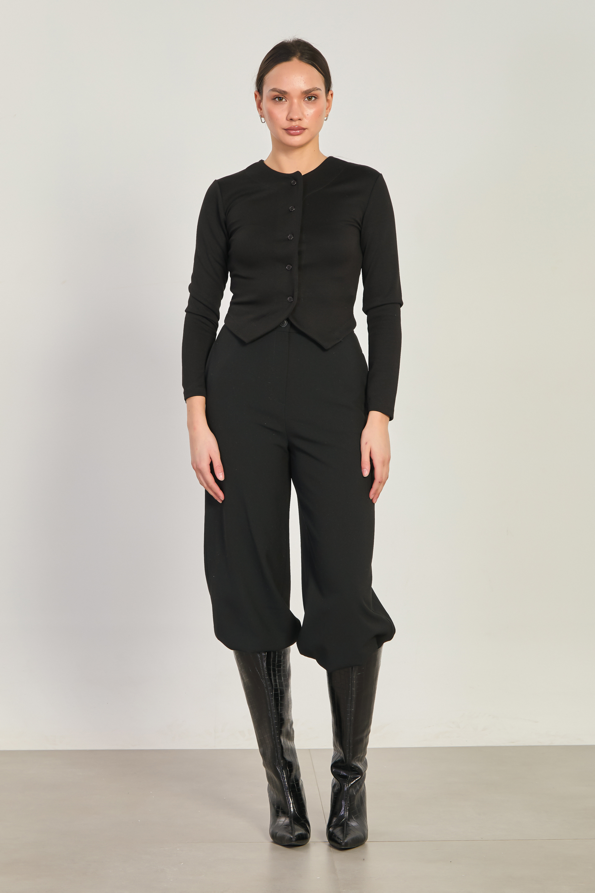 Kadın Bisiklet Yaka Düğmeli Uzun Kol Body - Siyah