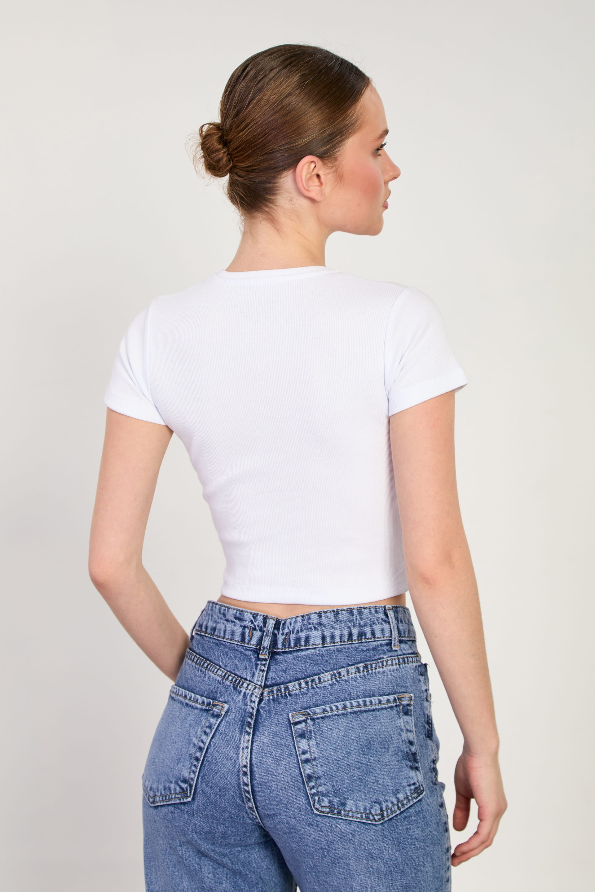 Kadın Bisiklet Yaka Fitilli Body - Beyaz