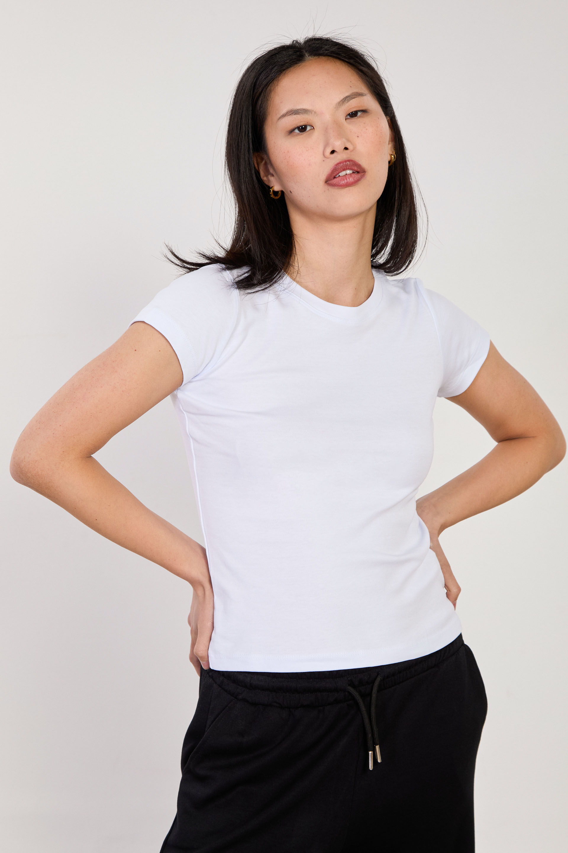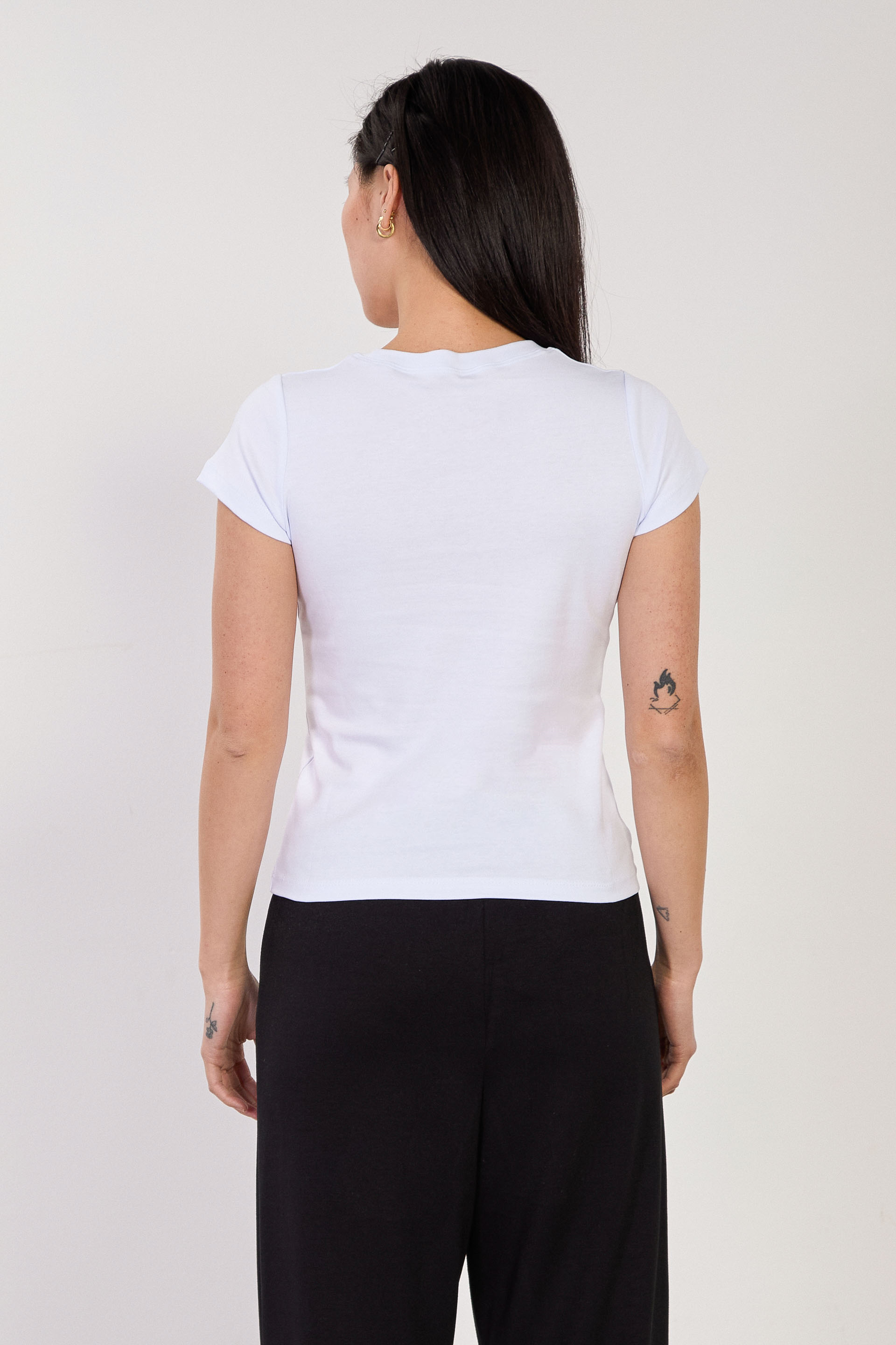 Kadın Bisiklet Yaka Kısa Kol Body - Beyaz