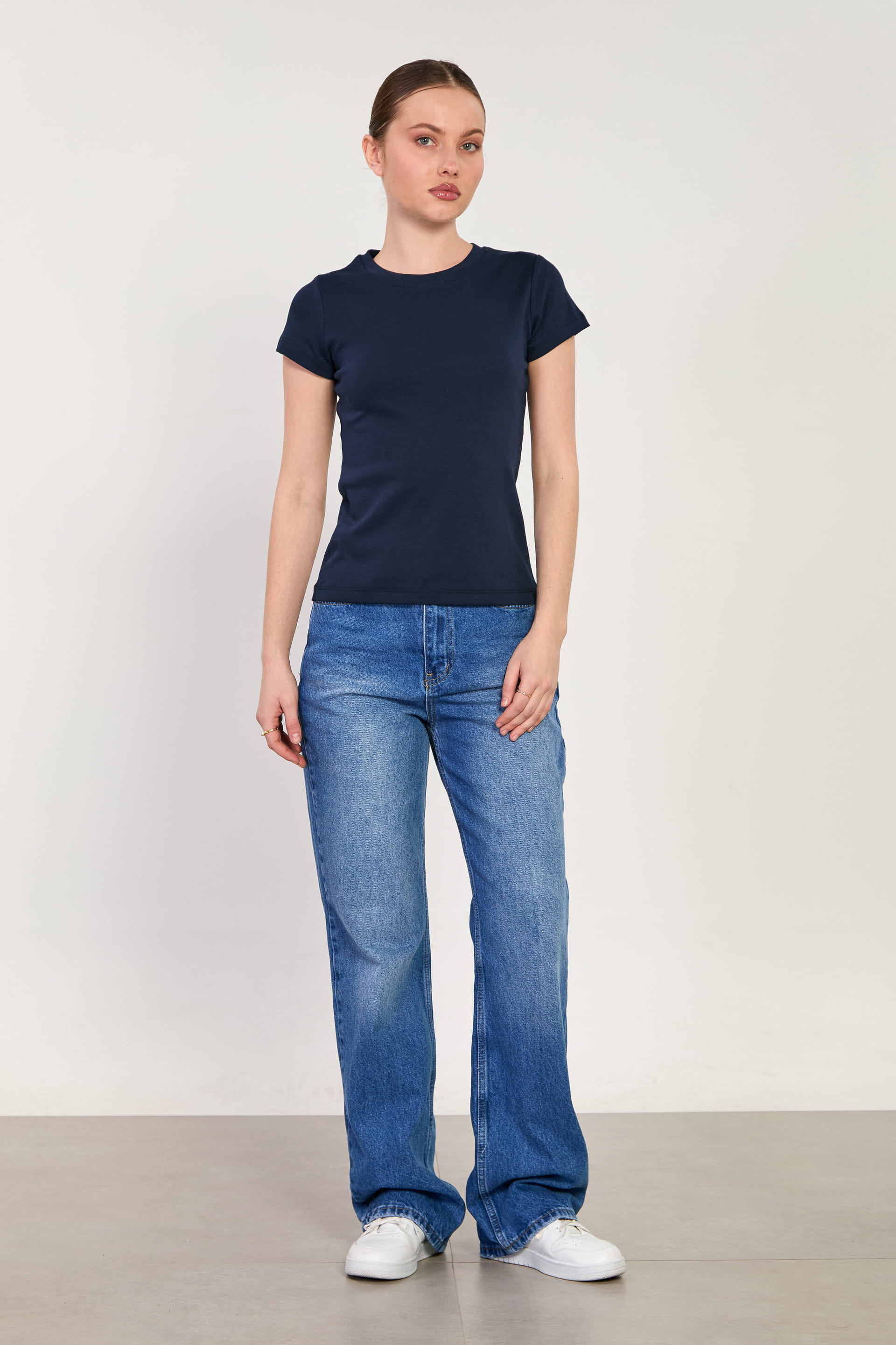 Kadın Bisiklet Yaka Kısa Kol Body - Lacivert