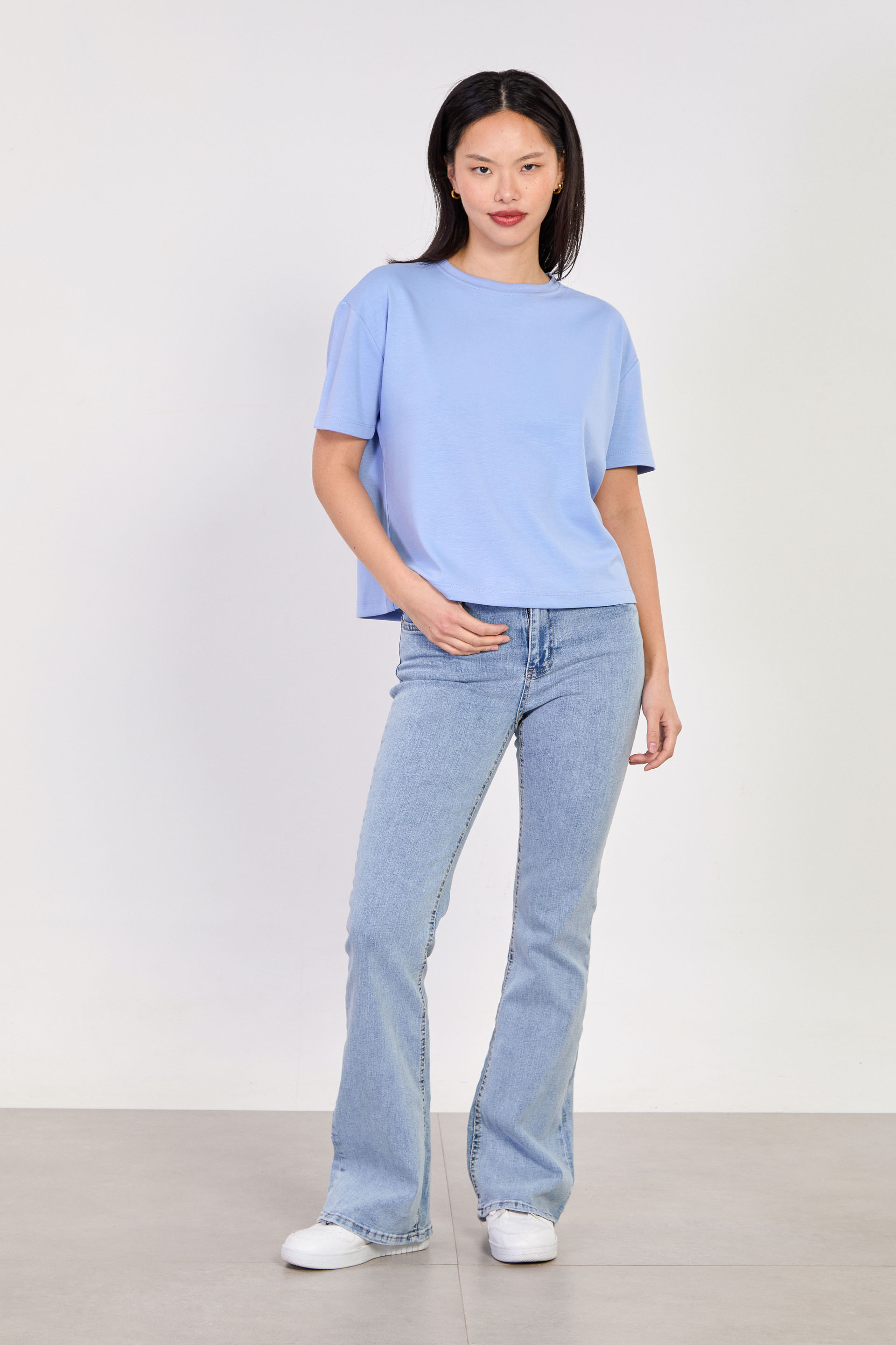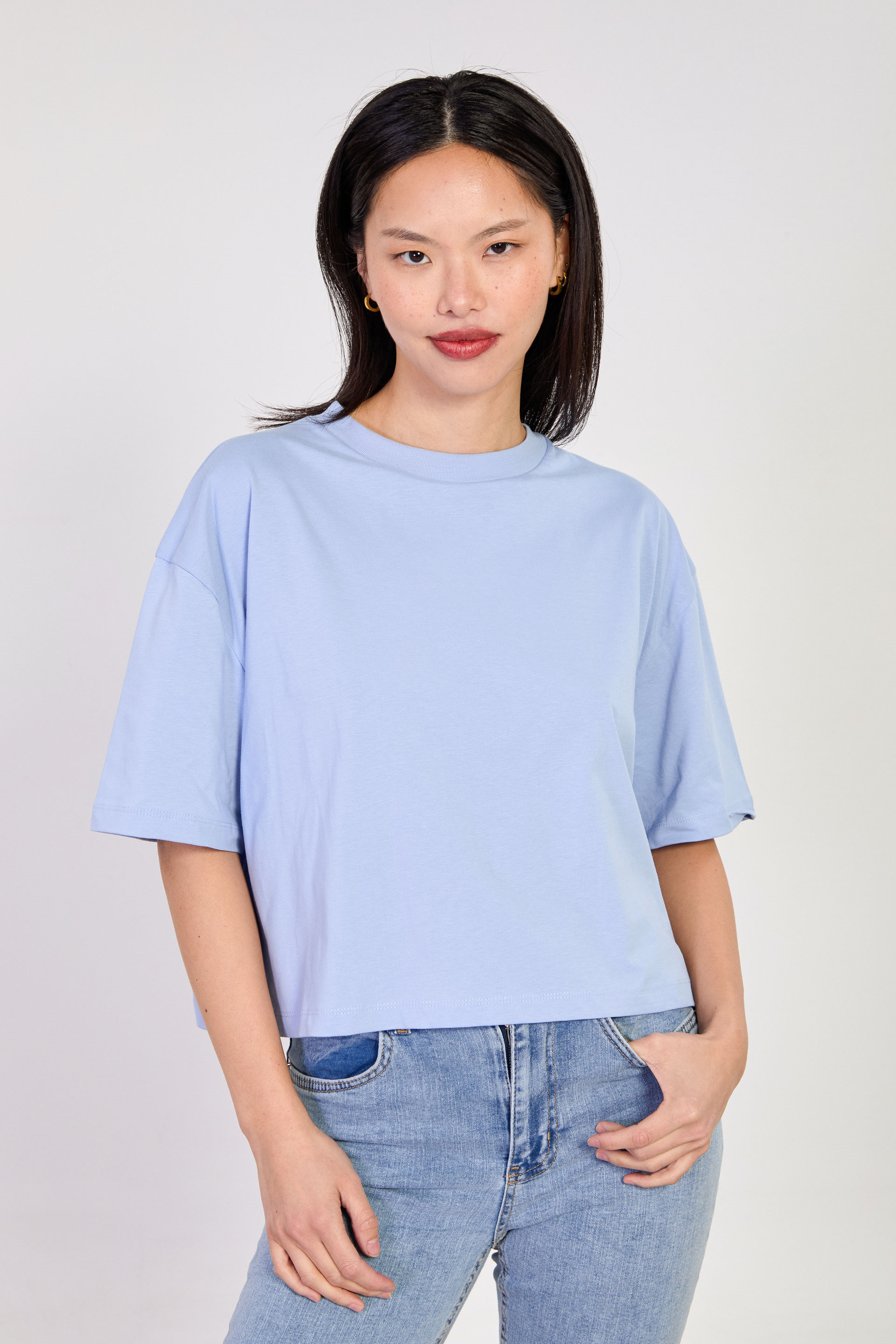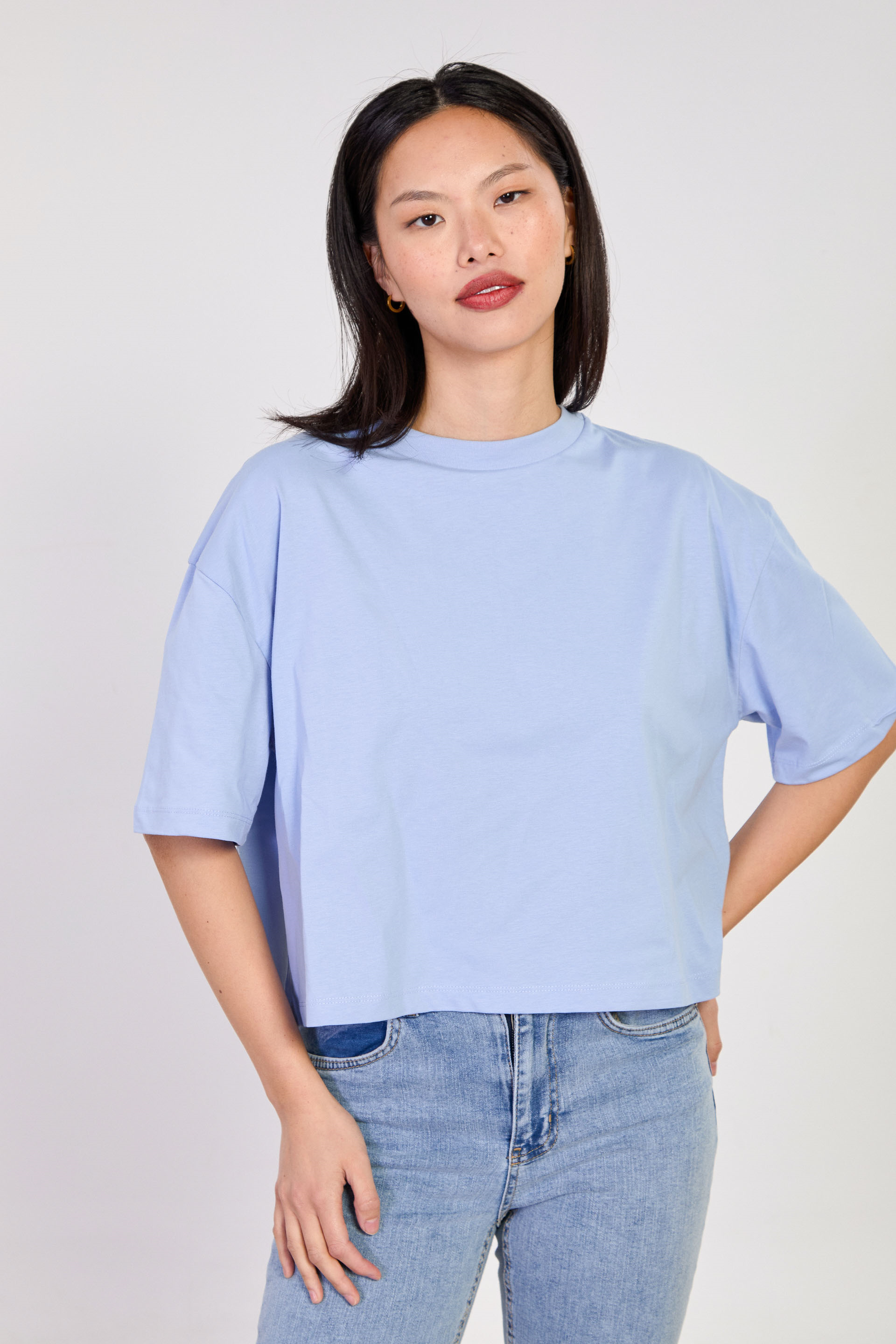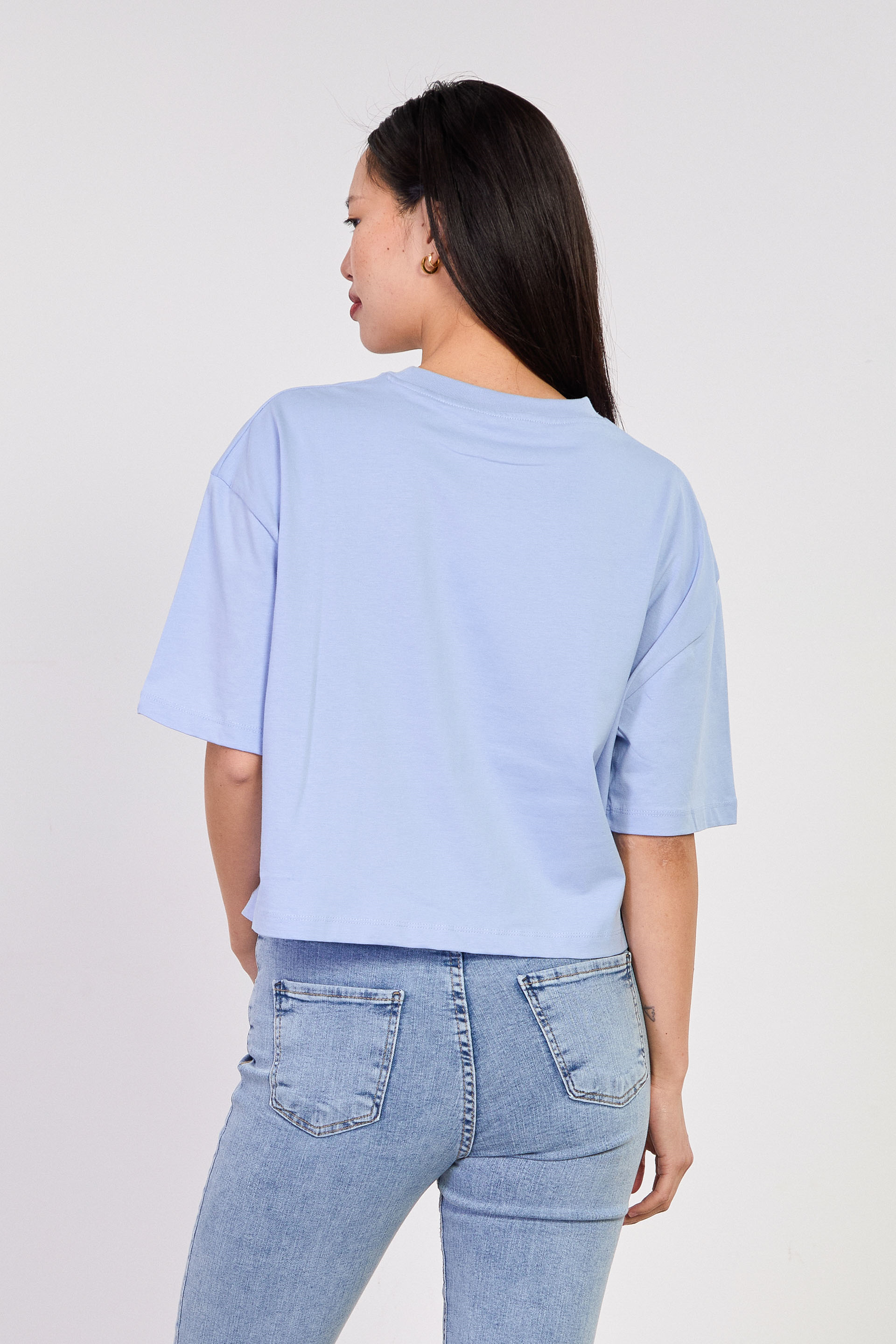 Kadın Bisiklet Yaka Kısa Oversize T-Shirt - Bebe Mavi
