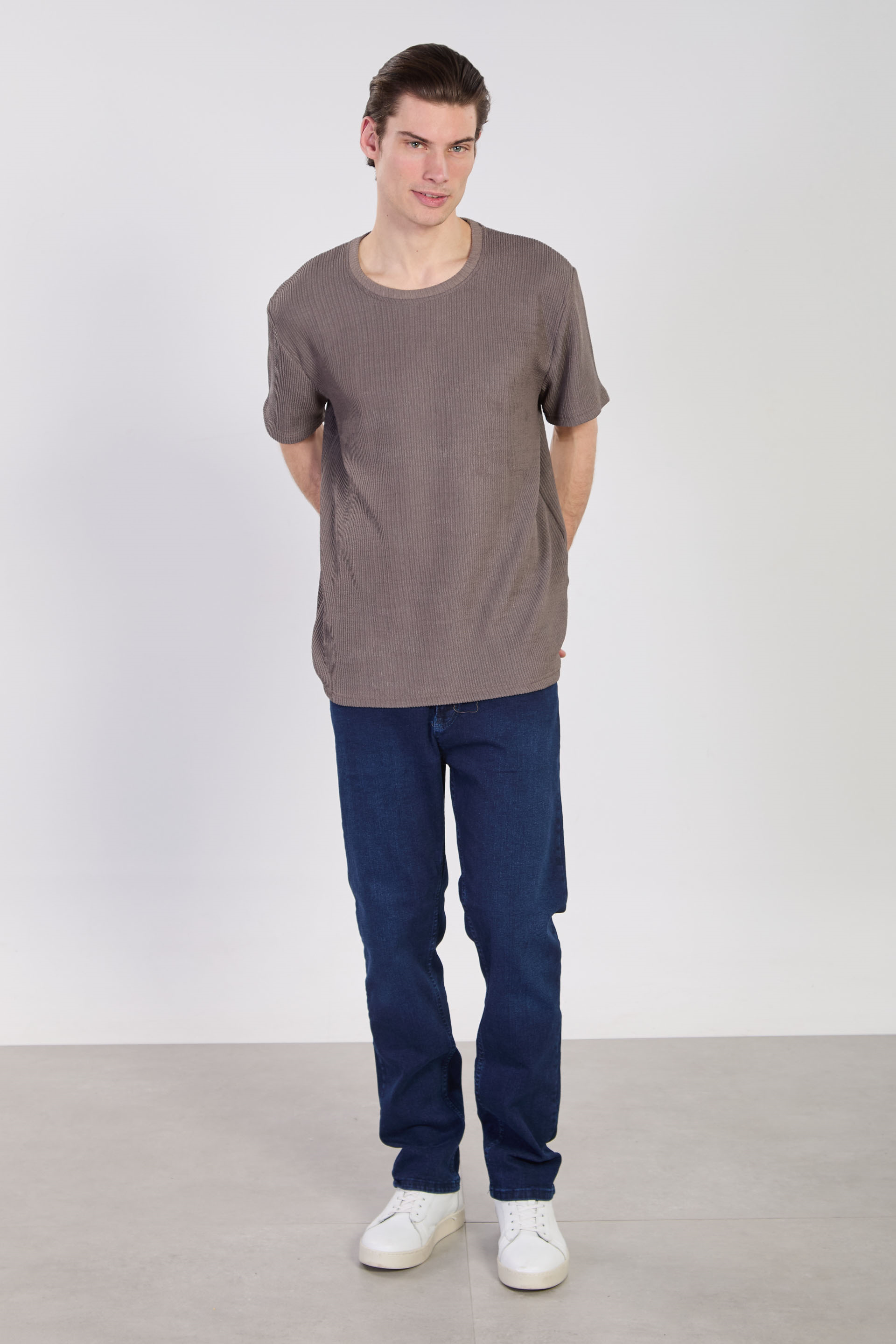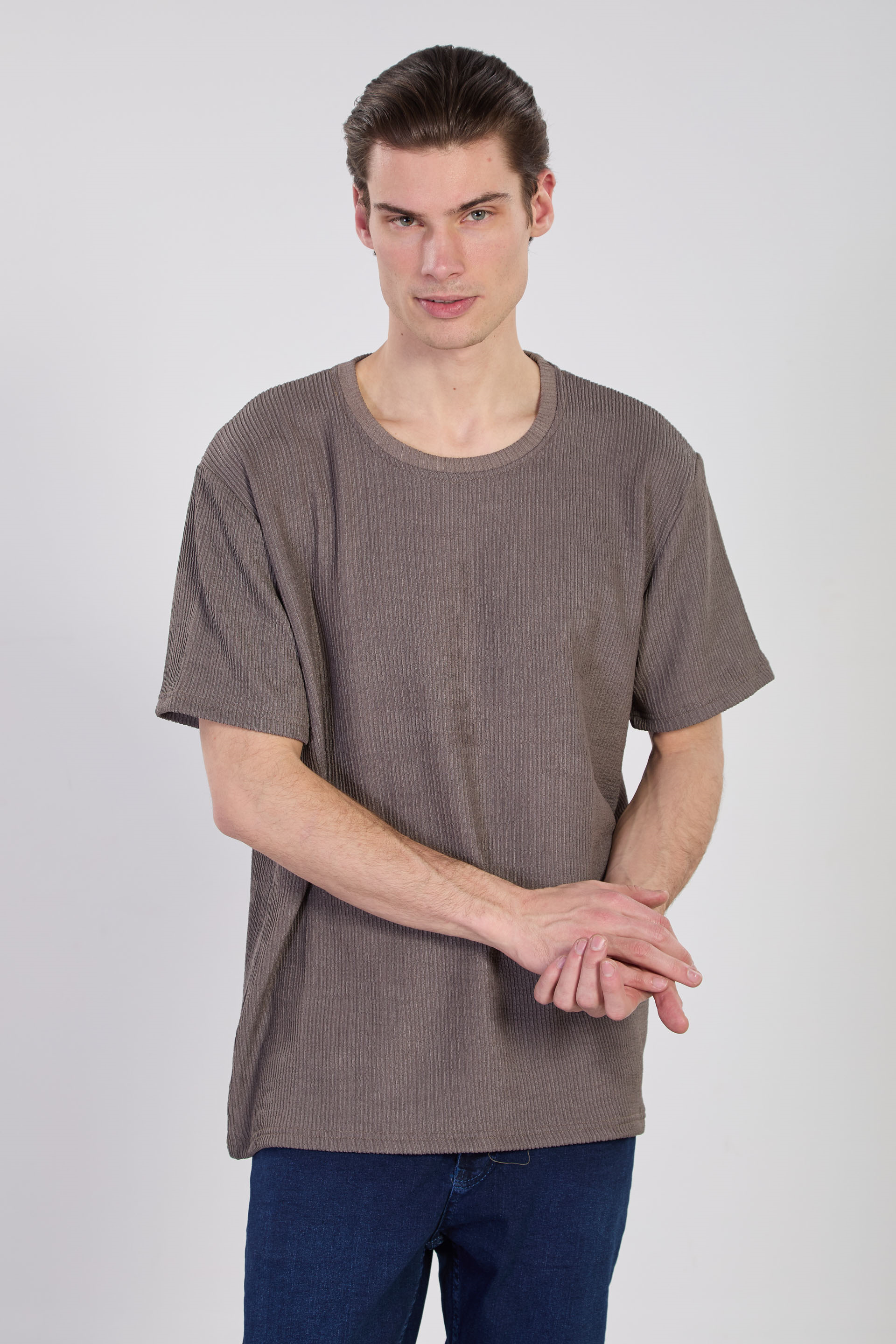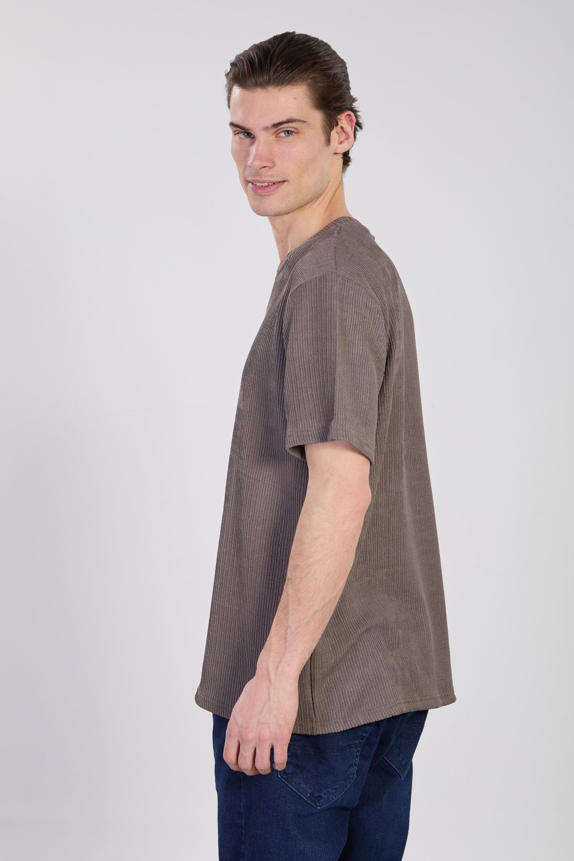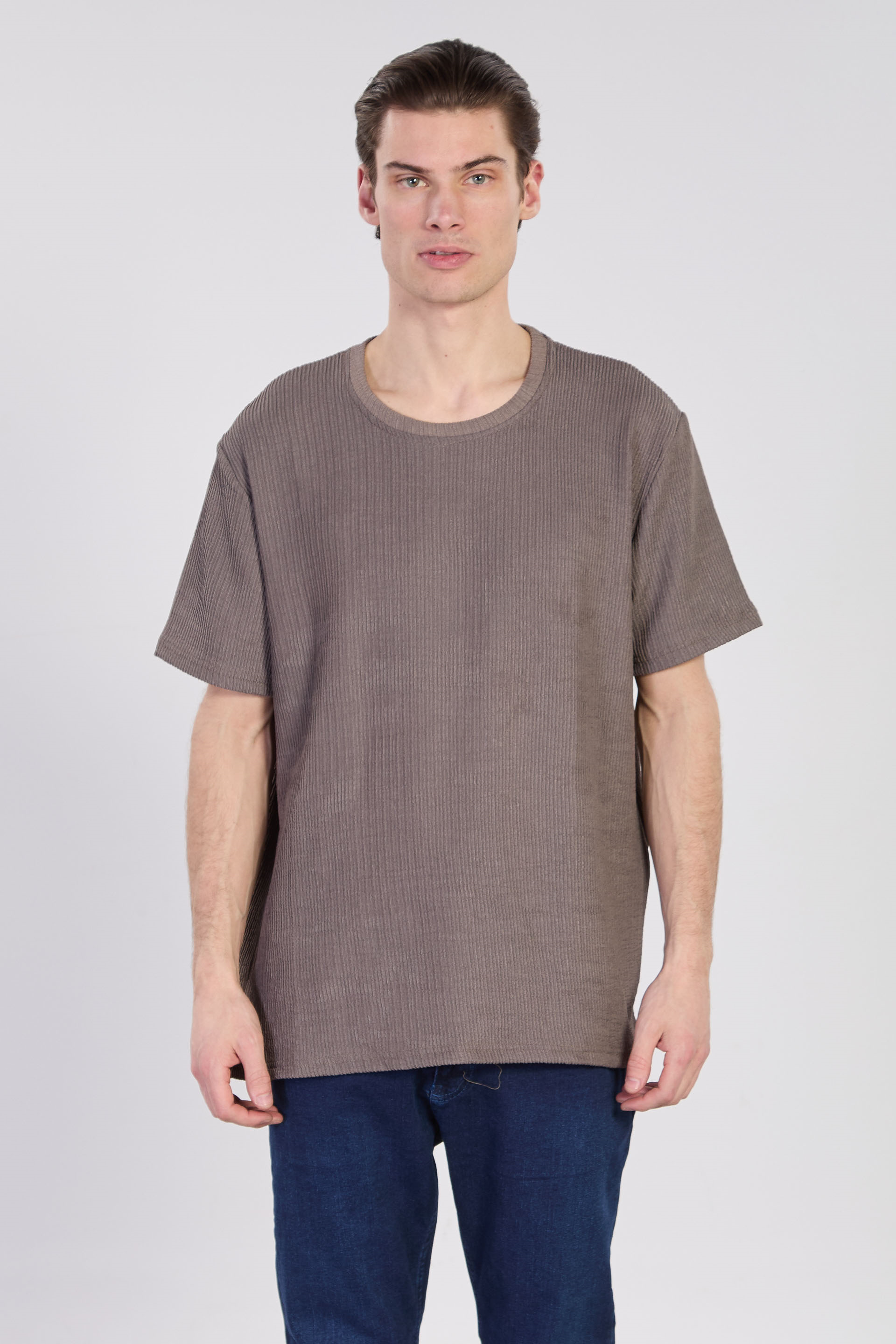 Erkek Bisiklet Yaka Melanj T-Shirt - Füme