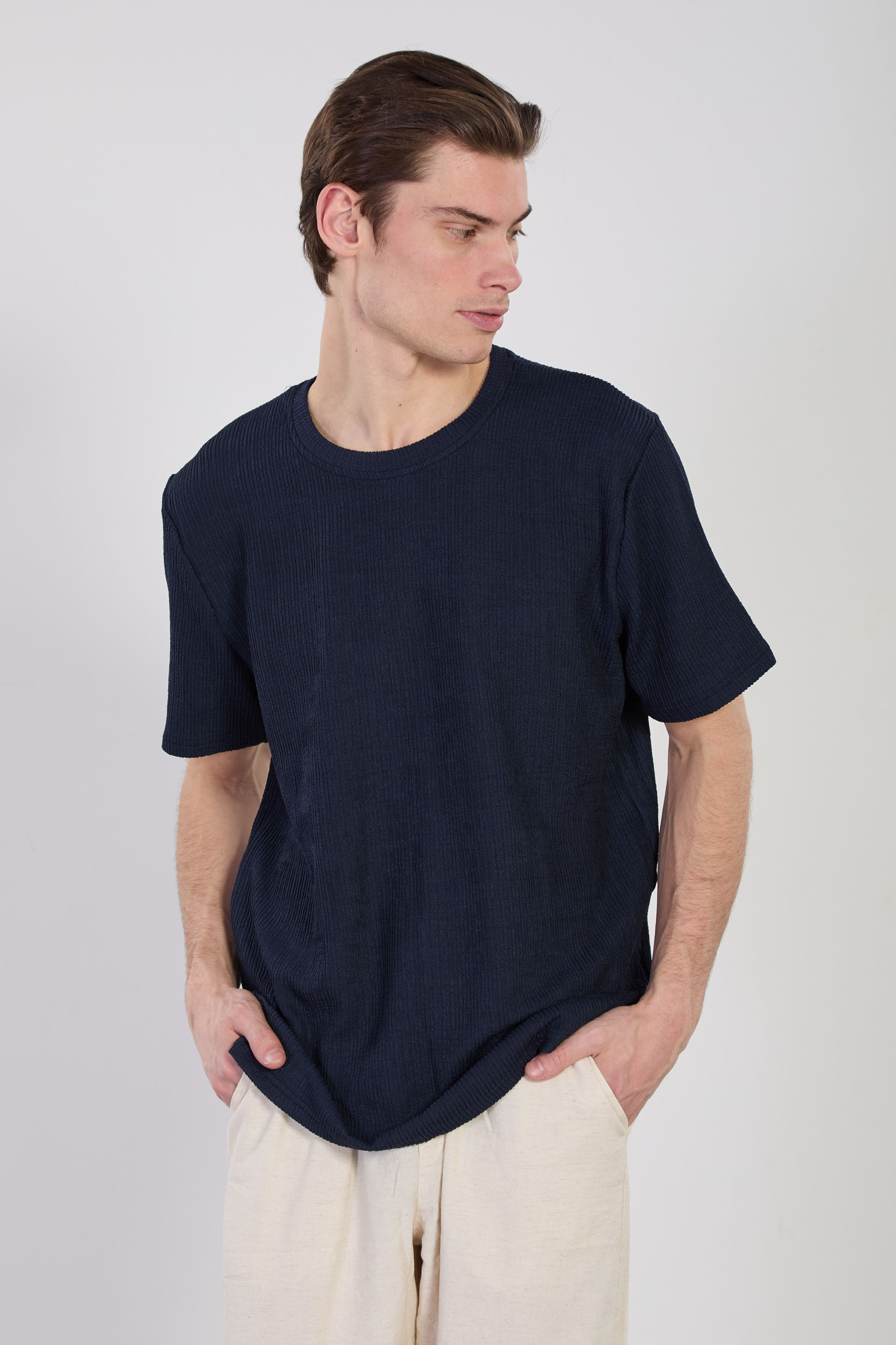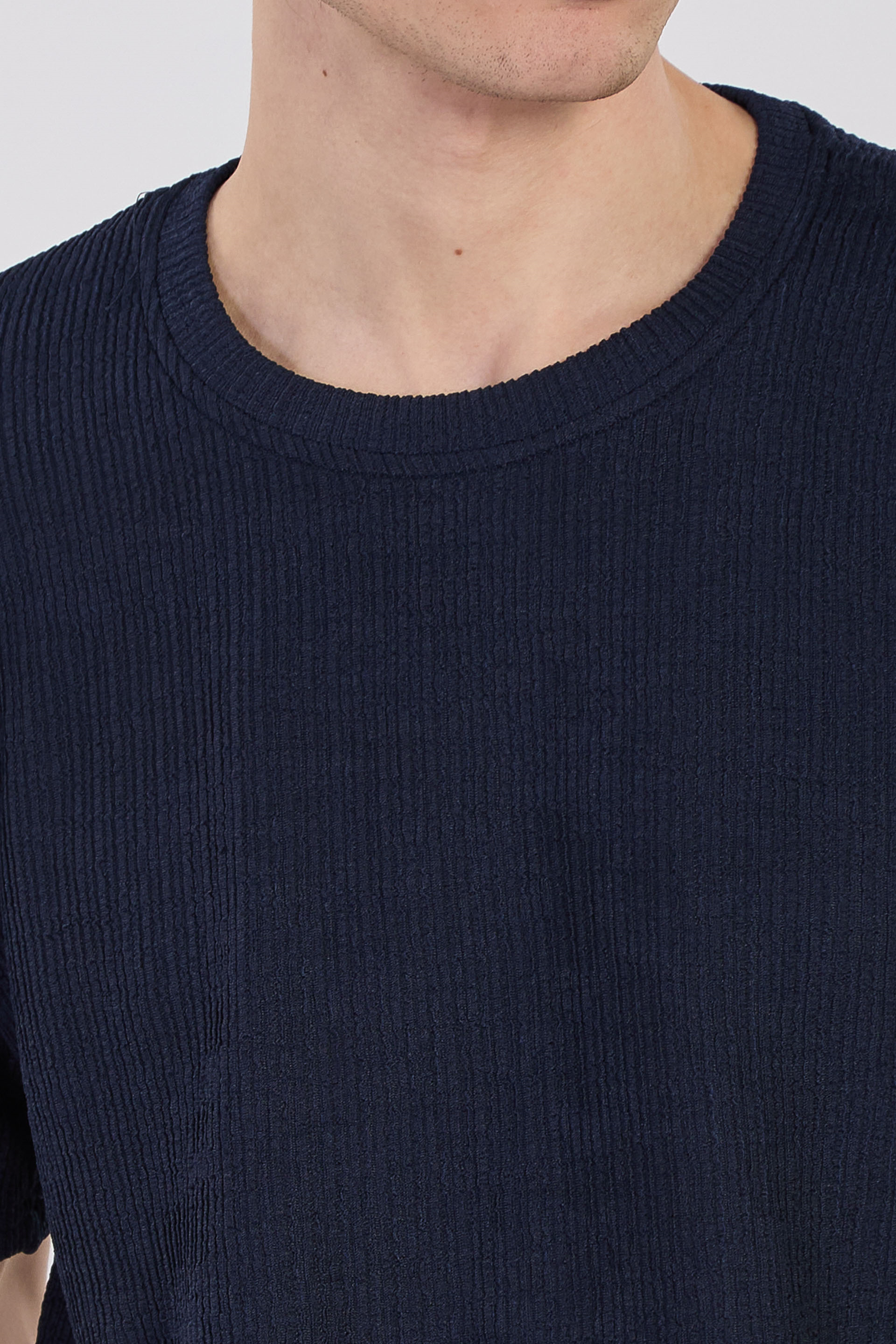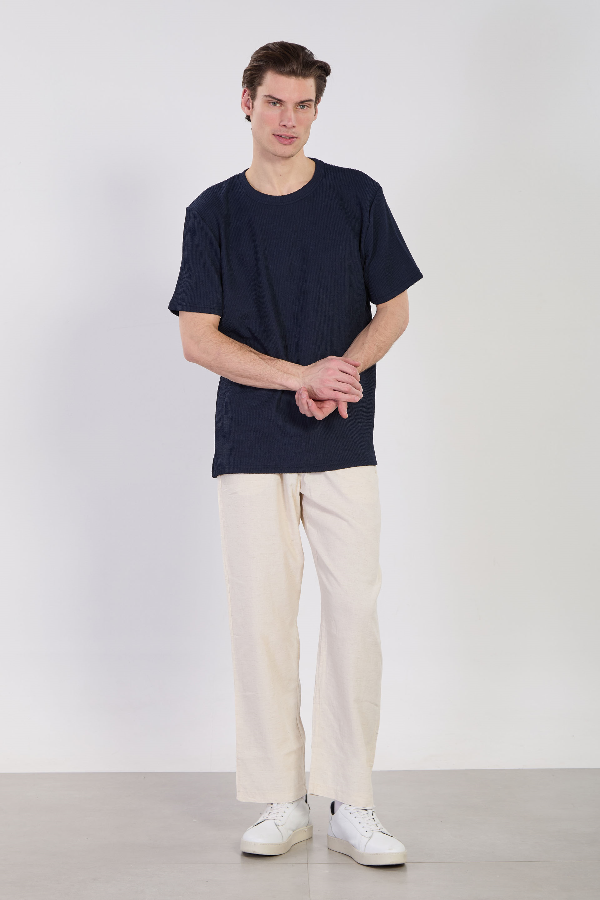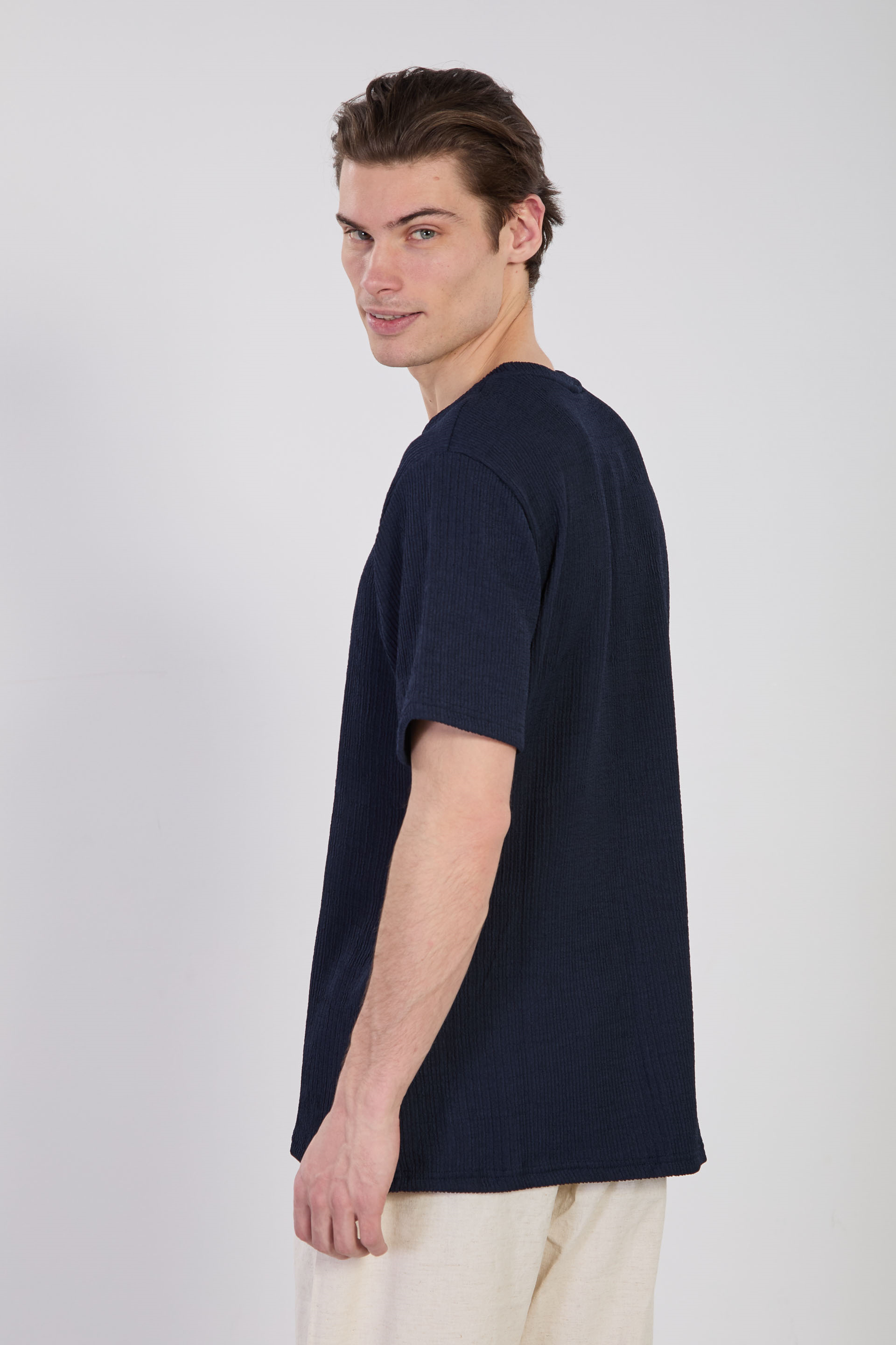 Erkek Bisiklet Yaka Melanj T-Shirt - Lacivert