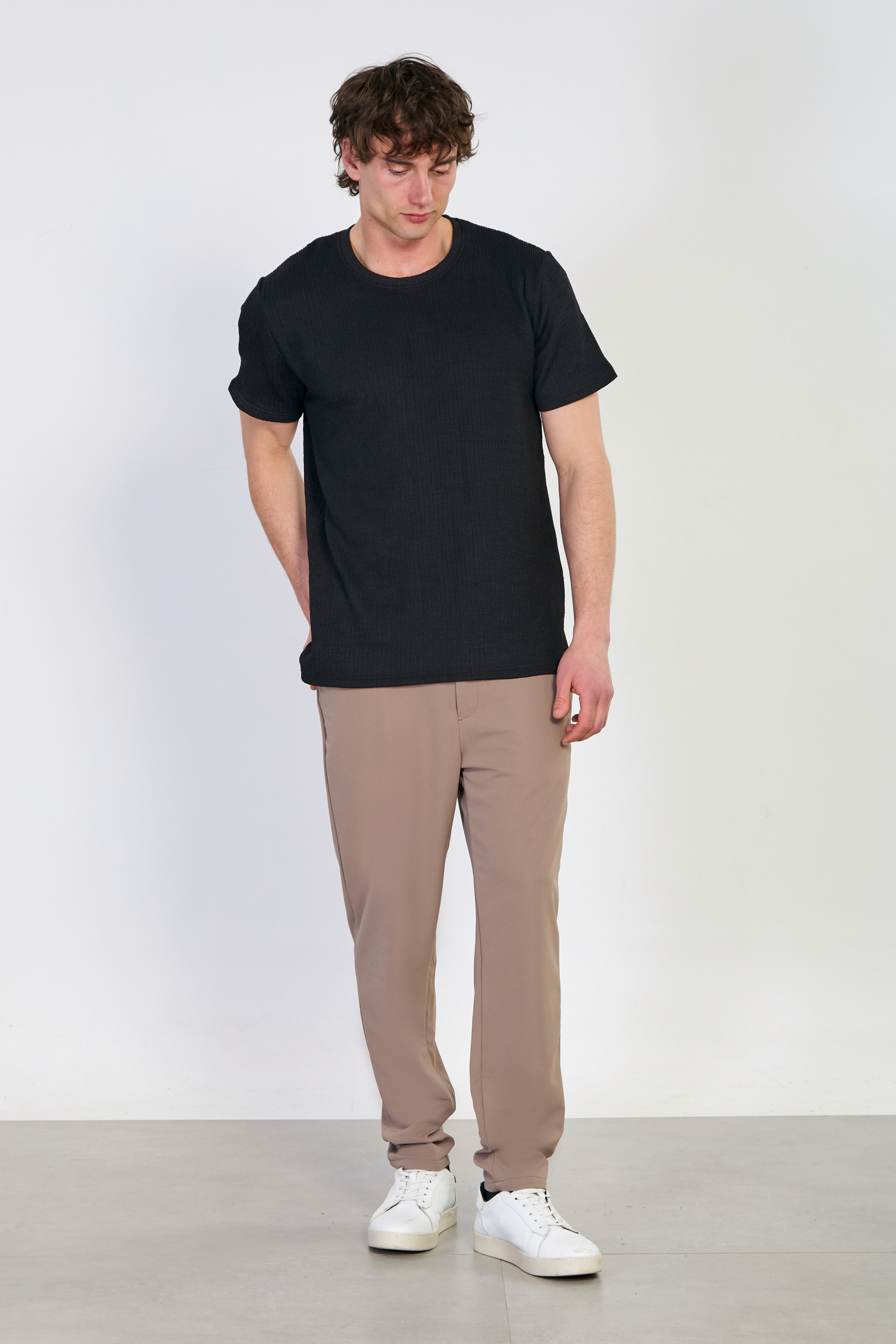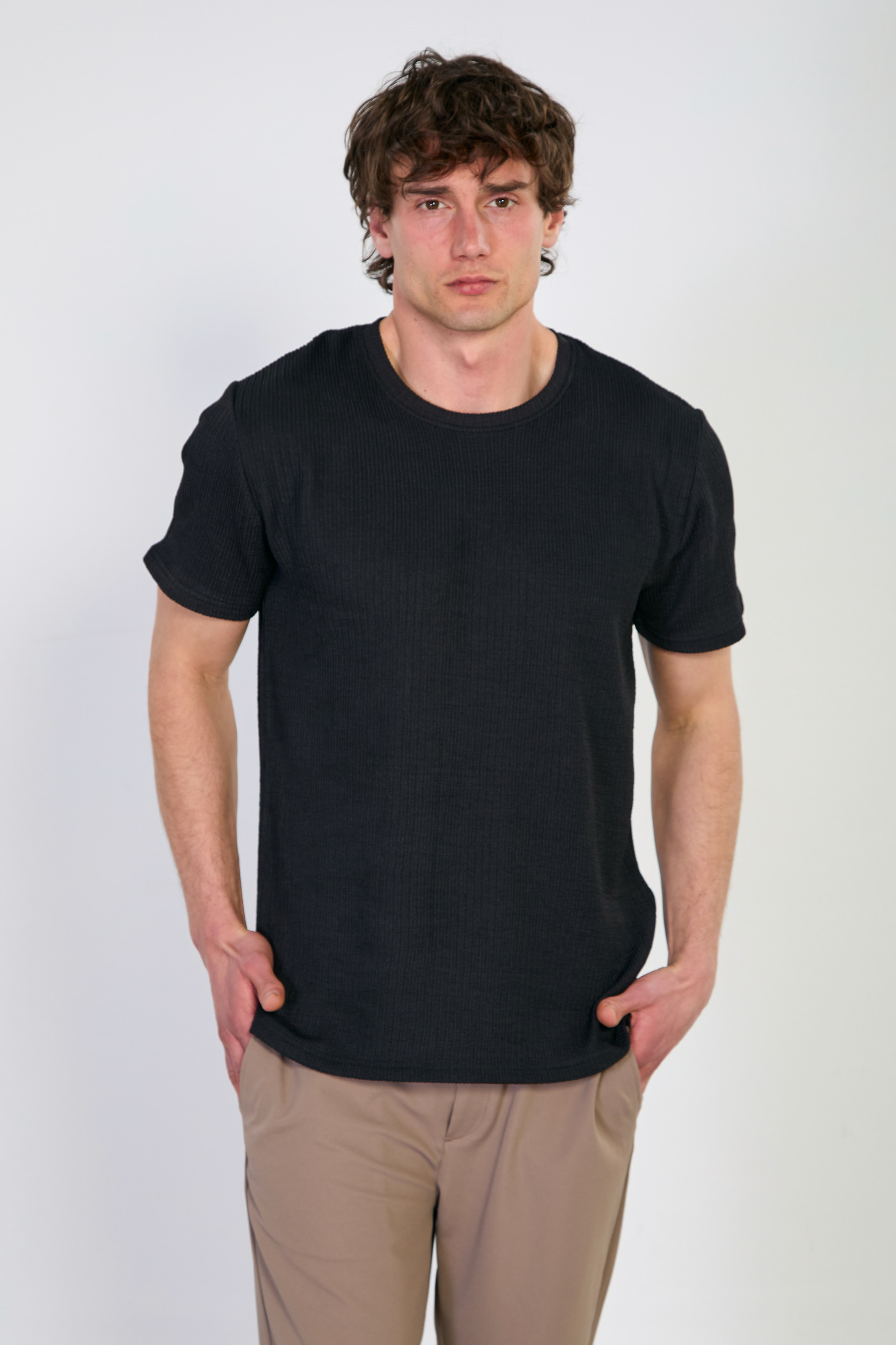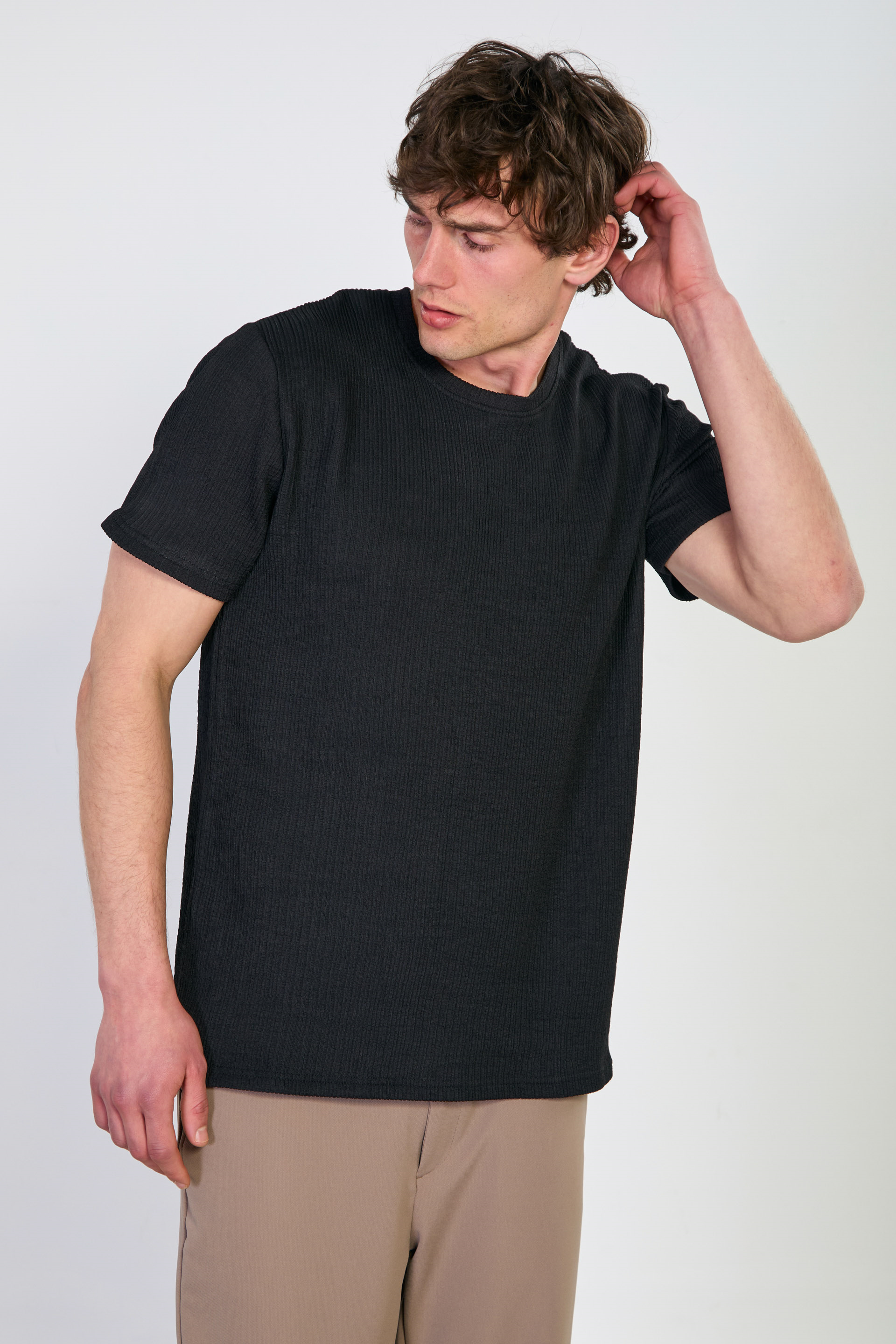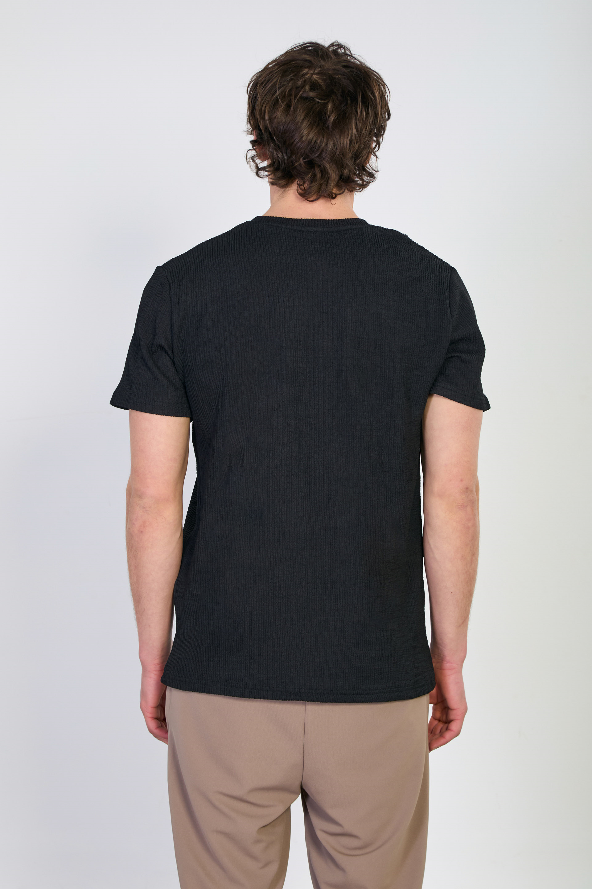 Erkek Bisiklet Yaka Melanj T-Shirt - Siyah