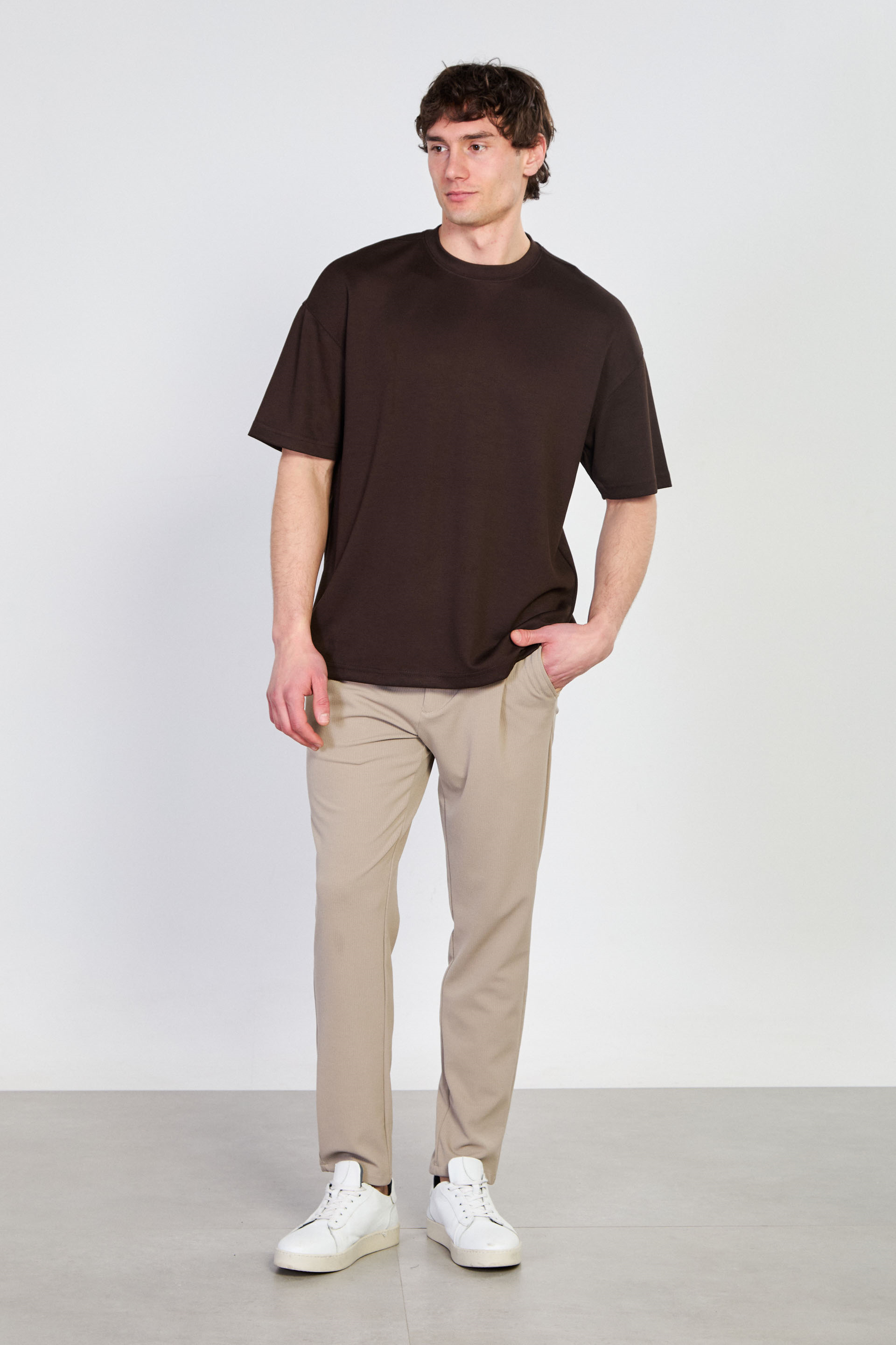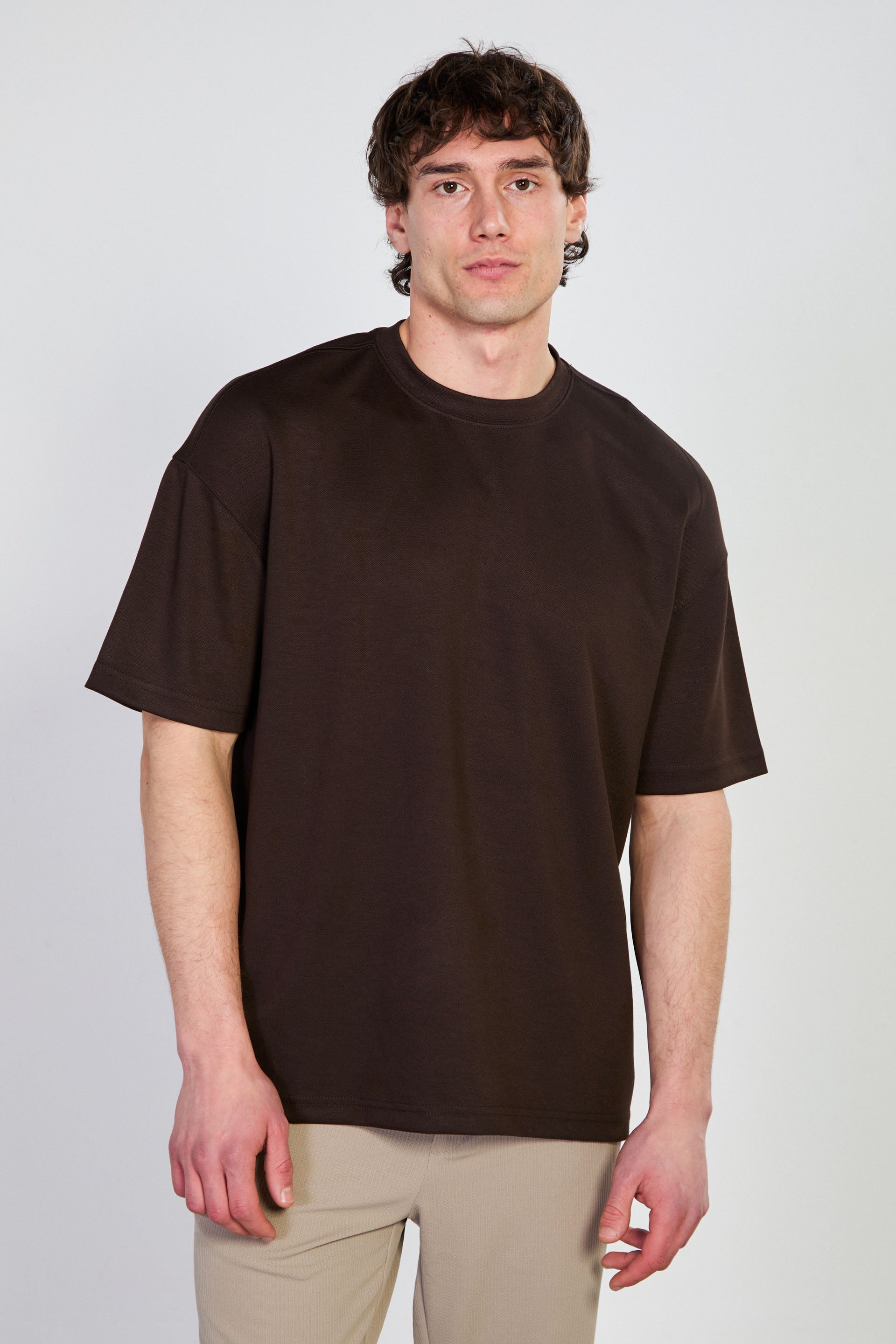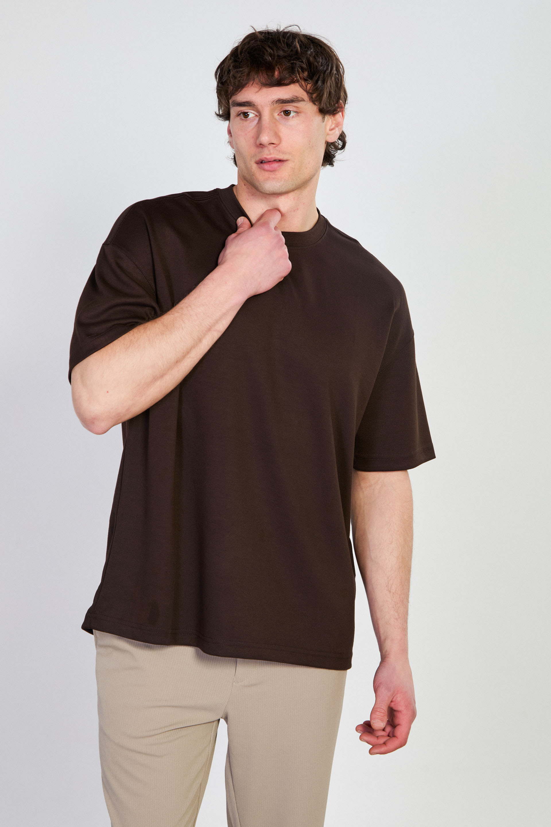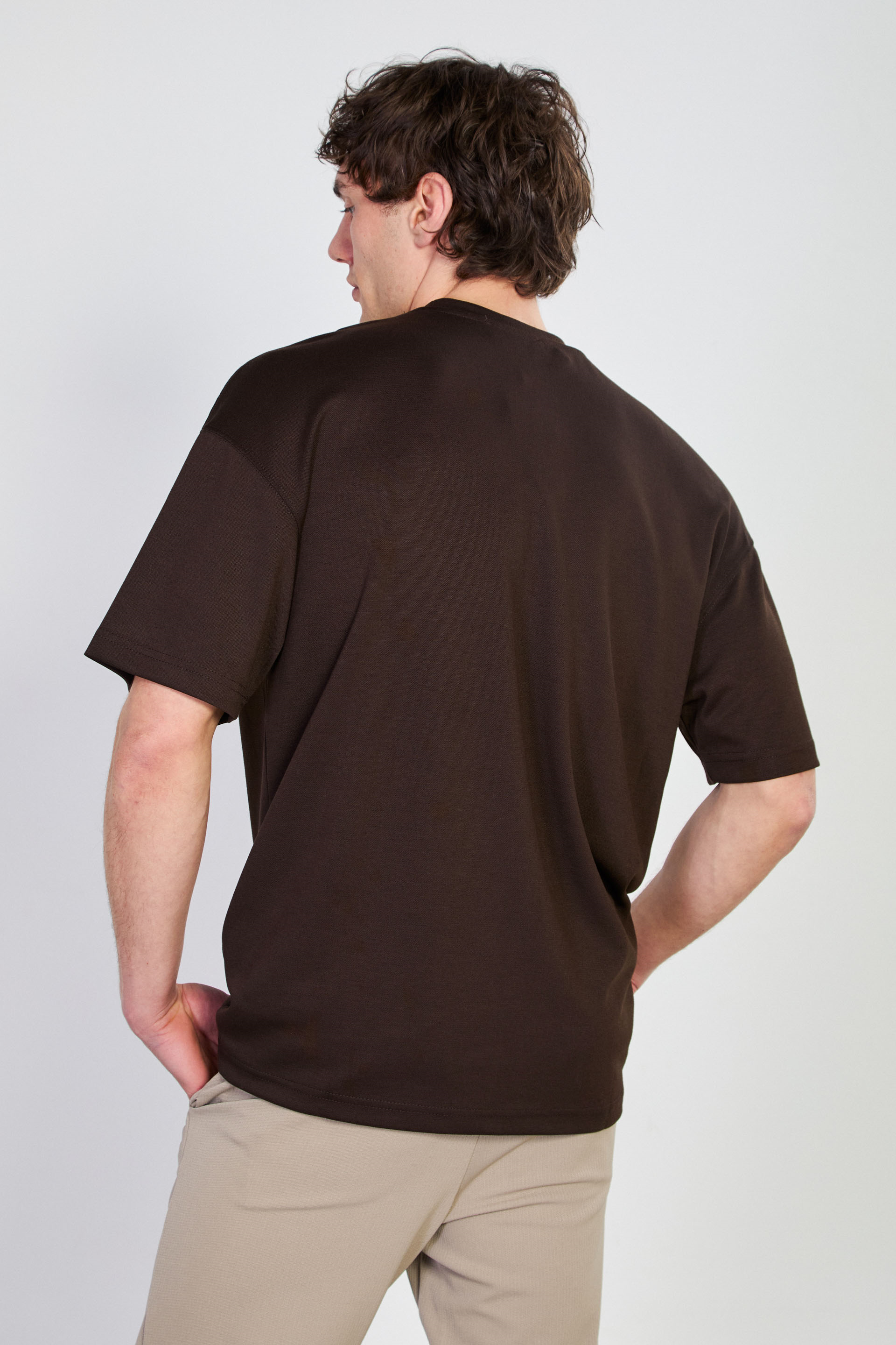 Erkek Bisiklet Yaka Regular Fit T-Shirt - Acı Kahve