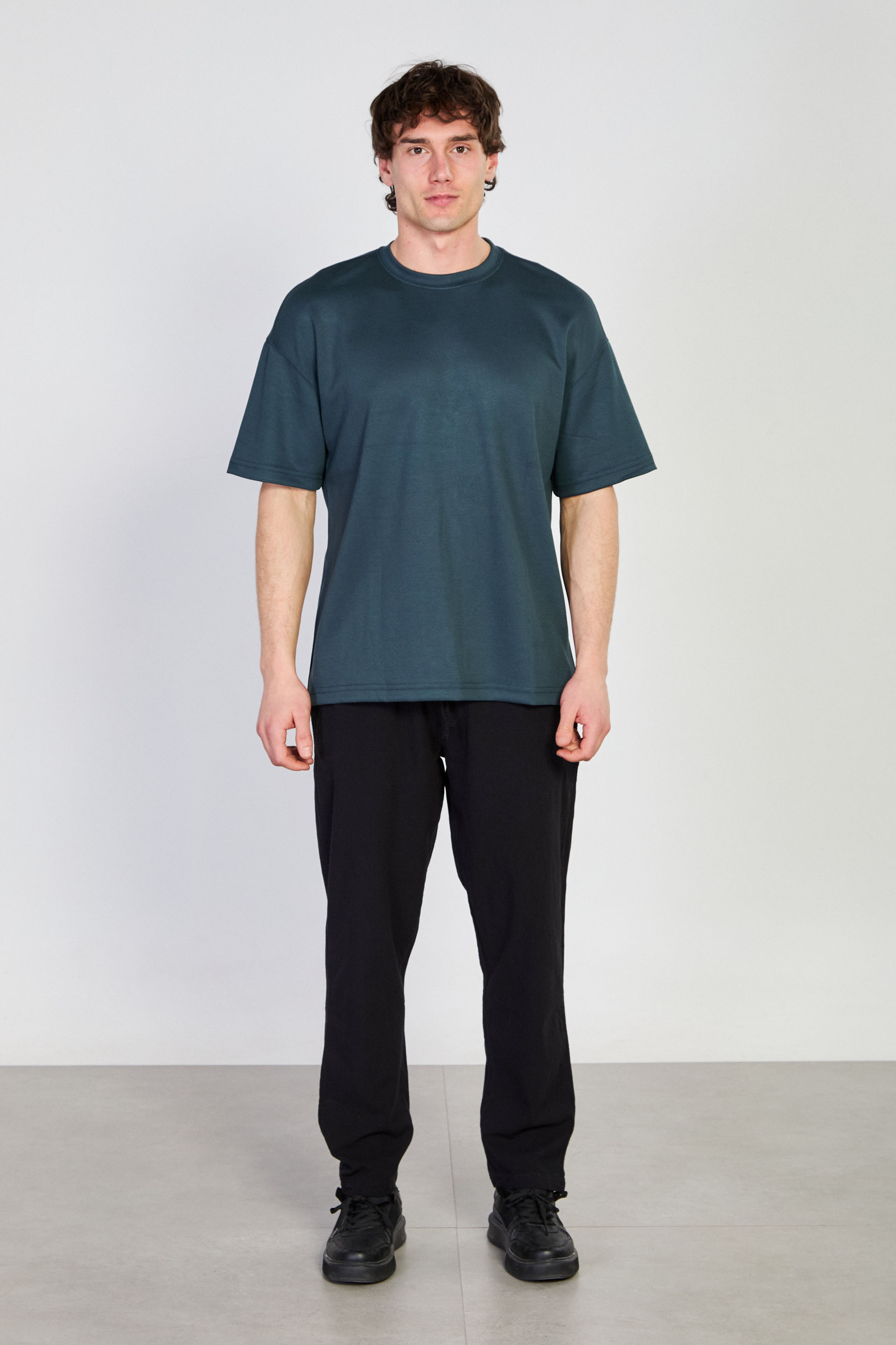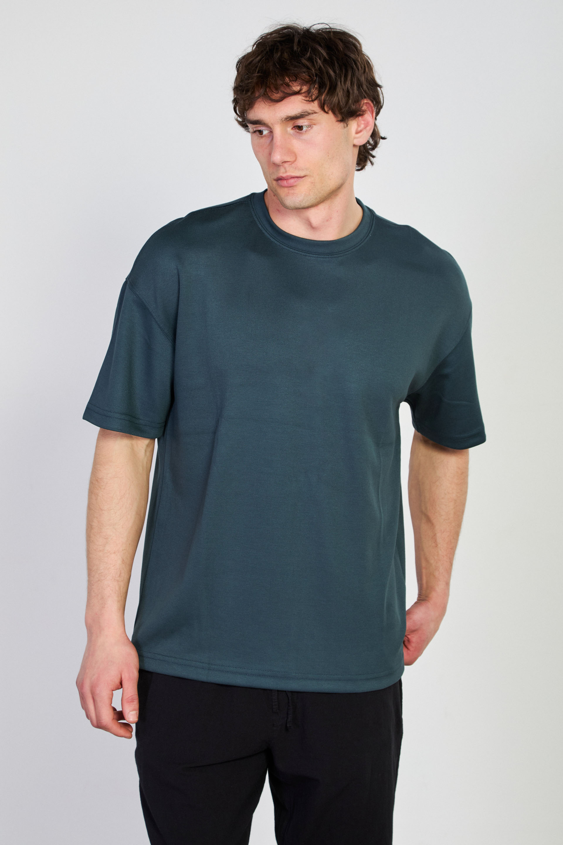 Erkek Bisiklet Yaka Regular Fit T-Shirt - Petrol