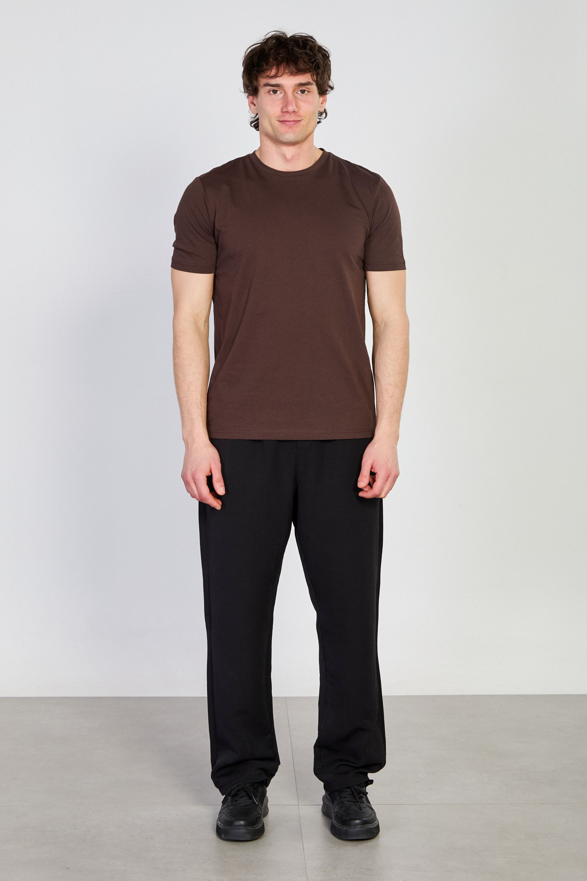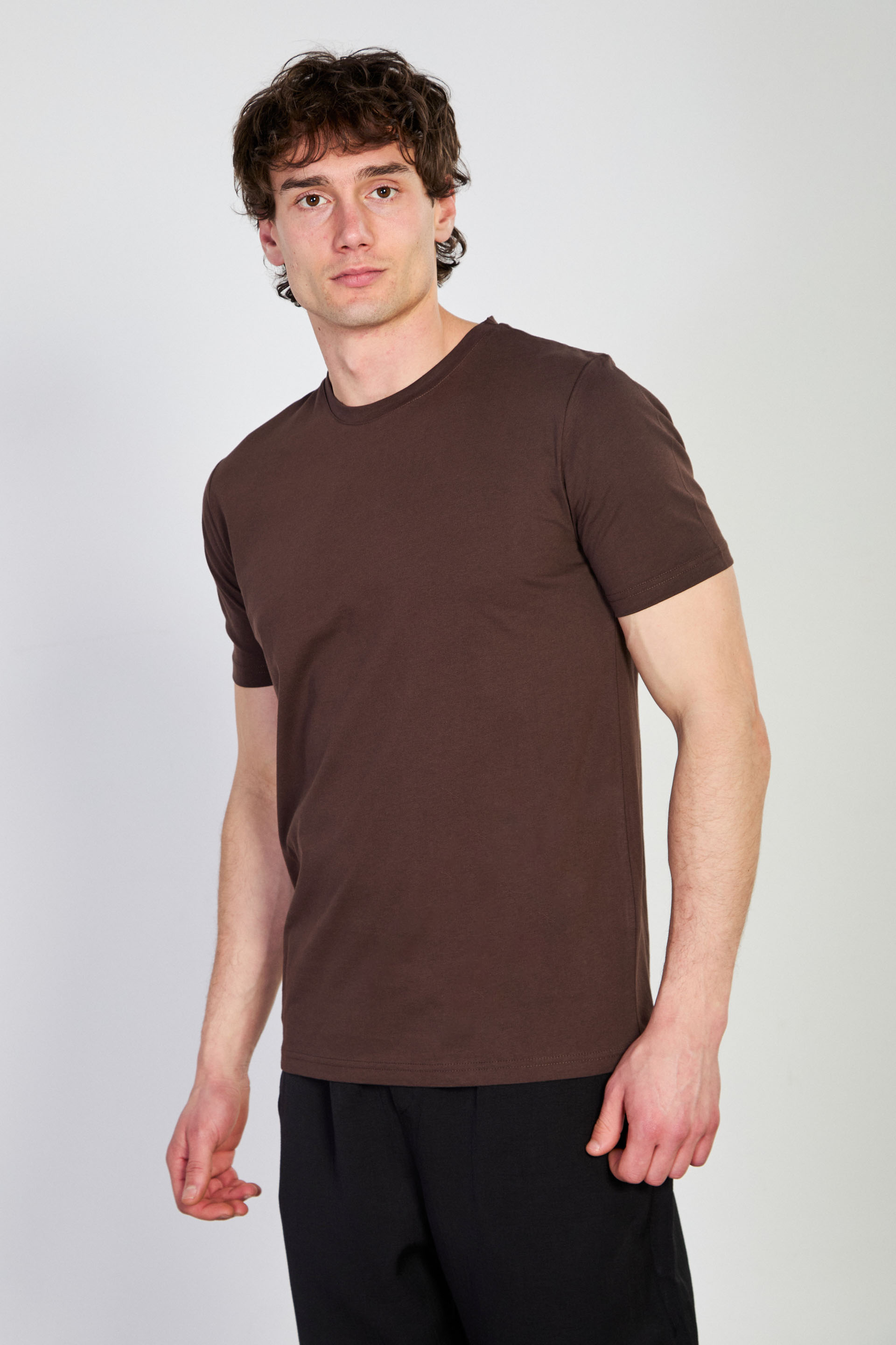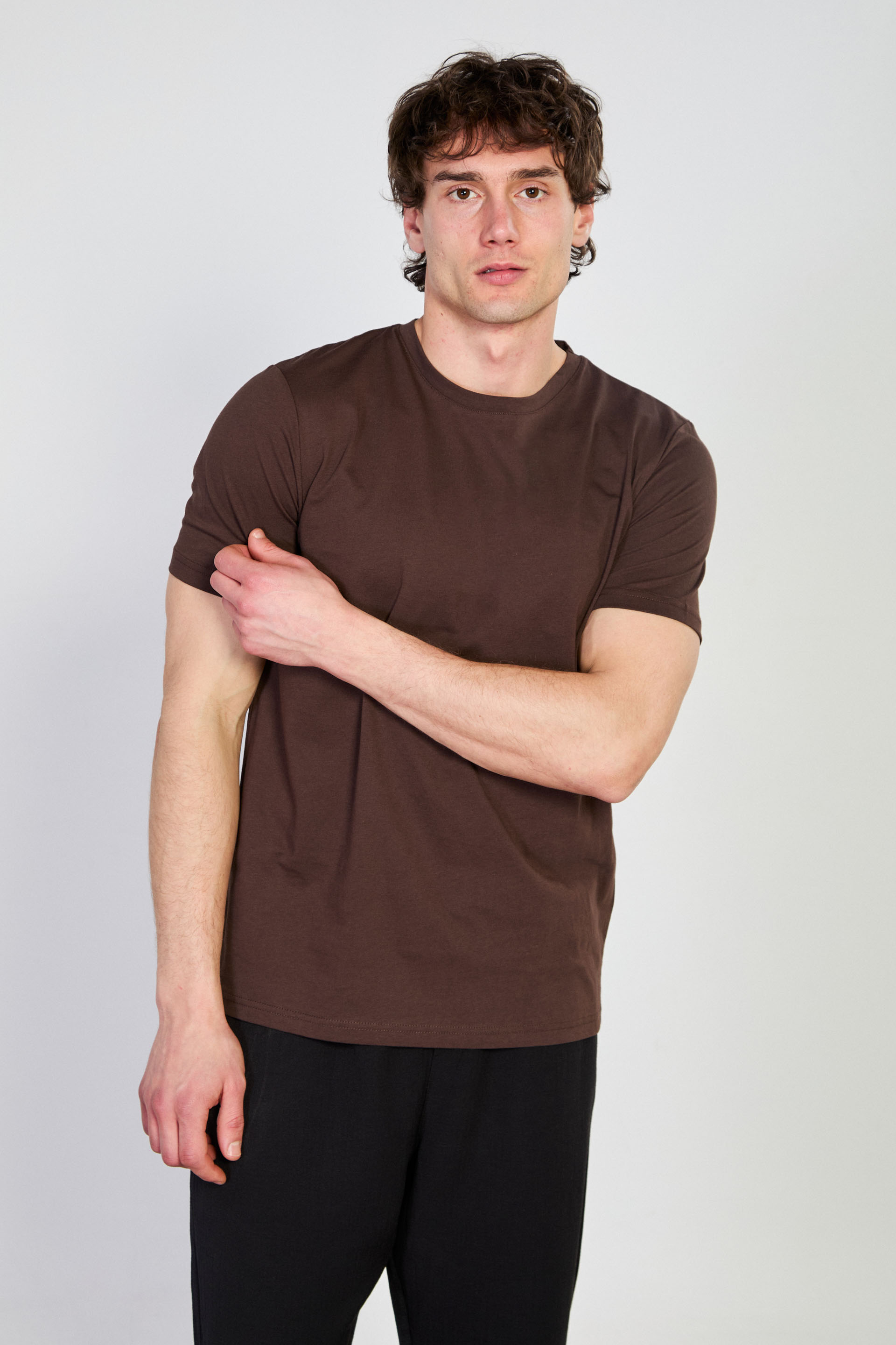 Erkek Bisiklet Yaka Regular Fit T-Shirt - Kahve