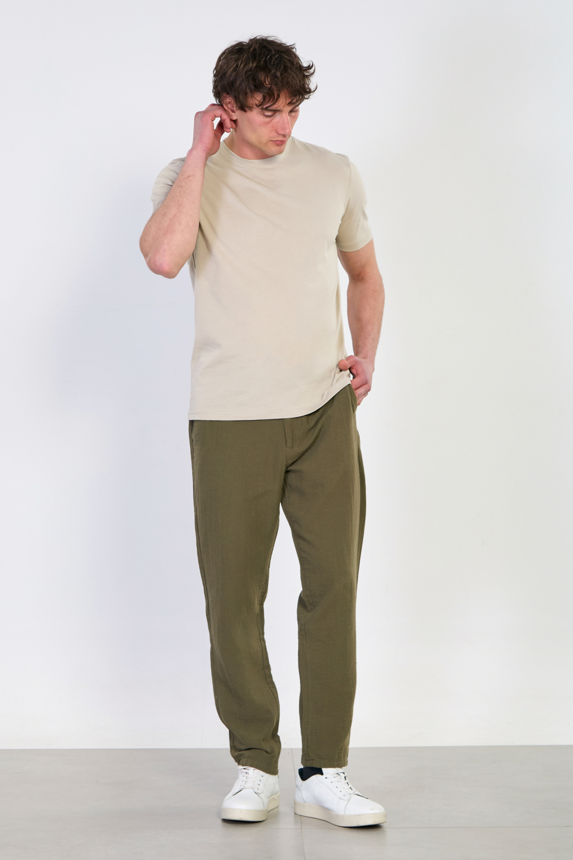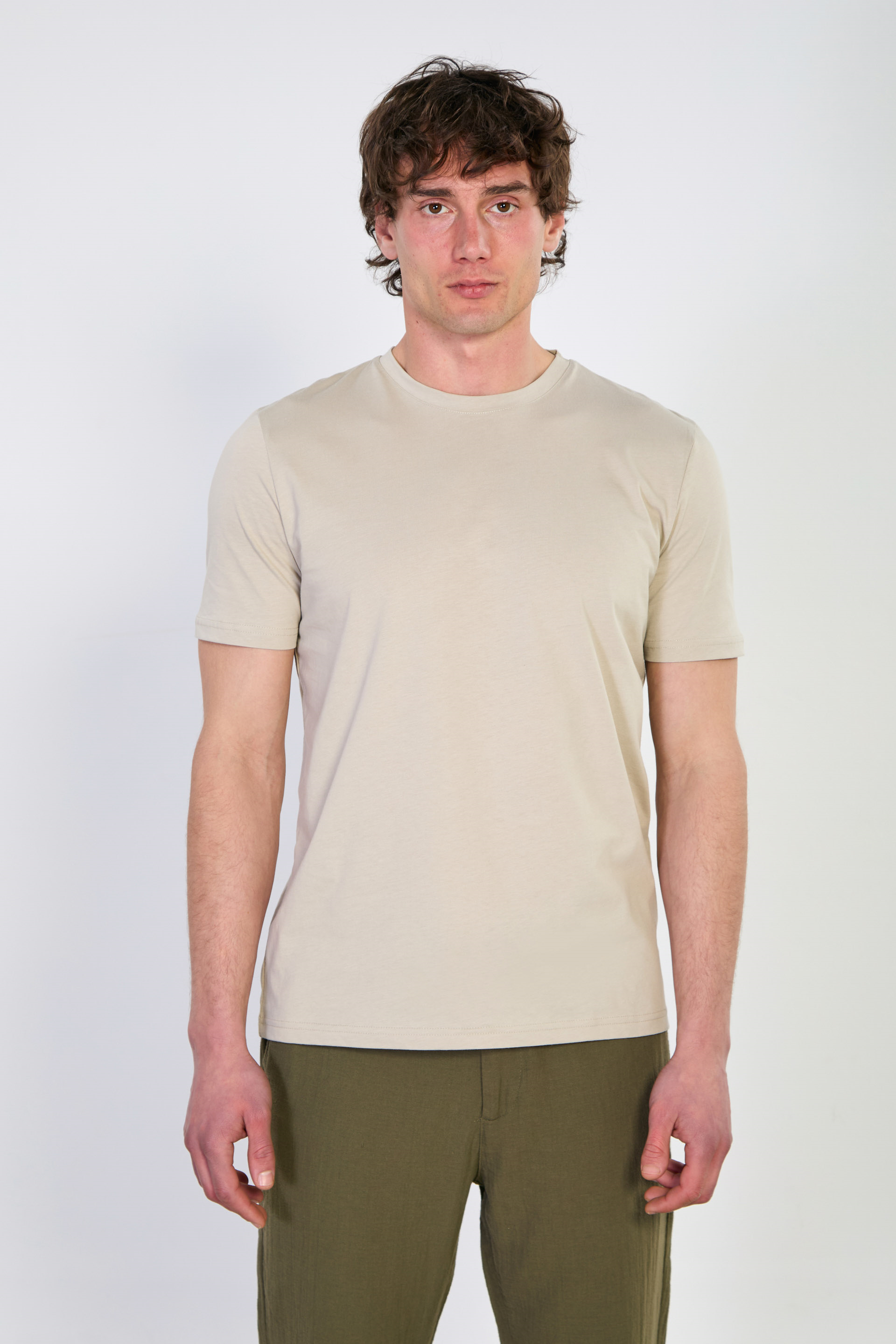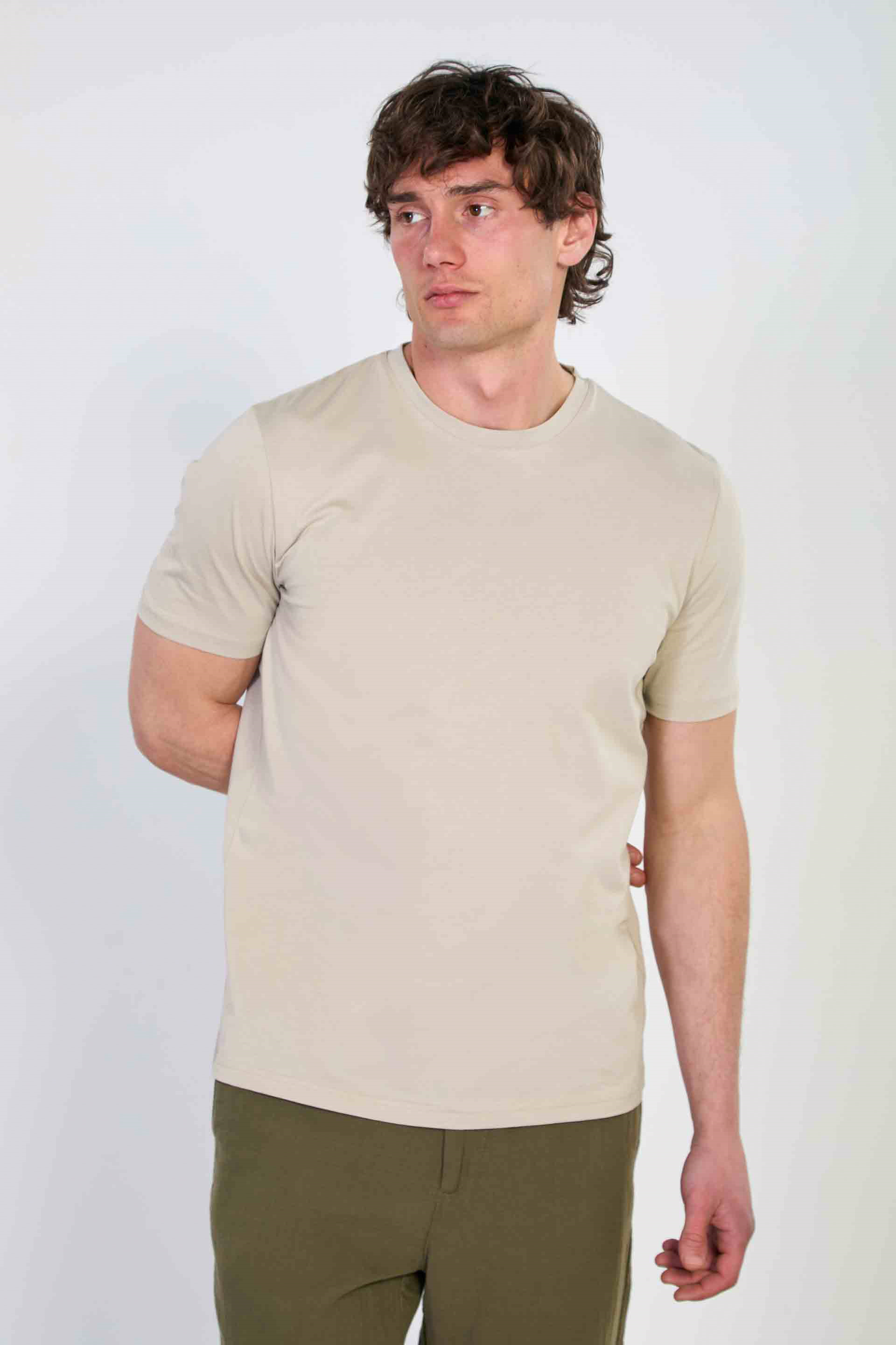 Erkek Bisiklet Yaka Regular Fit T-Shirt - Vizon