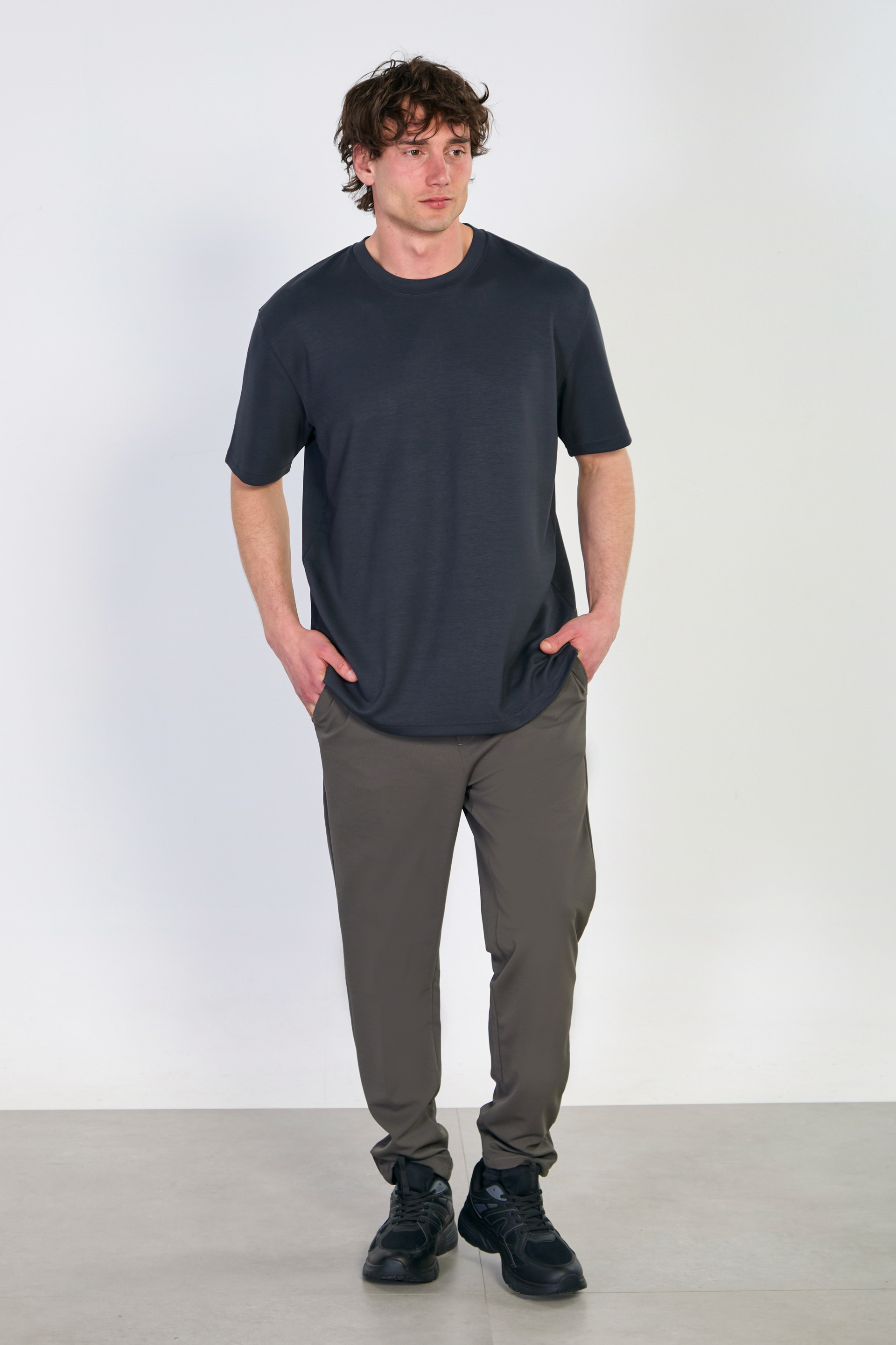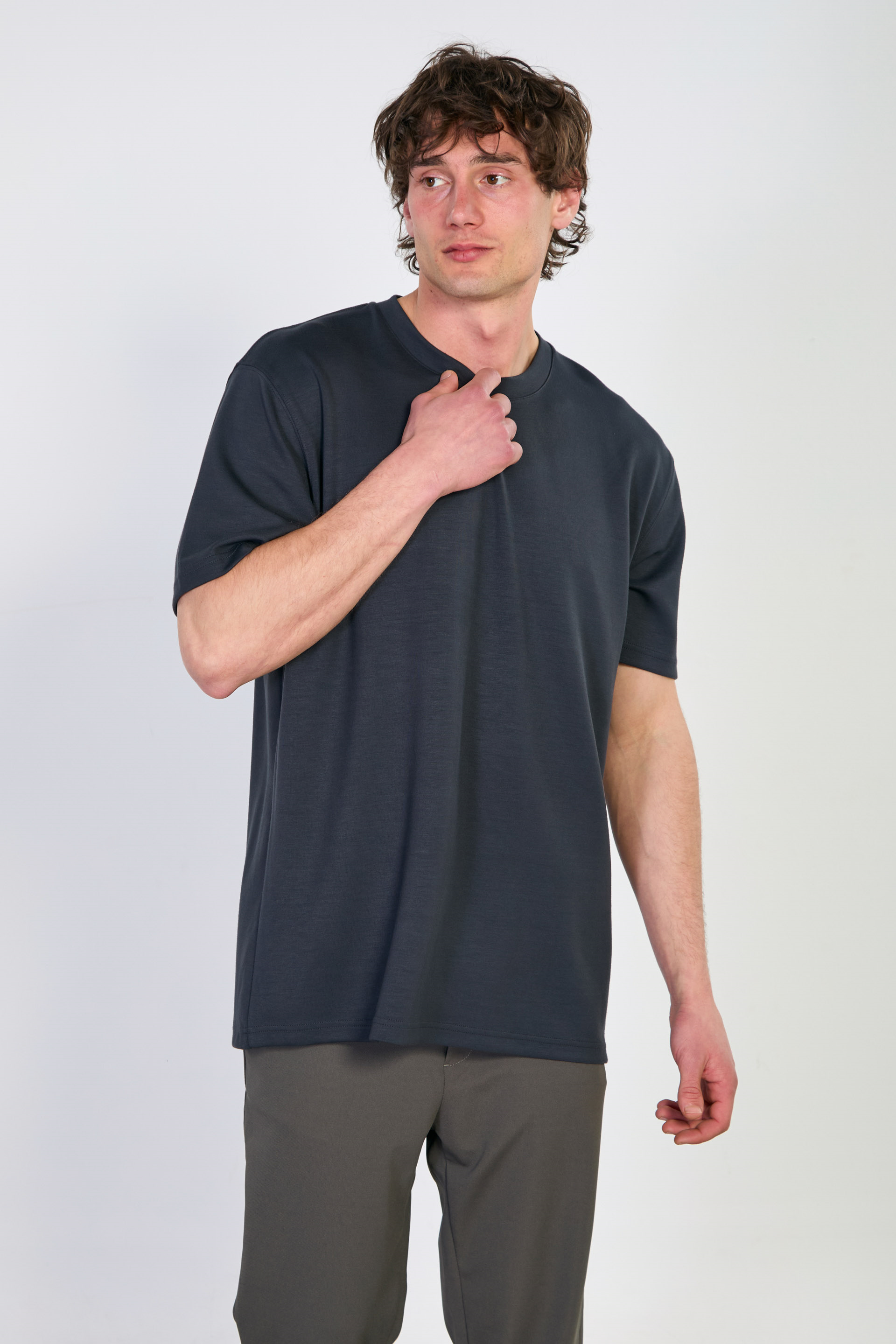 Erkek Bisiklet Yaka T-Shirt - Antrasit