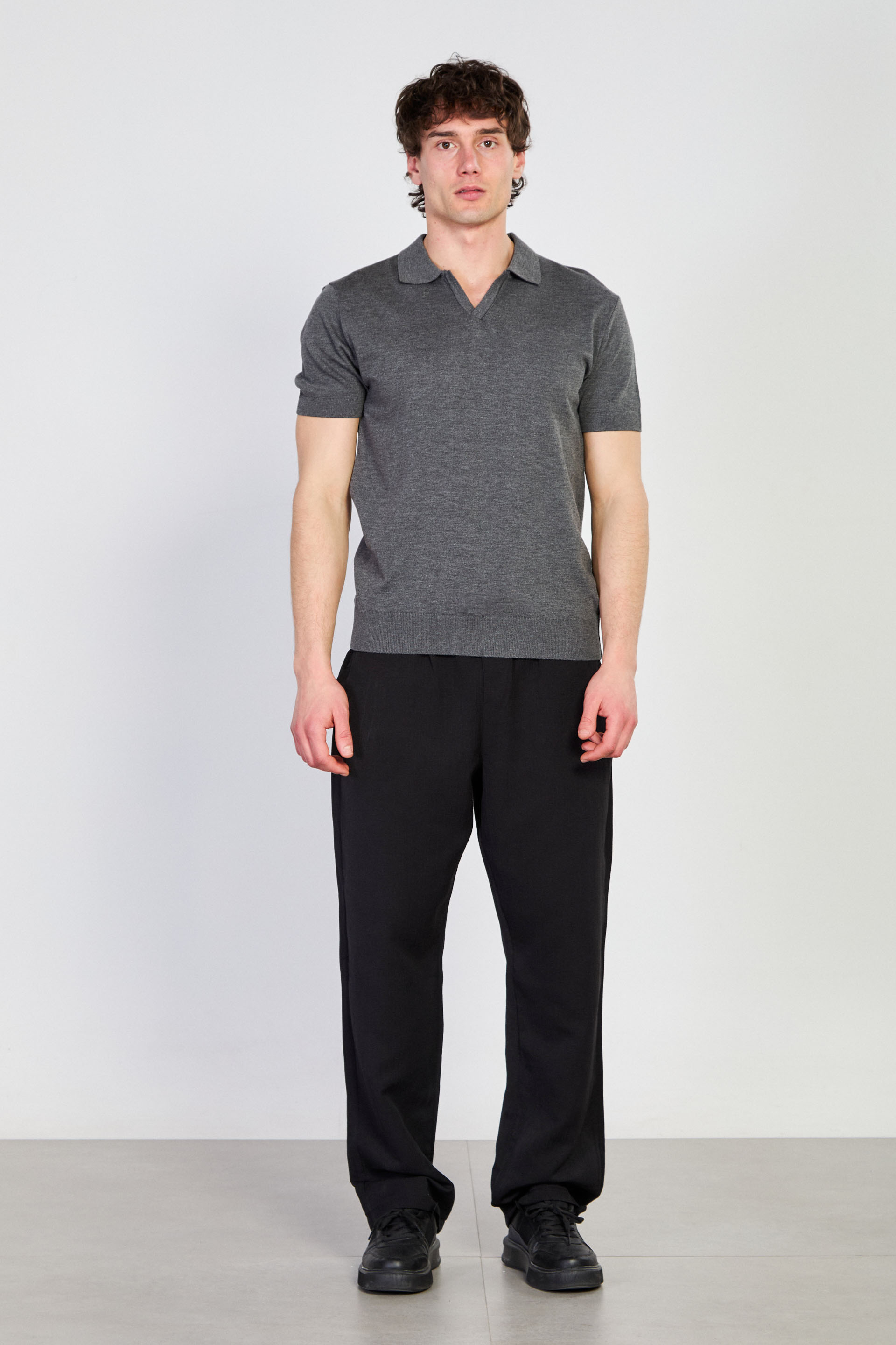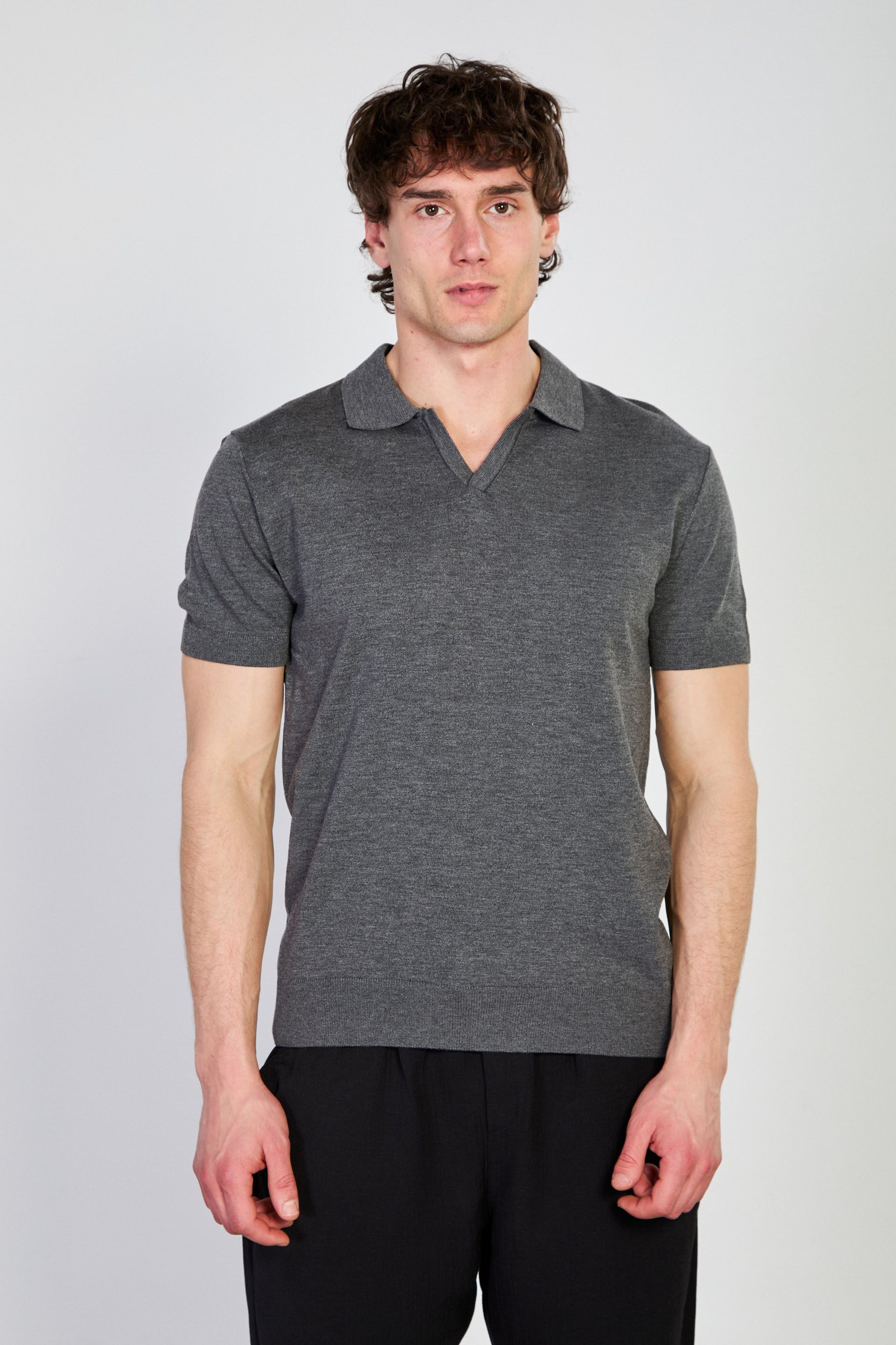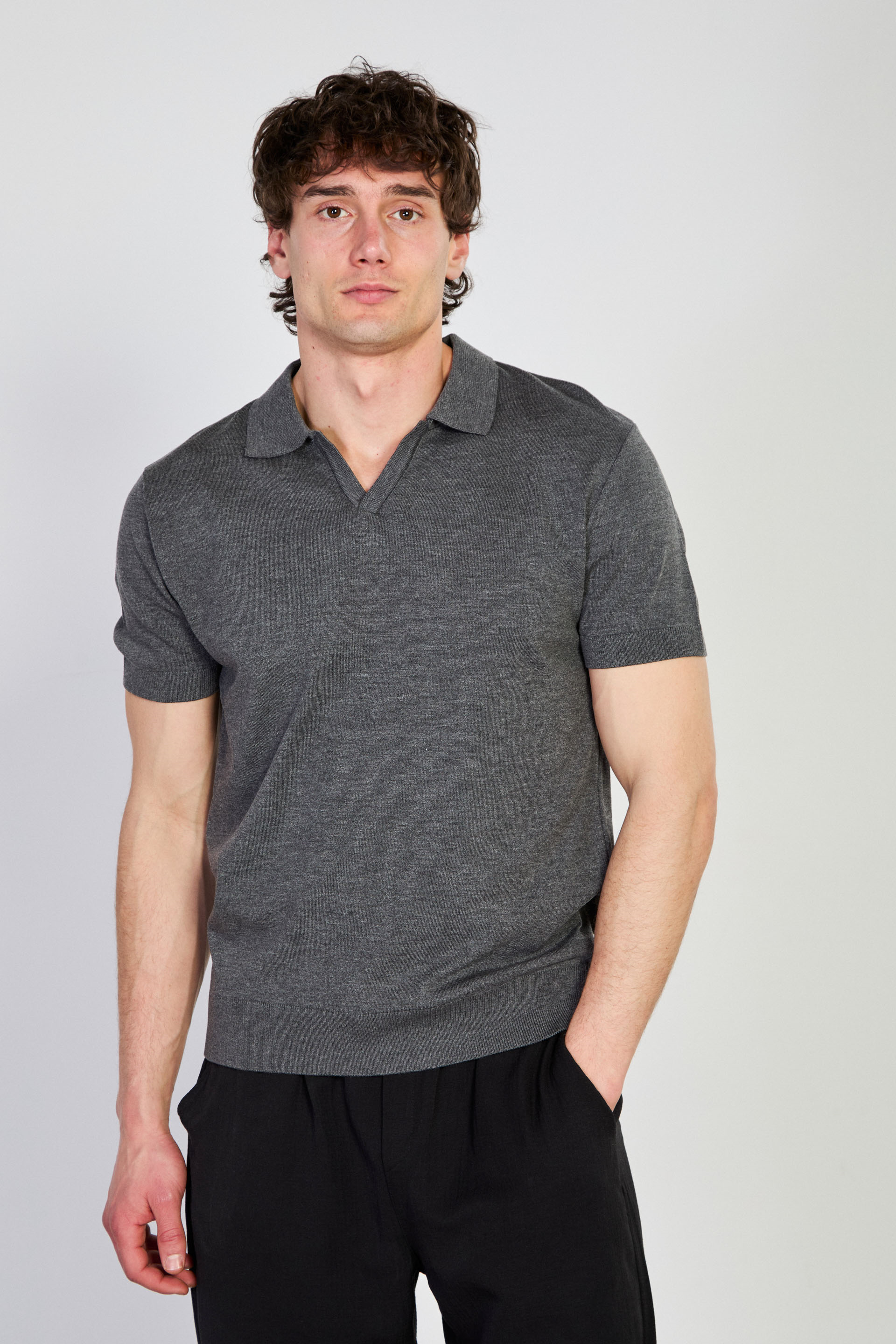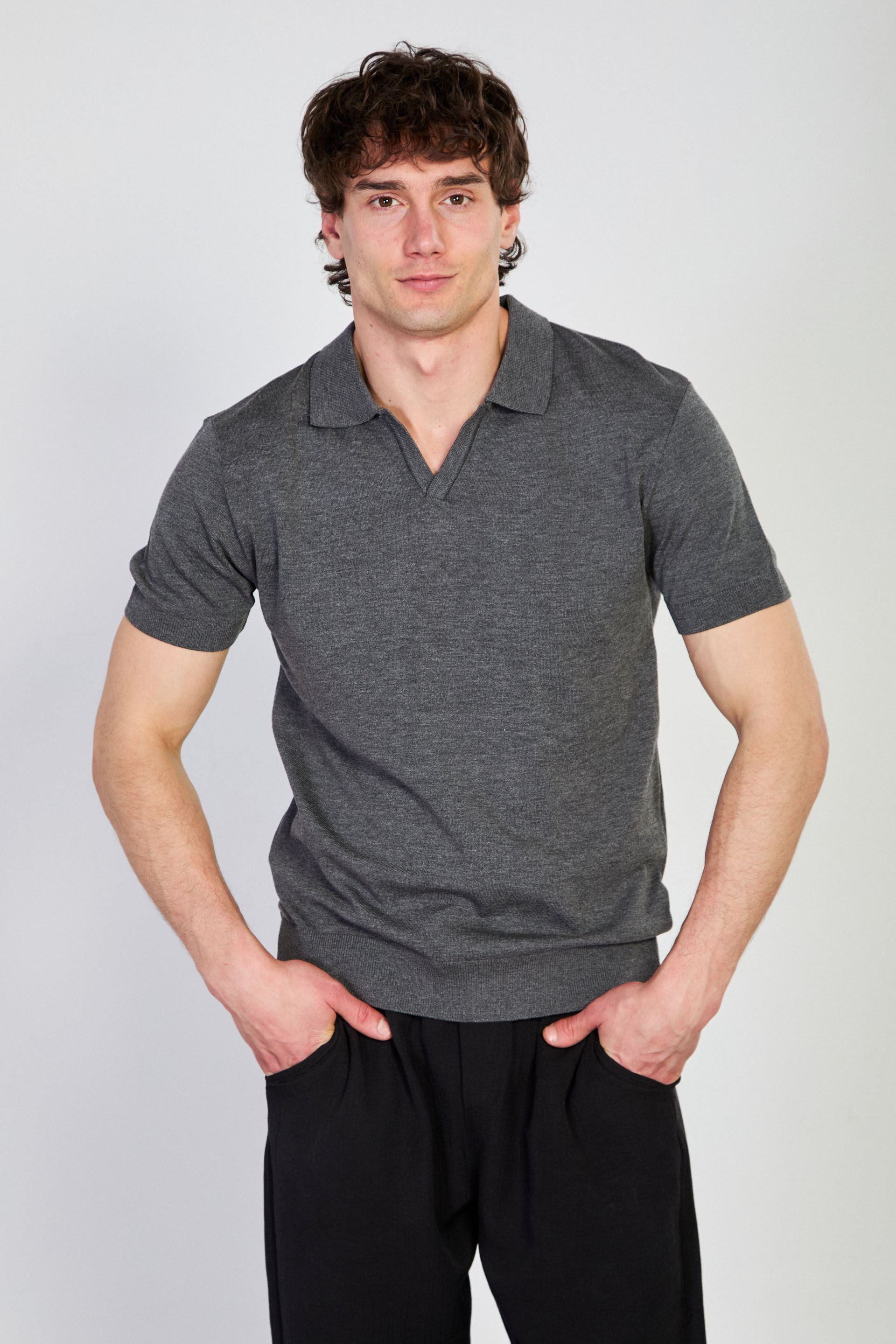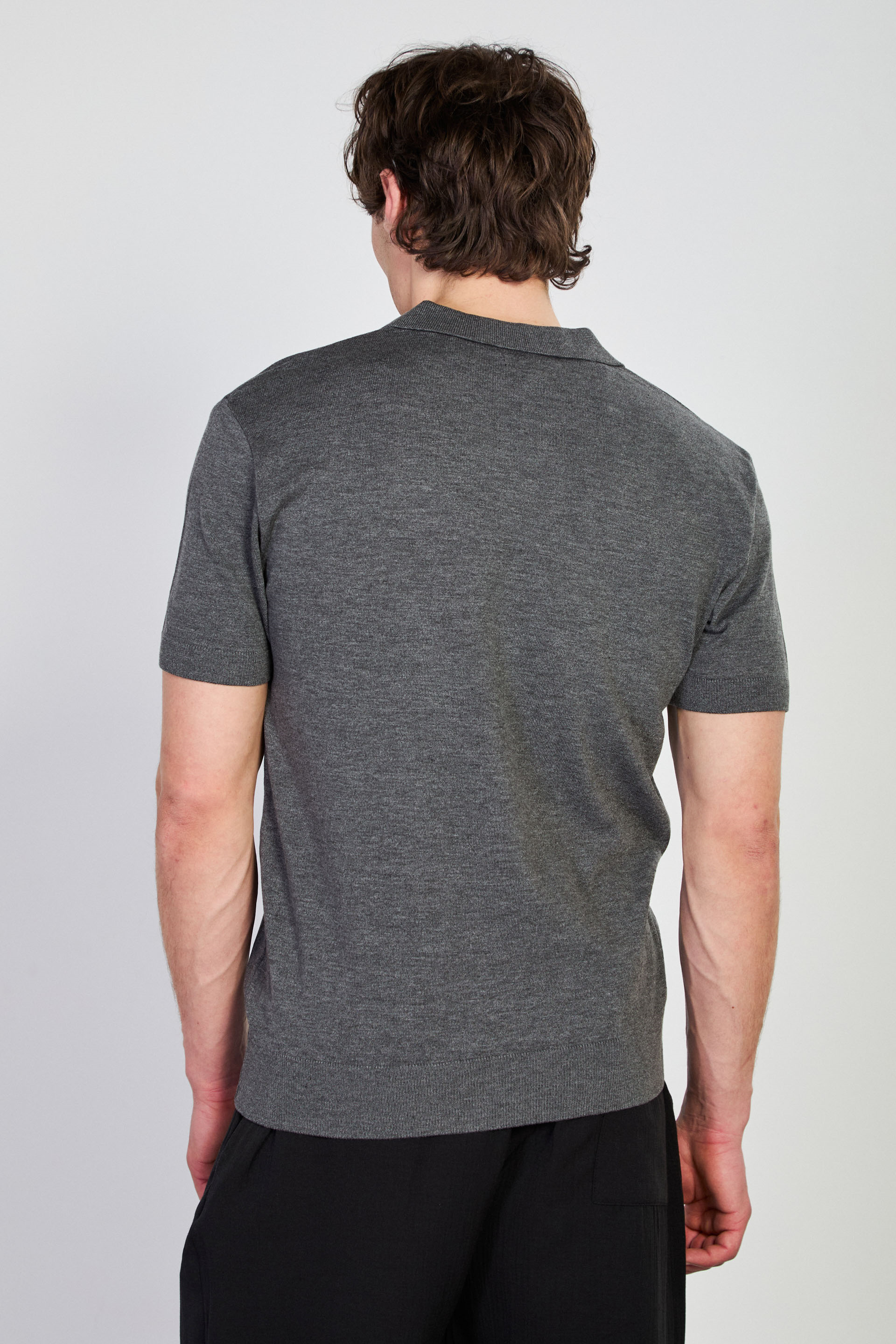 Erkek Bisiklet Yaka Triko T-Shirt - Antrasit
