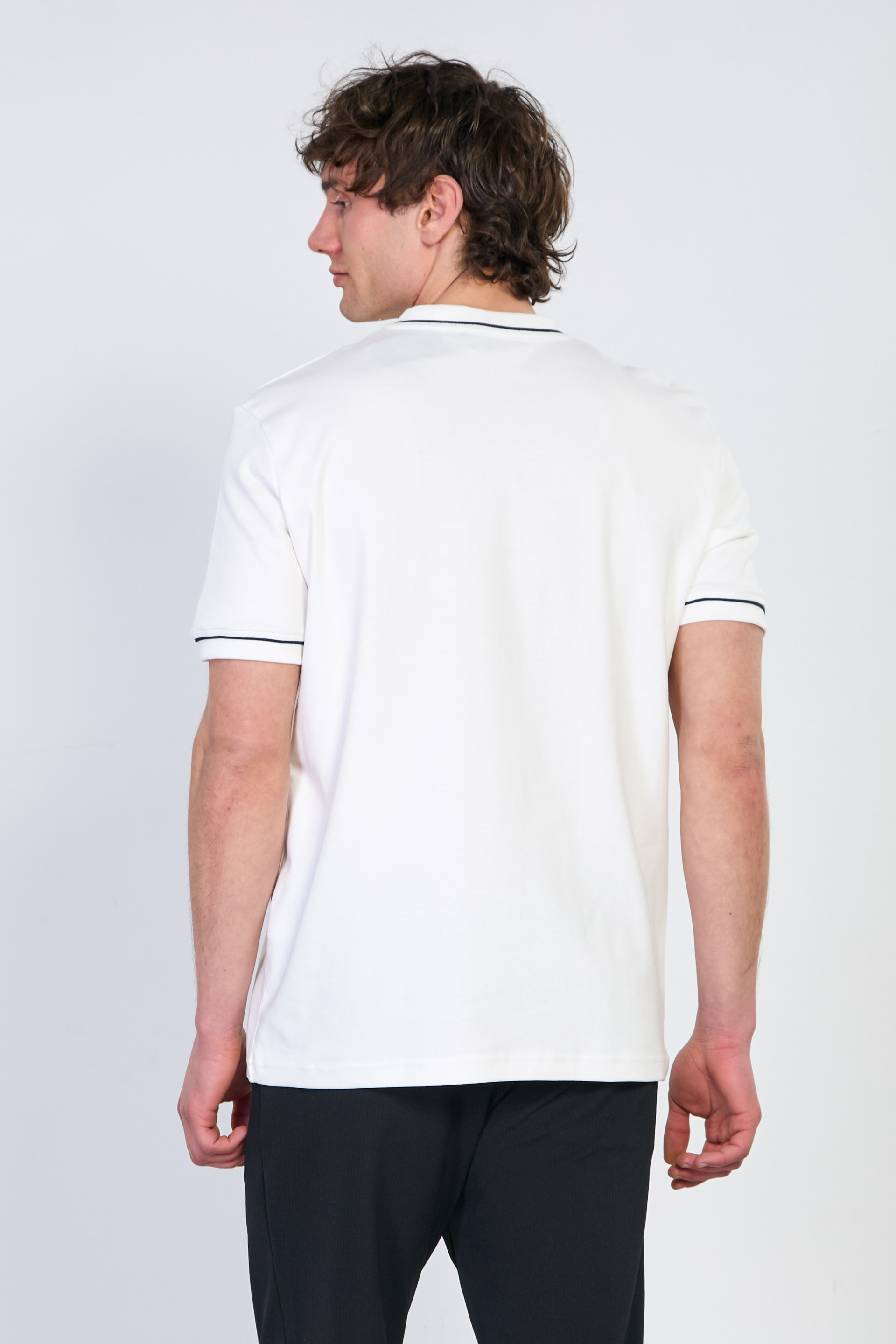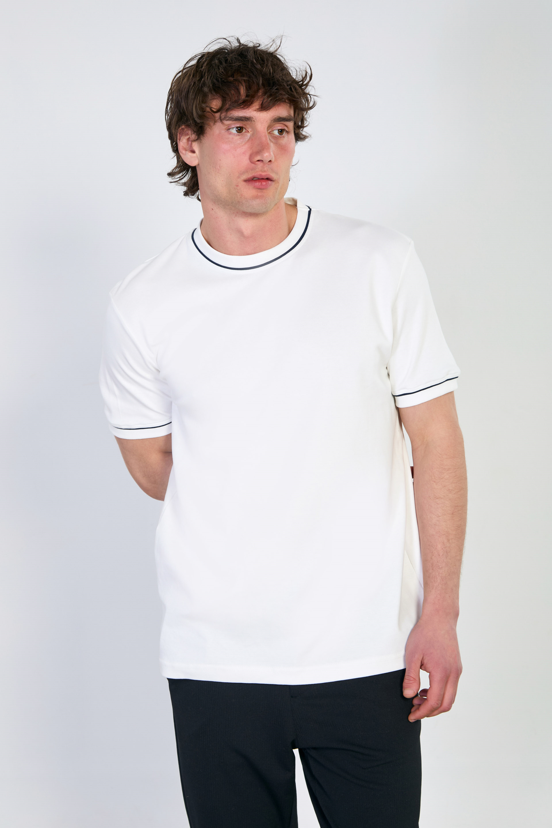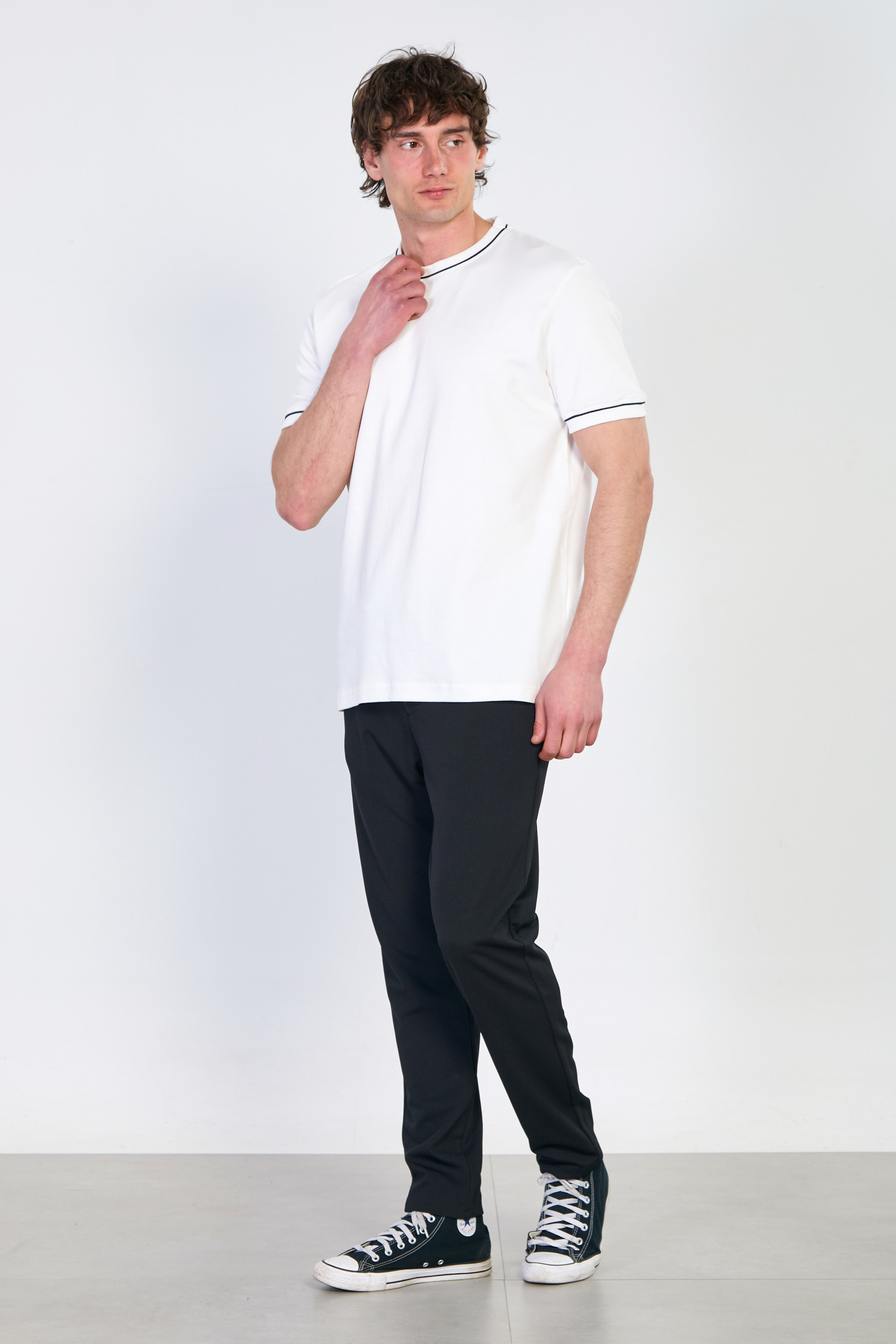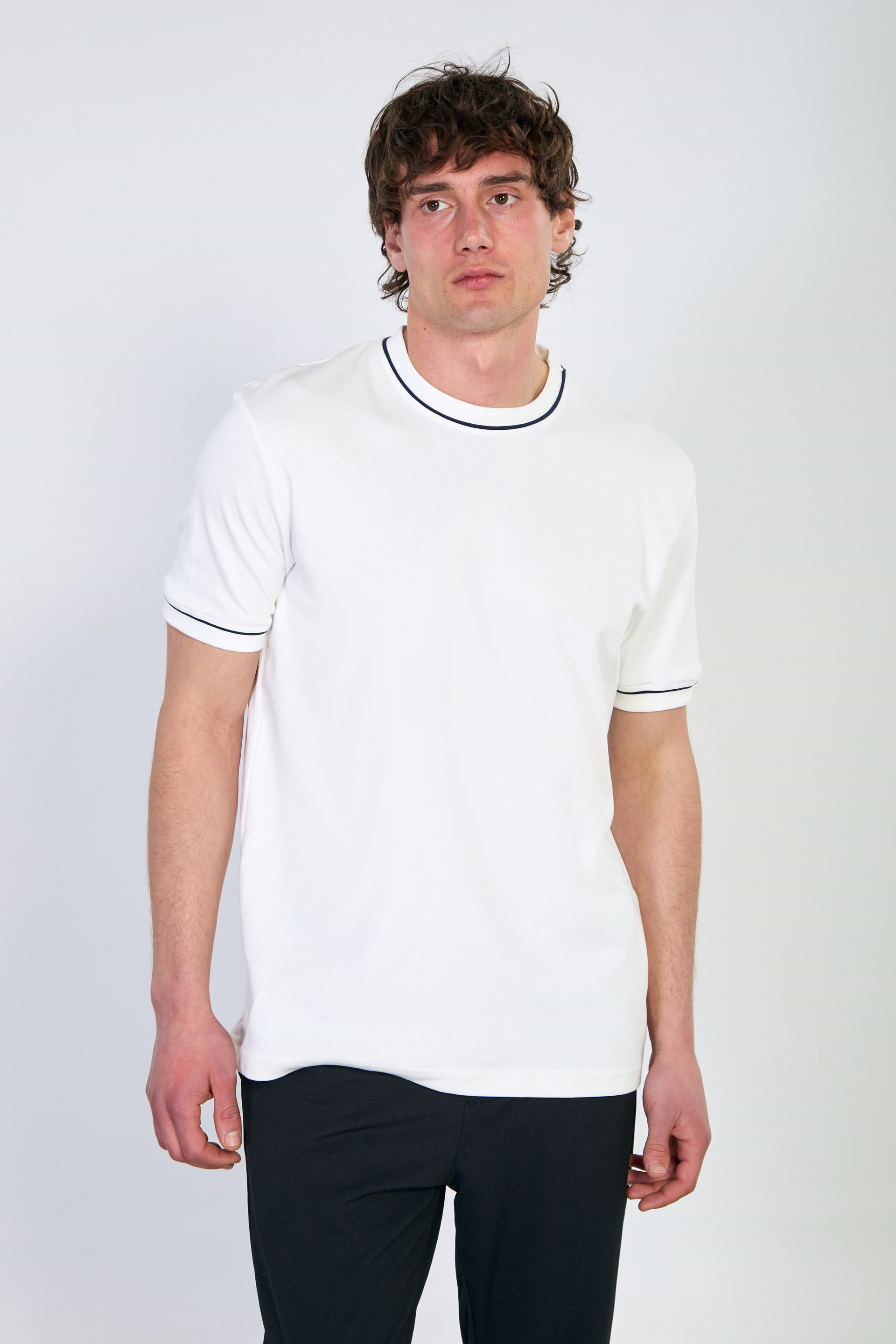 Erkek Biye Detaylı Bisiklet Yaka T-Shirt - Ekru