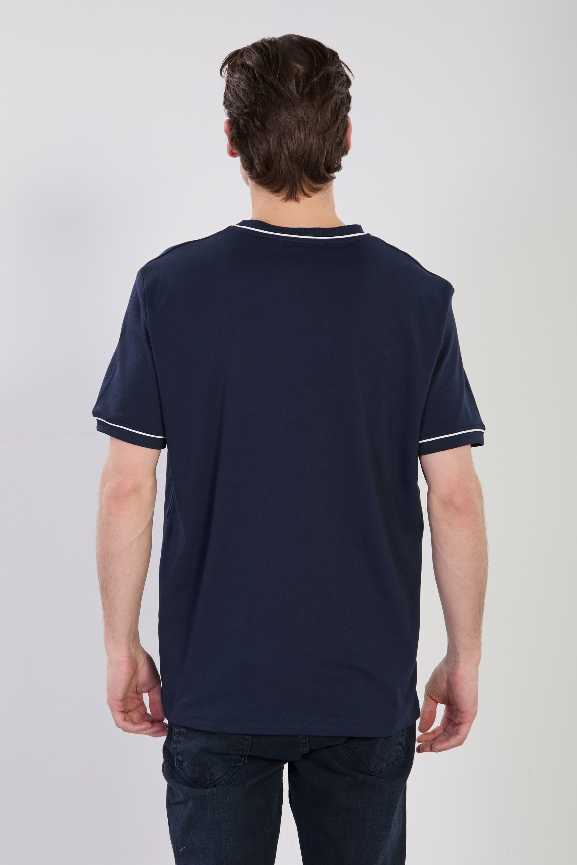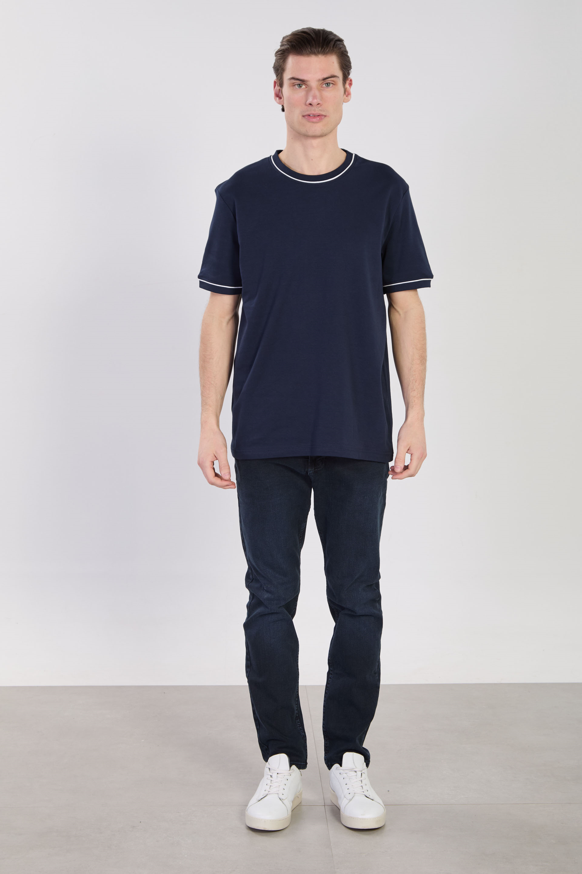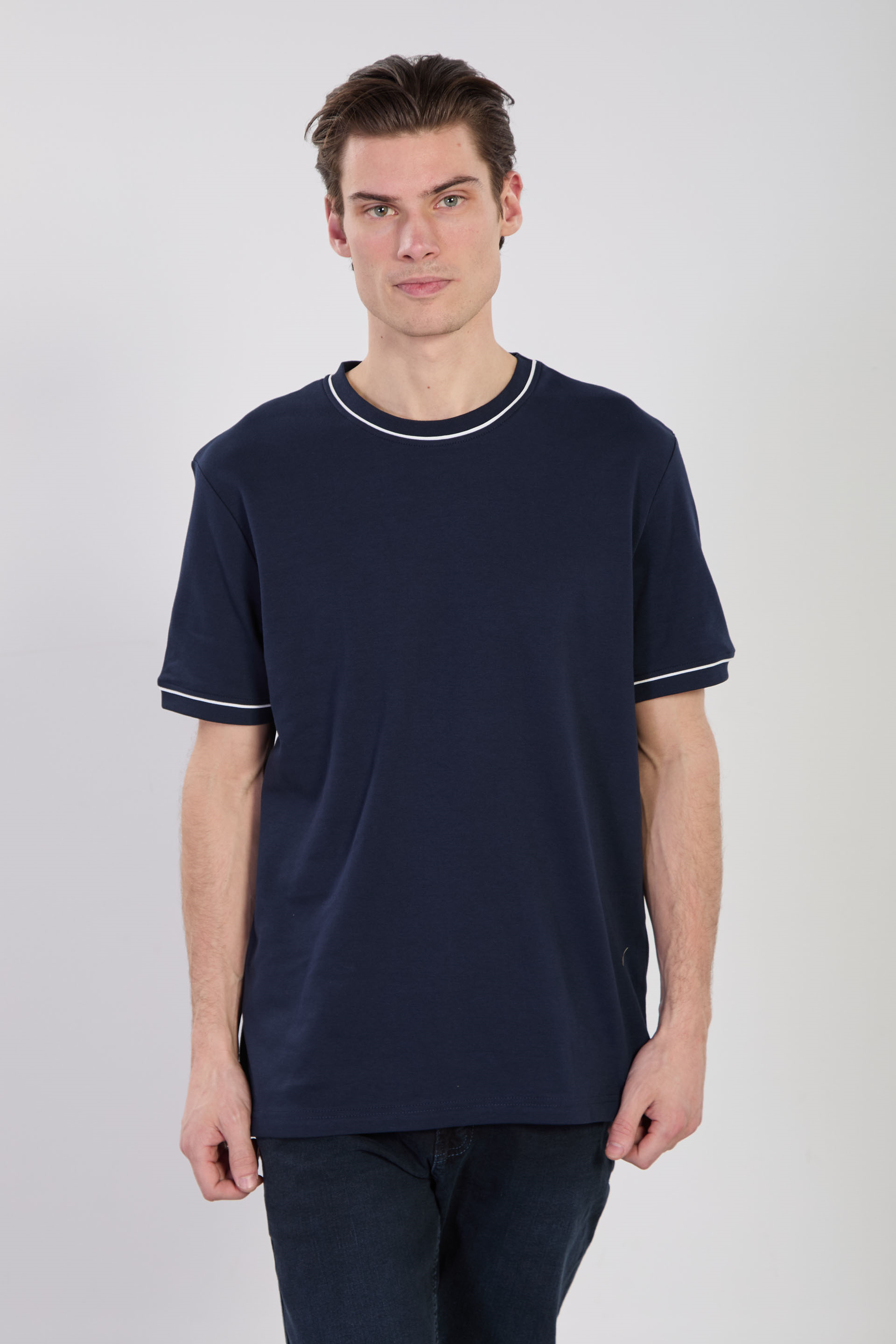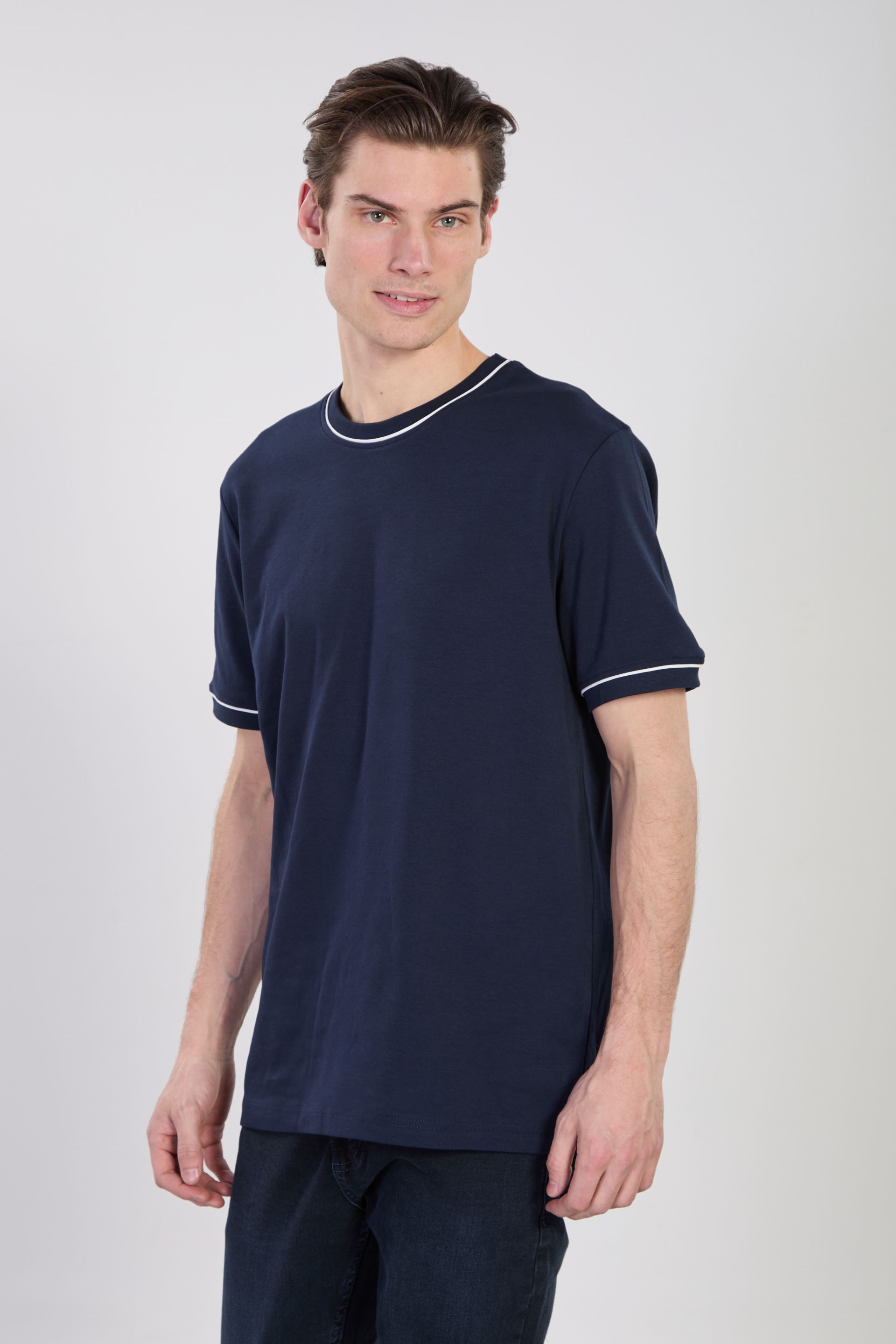 Erkek Biye Detaylı Bisiklet Yaka T-Shirt - İndigo
