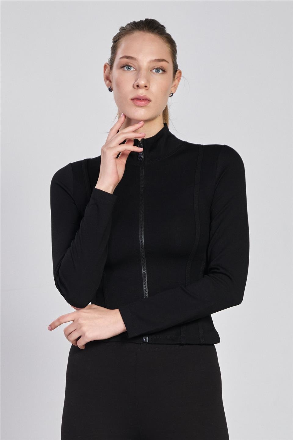 Kadın Biyeli Fermuarlı Uzun Kol Body - Siyah