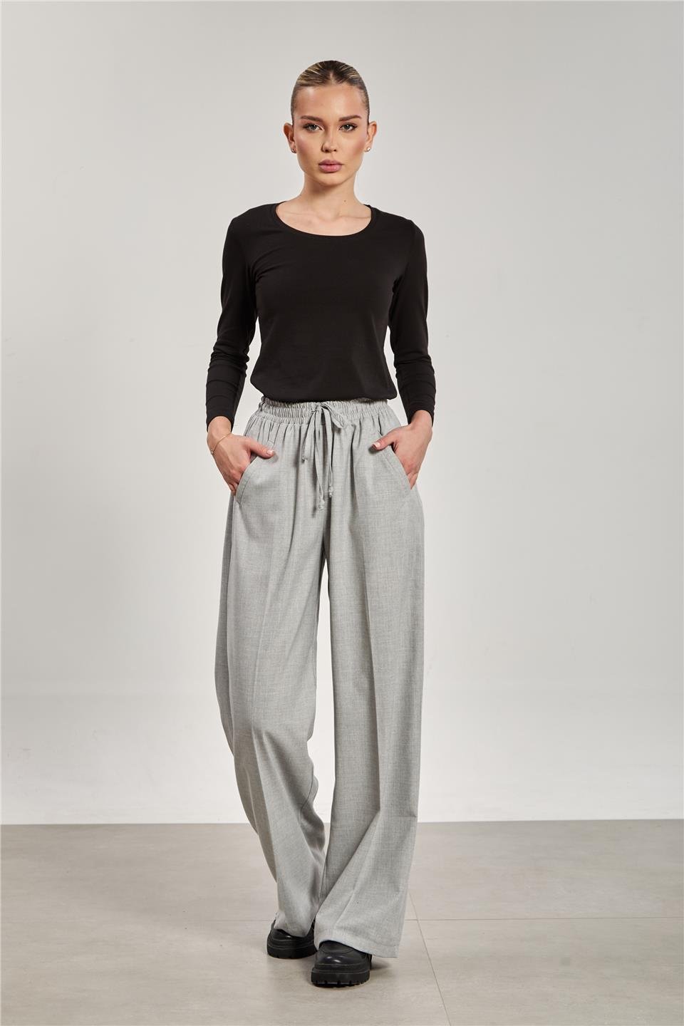 Kadın Bol Paça Palazzo Pantolon - Okul Gri