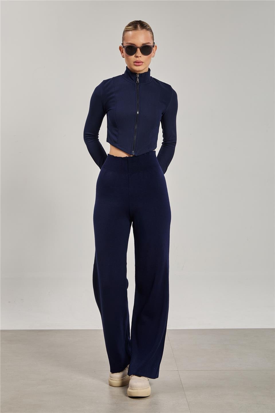 Kadın Bol Paça Triko Pantolon - Lacivert