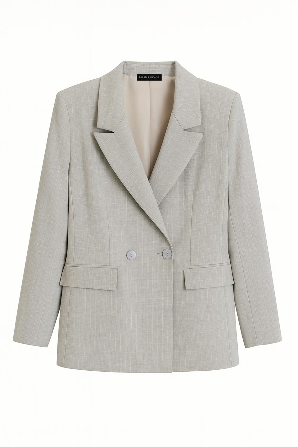 Kadın Cep Kapaklı Çizgili Blazer Ceket - Açık Gri