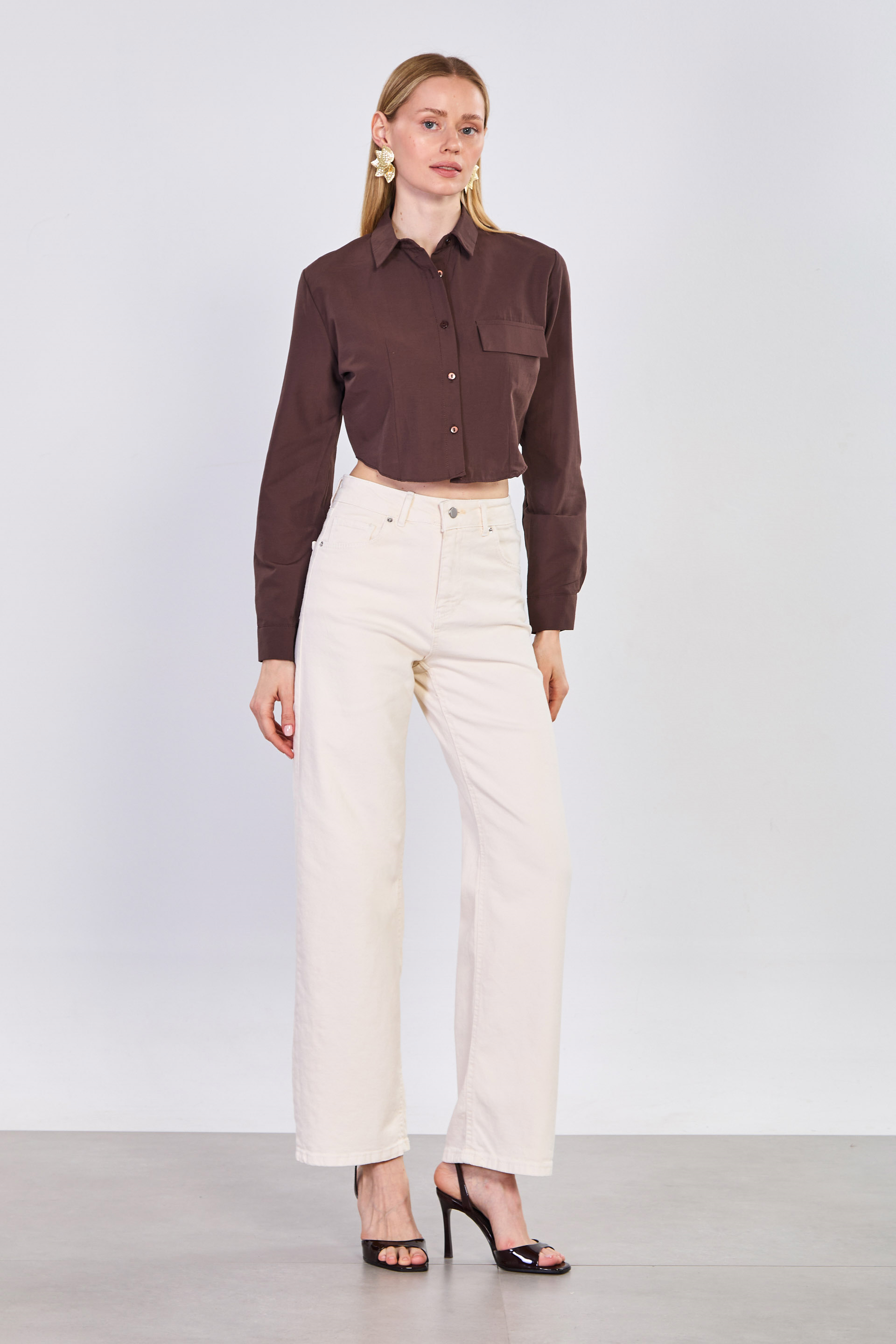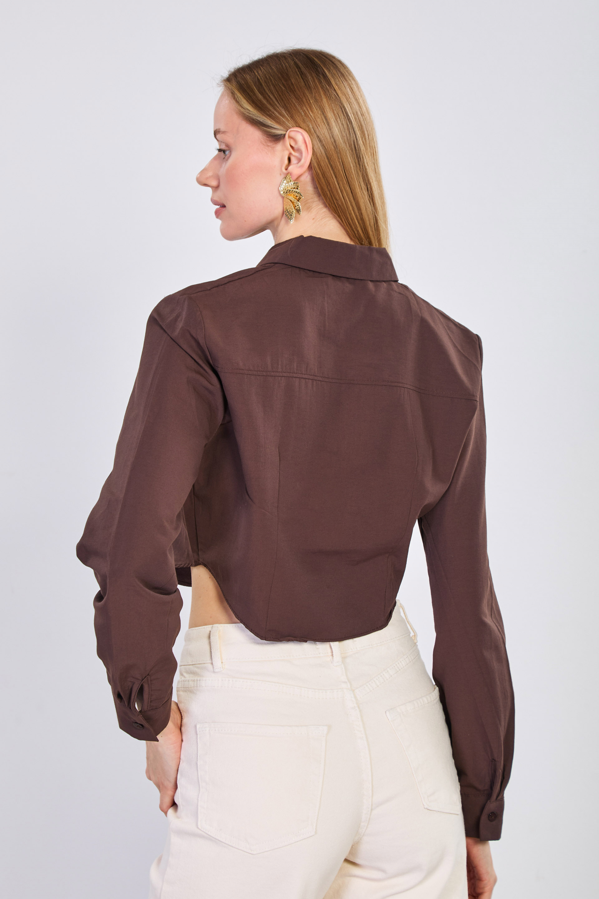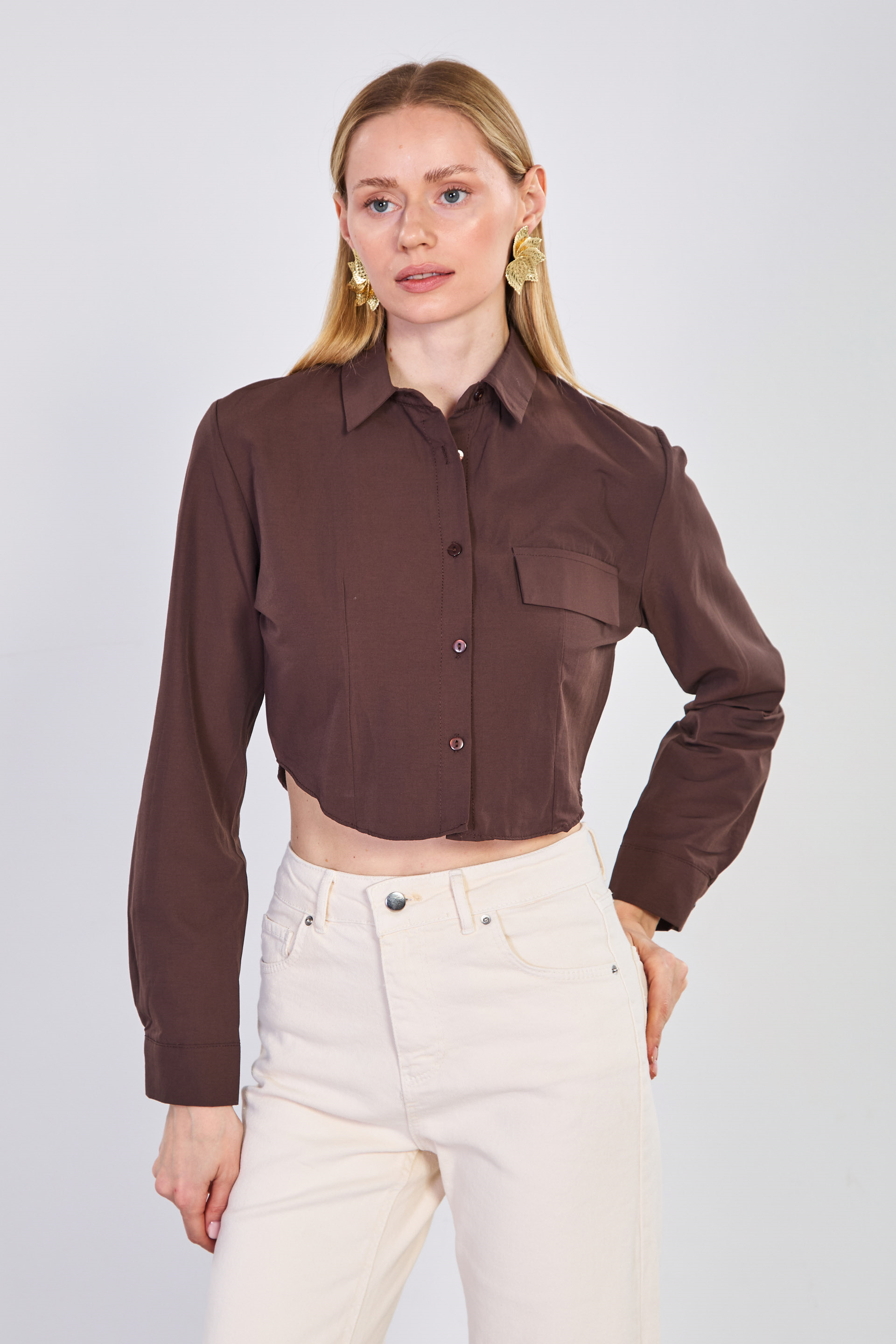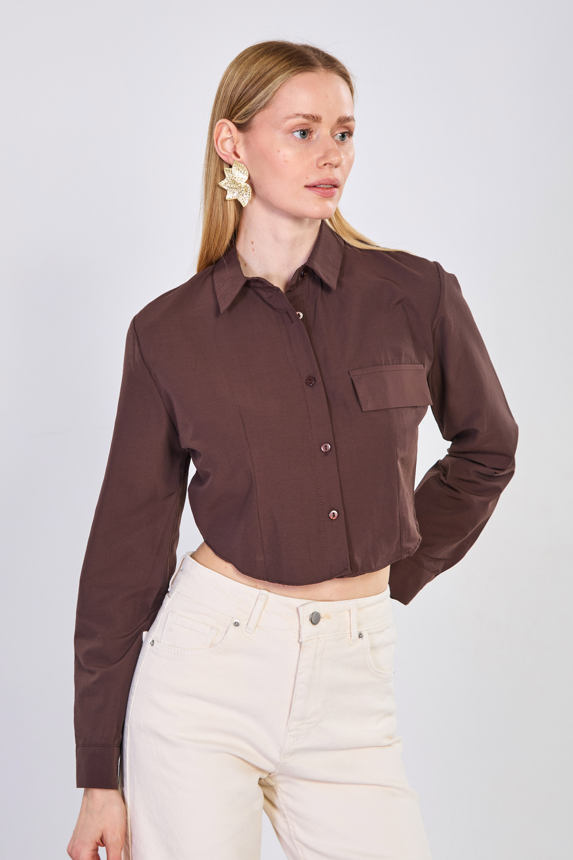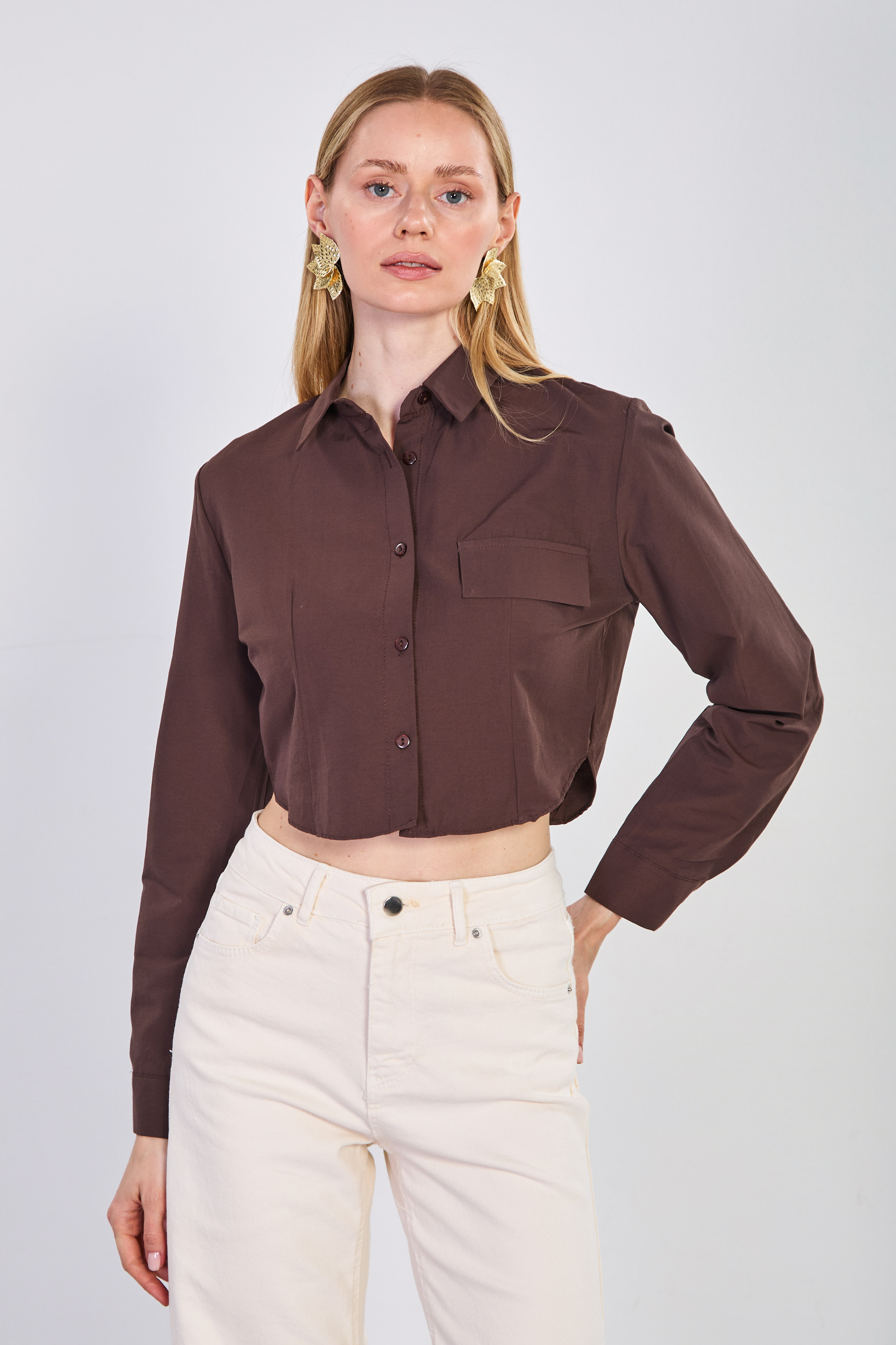Kadın Cep Kapaklı Crop Gömlek - Acı Kahve