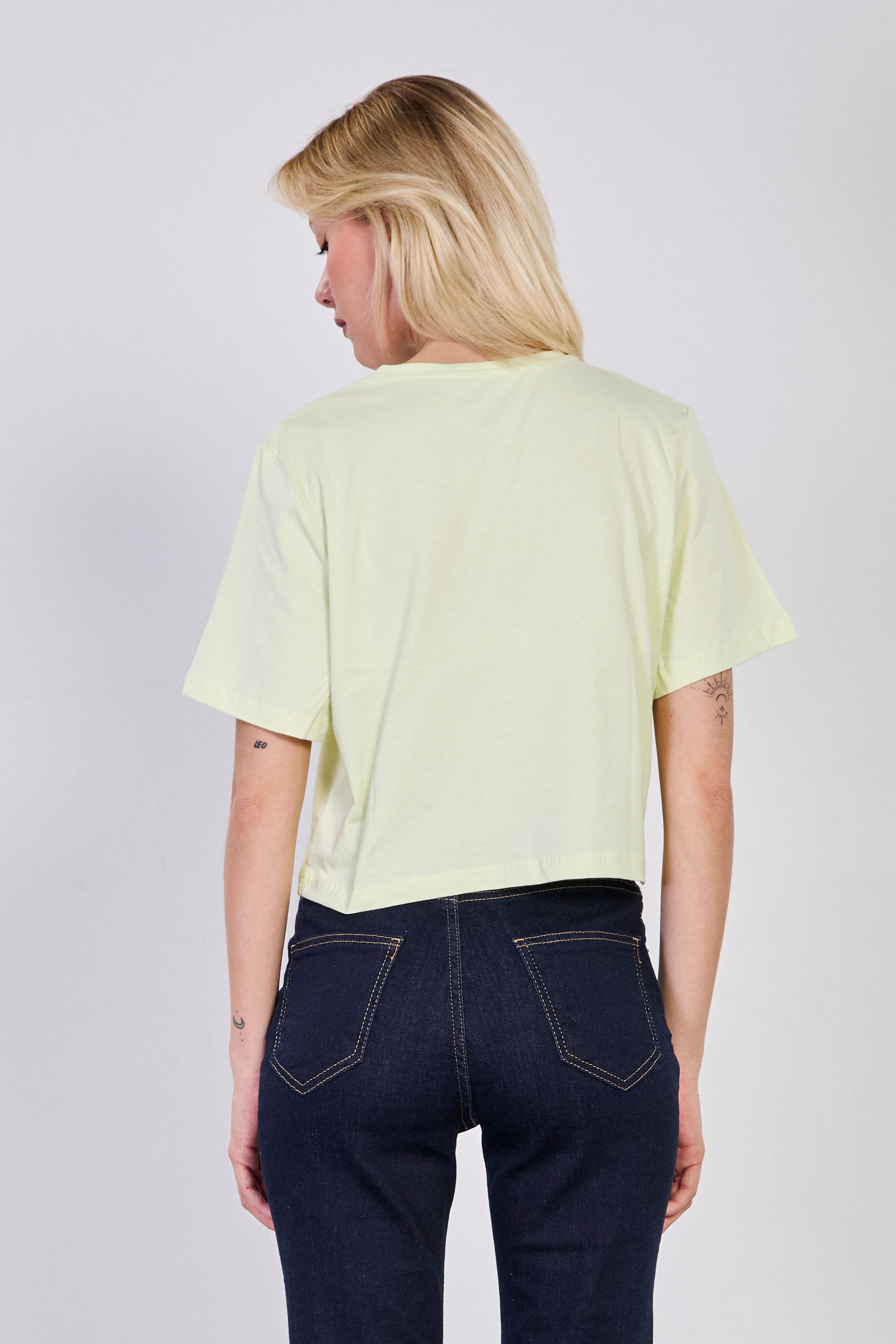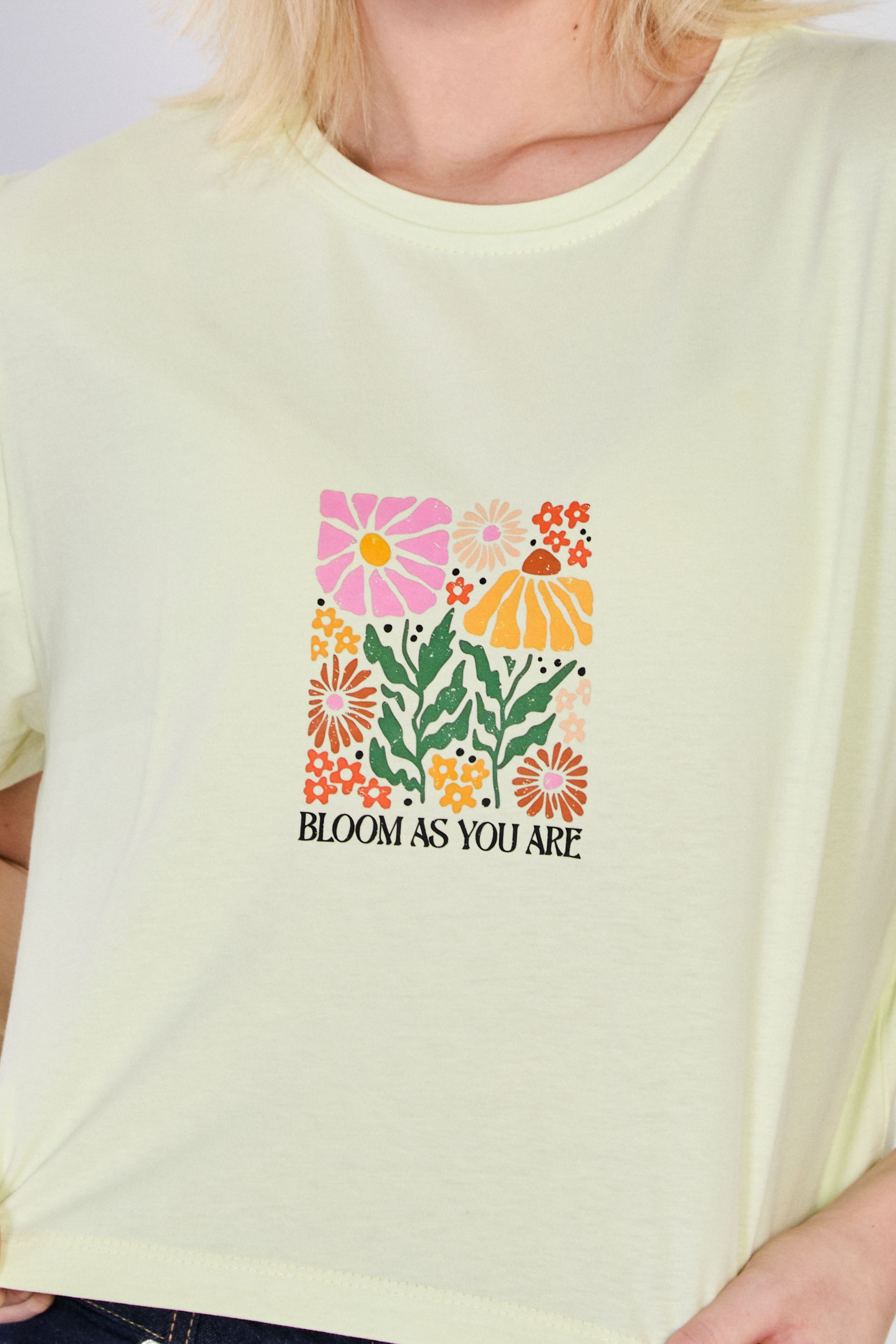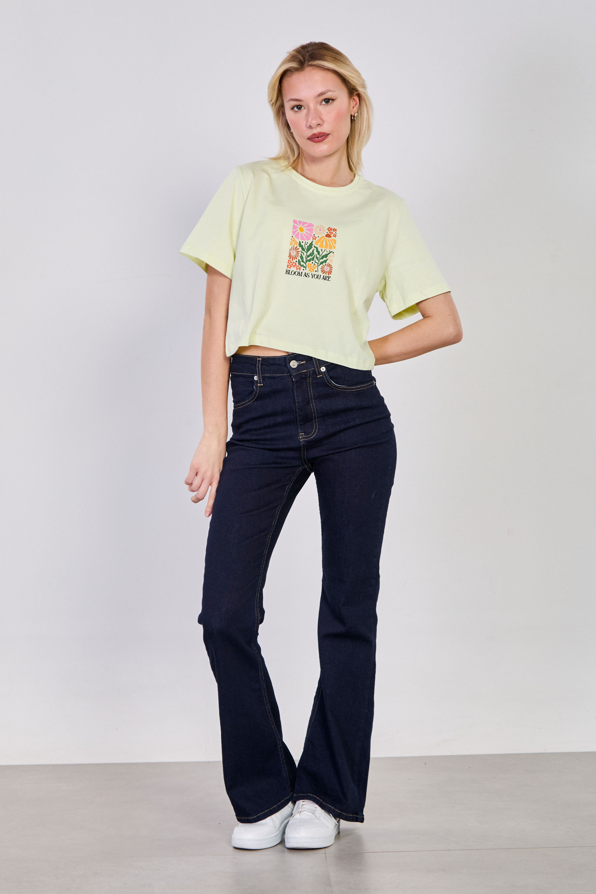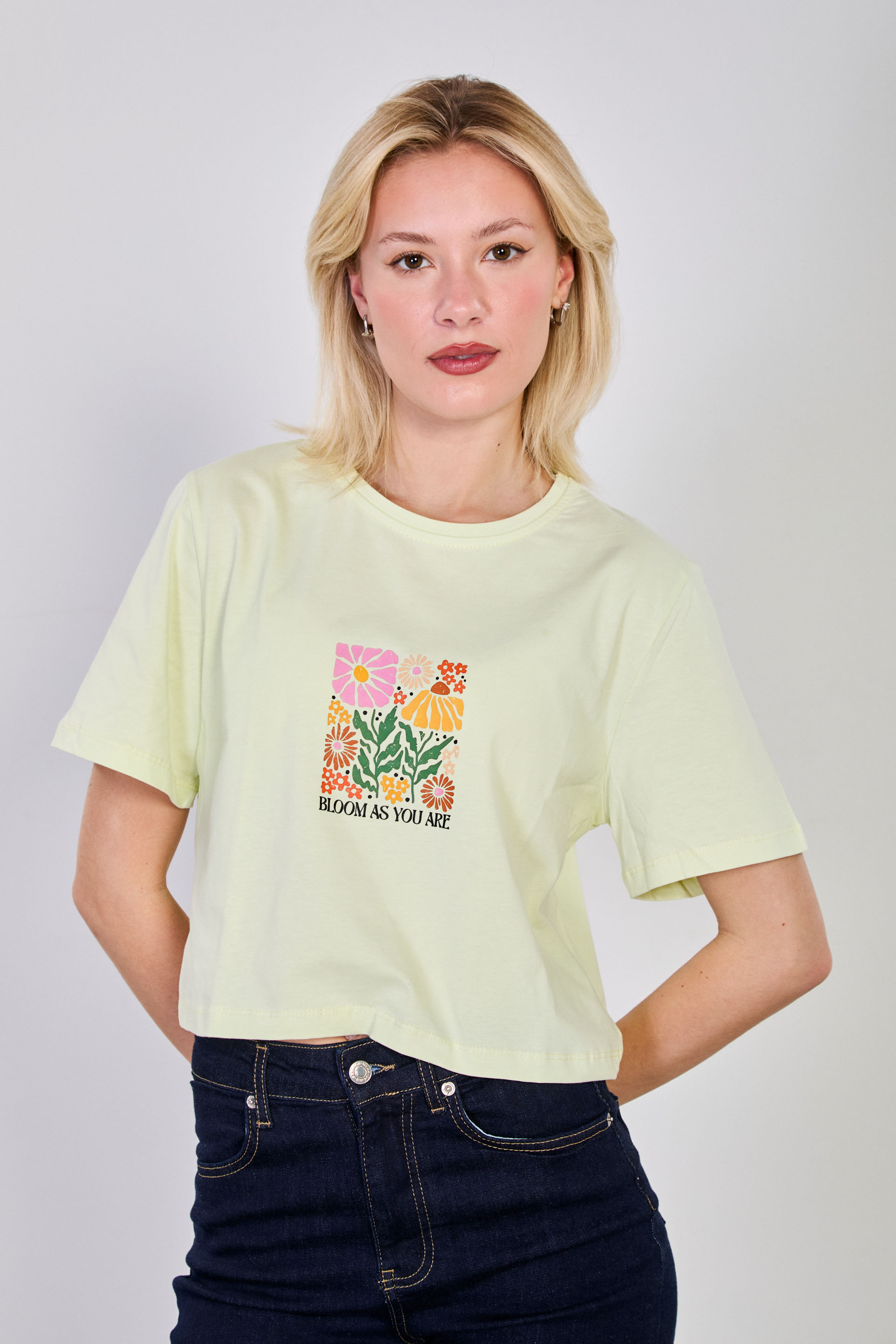 Kadın Çiçek Baskılı Crop T-Shirt - Sarı