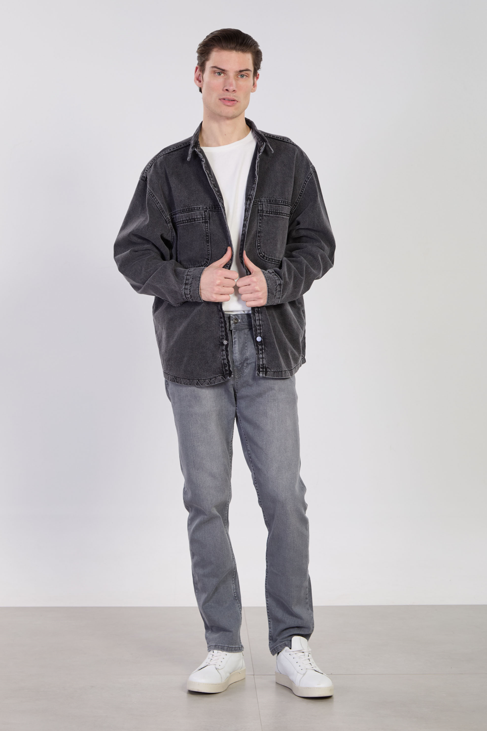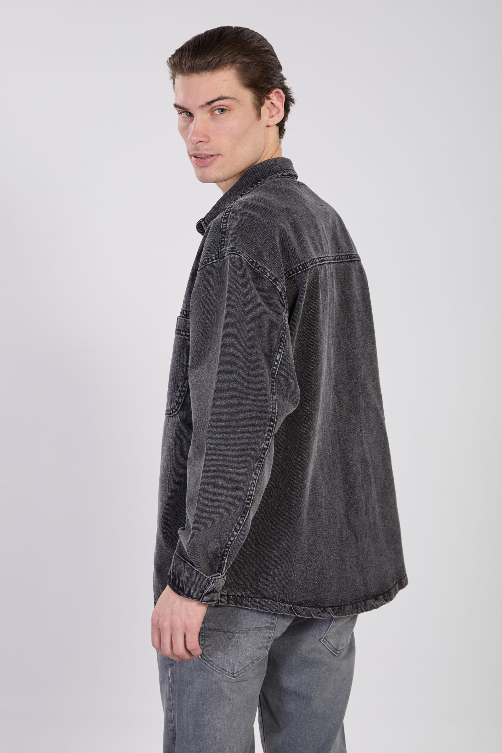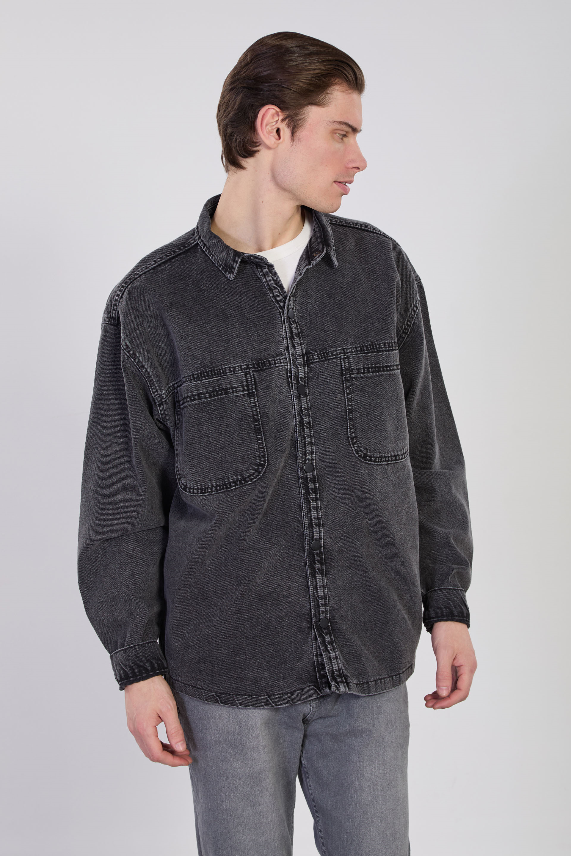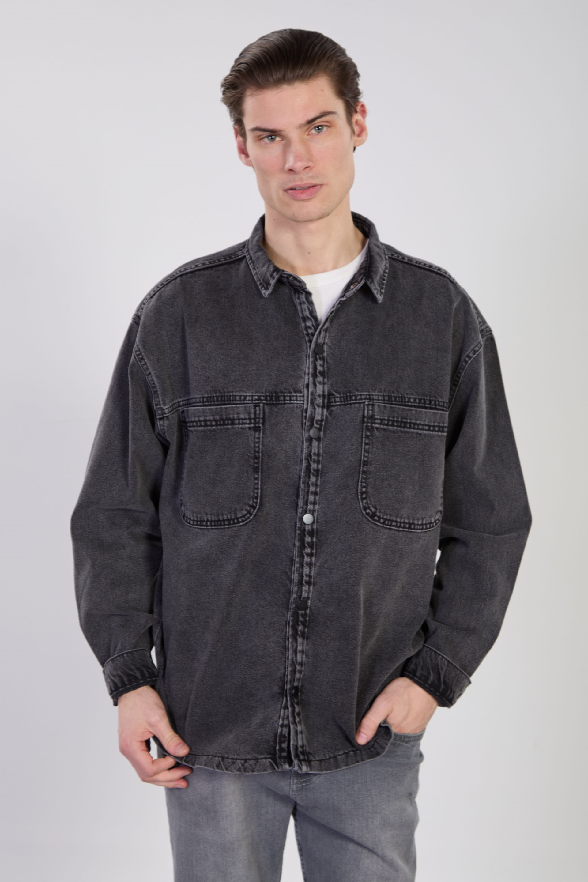 Erkek Çift Cep Çıtçıtlı Denim Ceket - Siyah Kar Y.