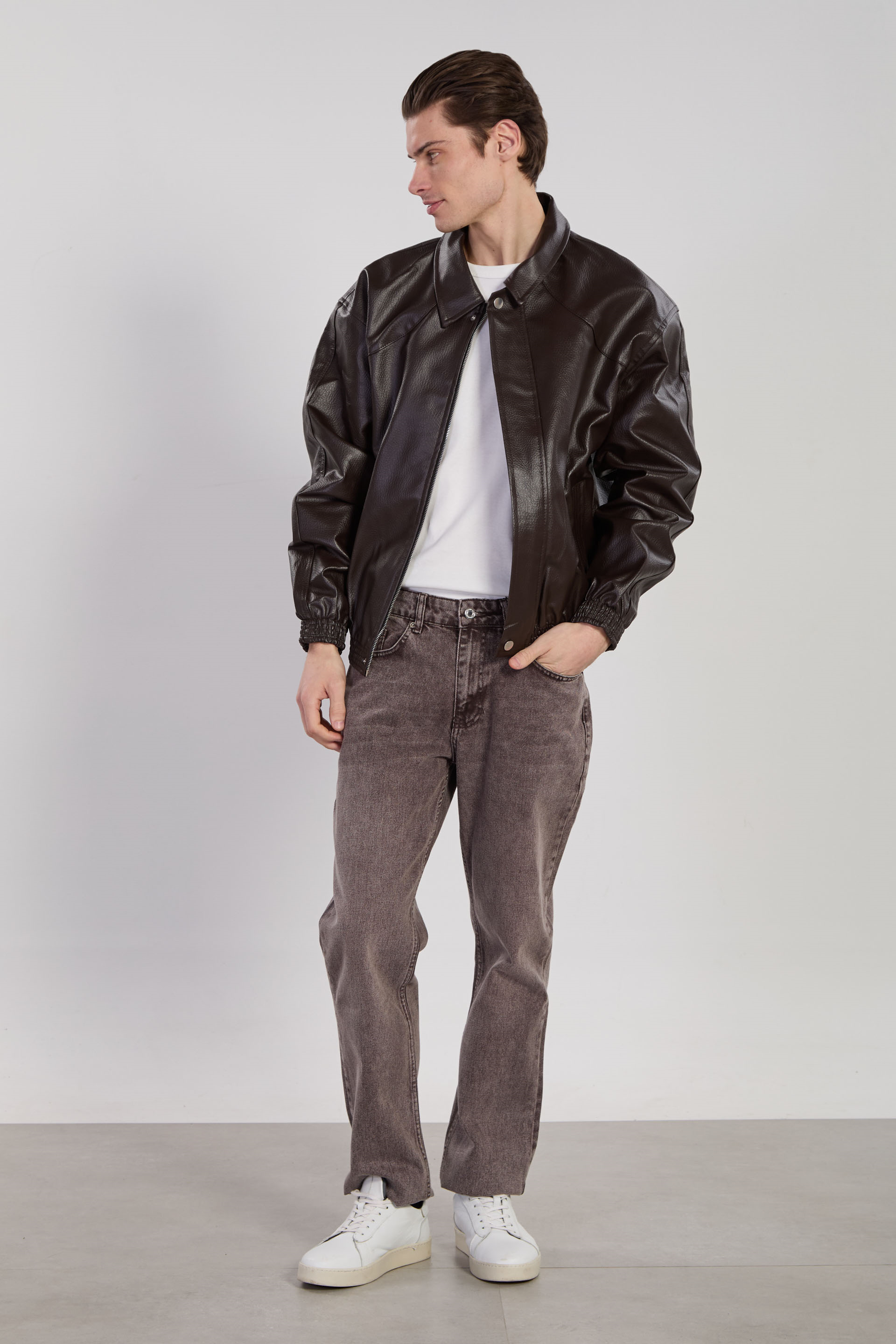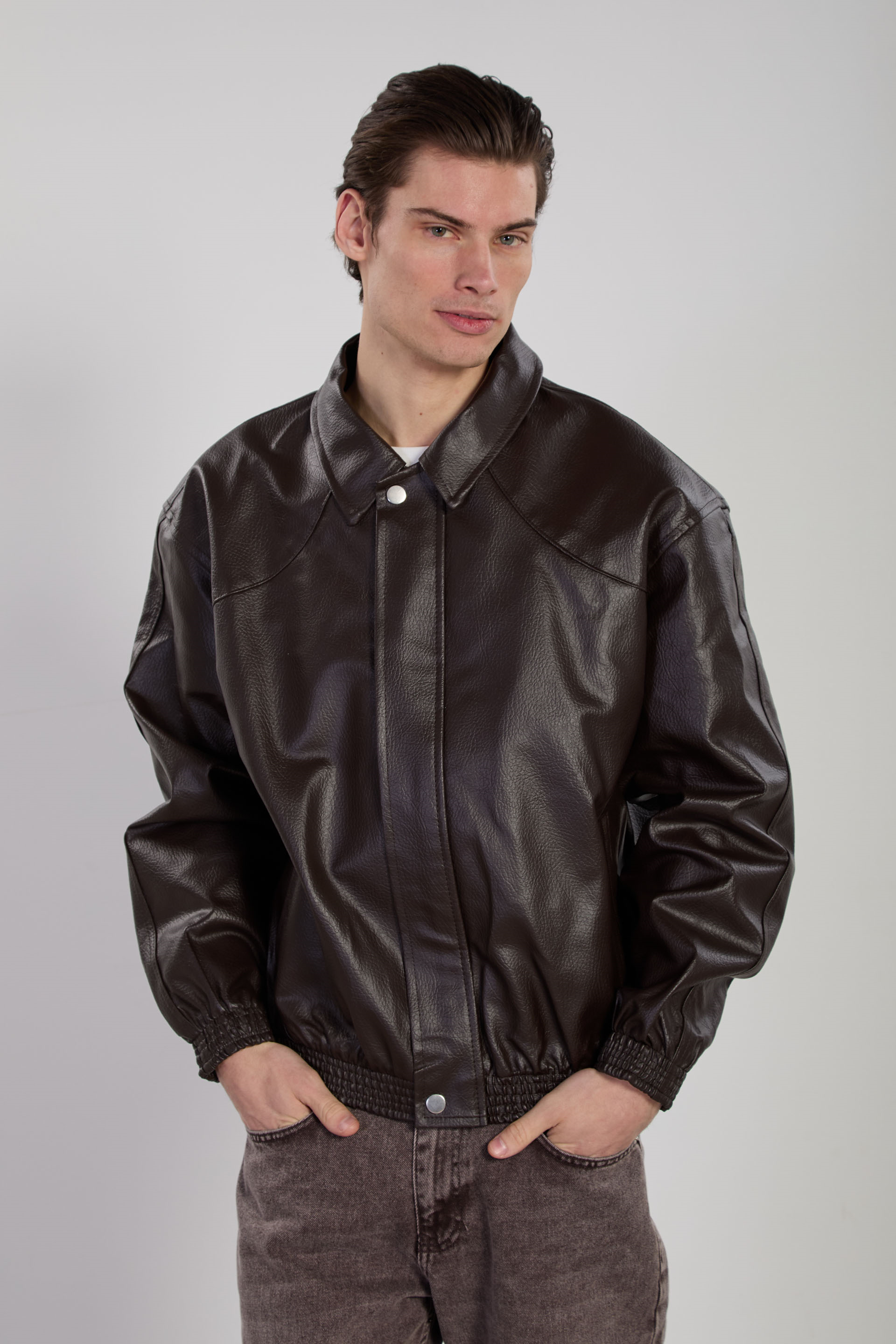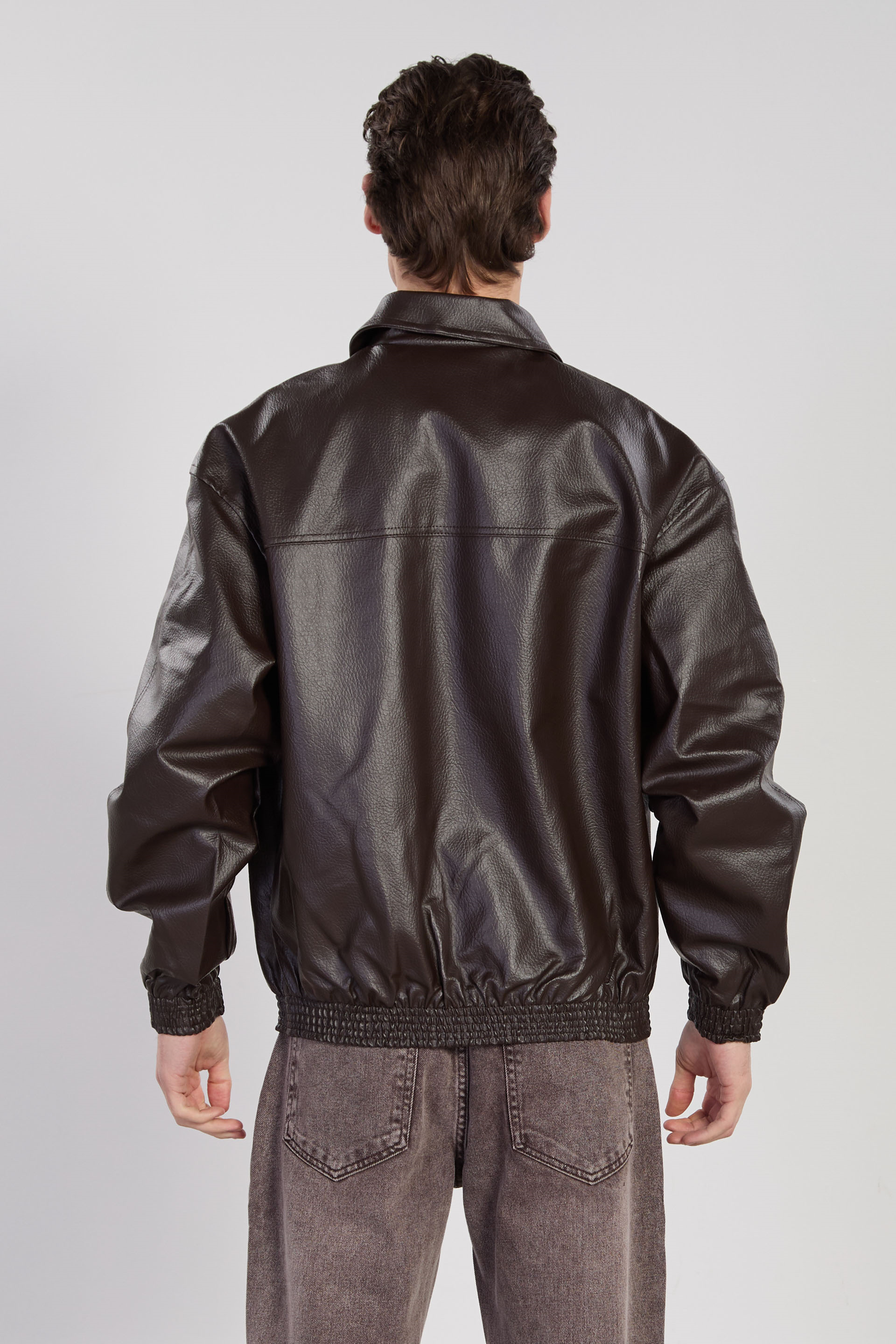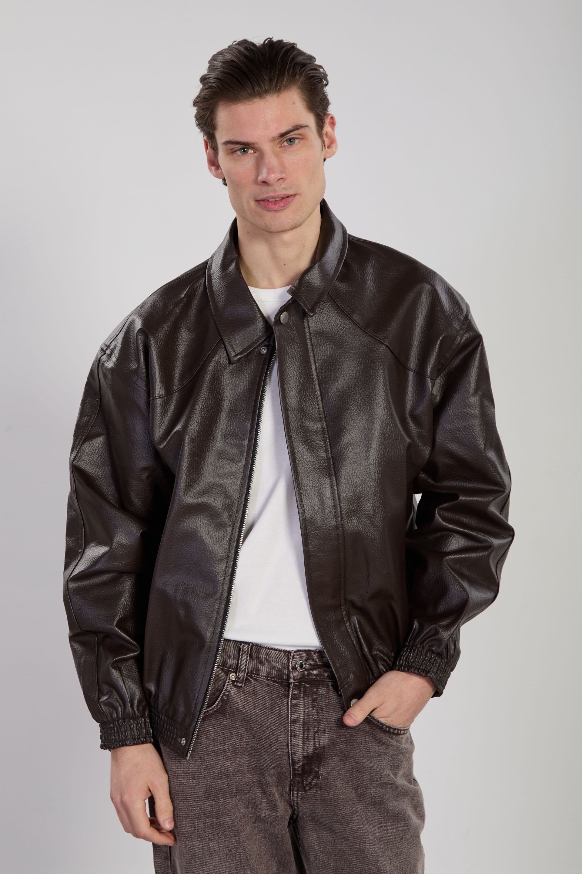 Erkek Çift Cep Detaylı Bomber Deri Mont - Acı Kahve