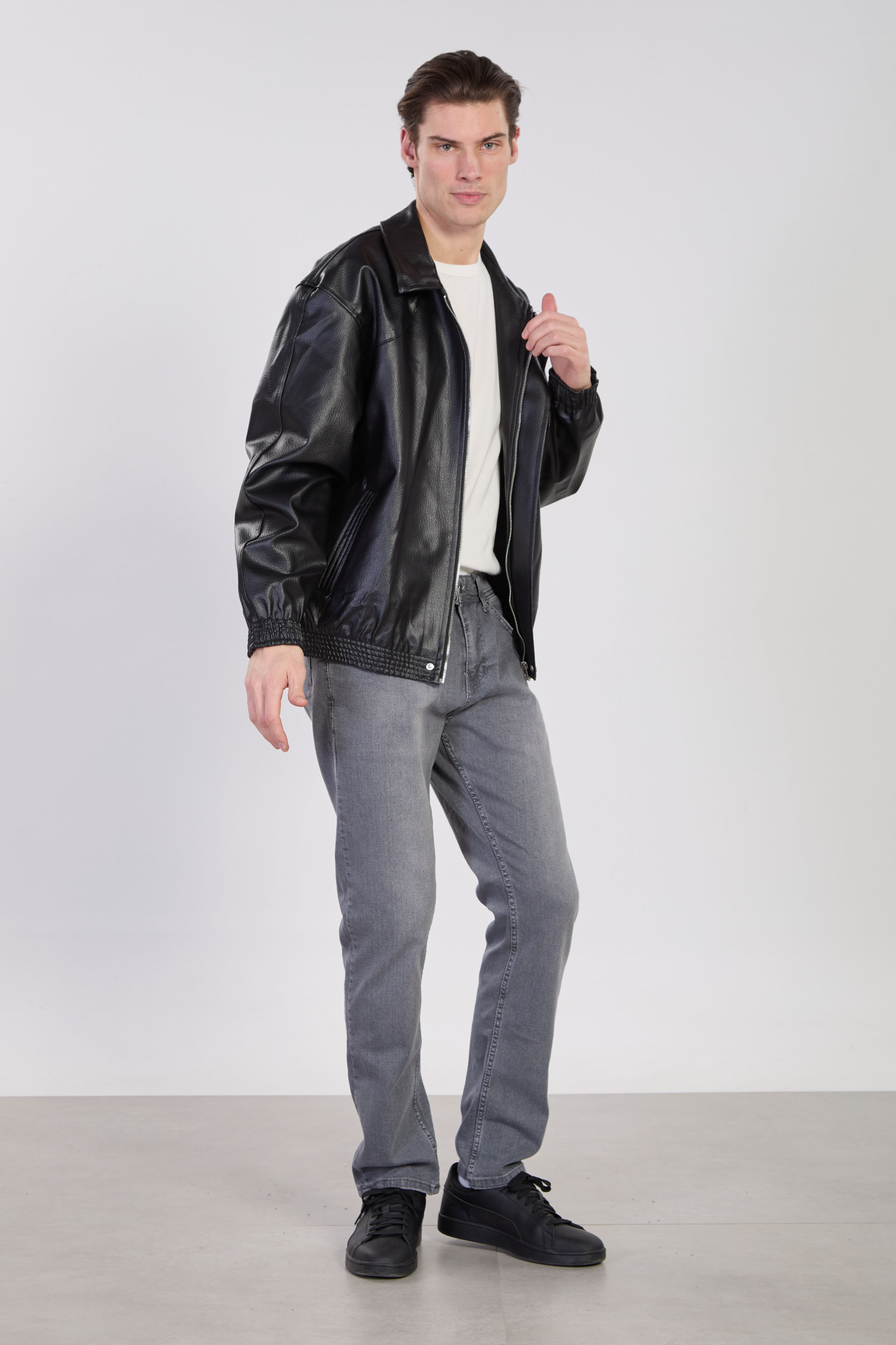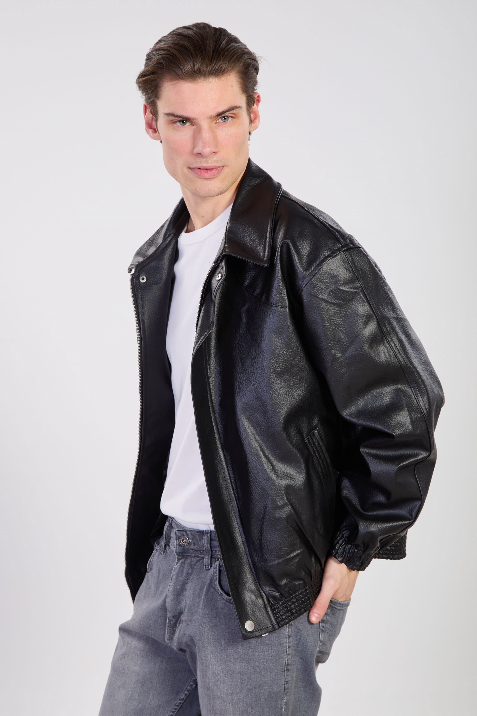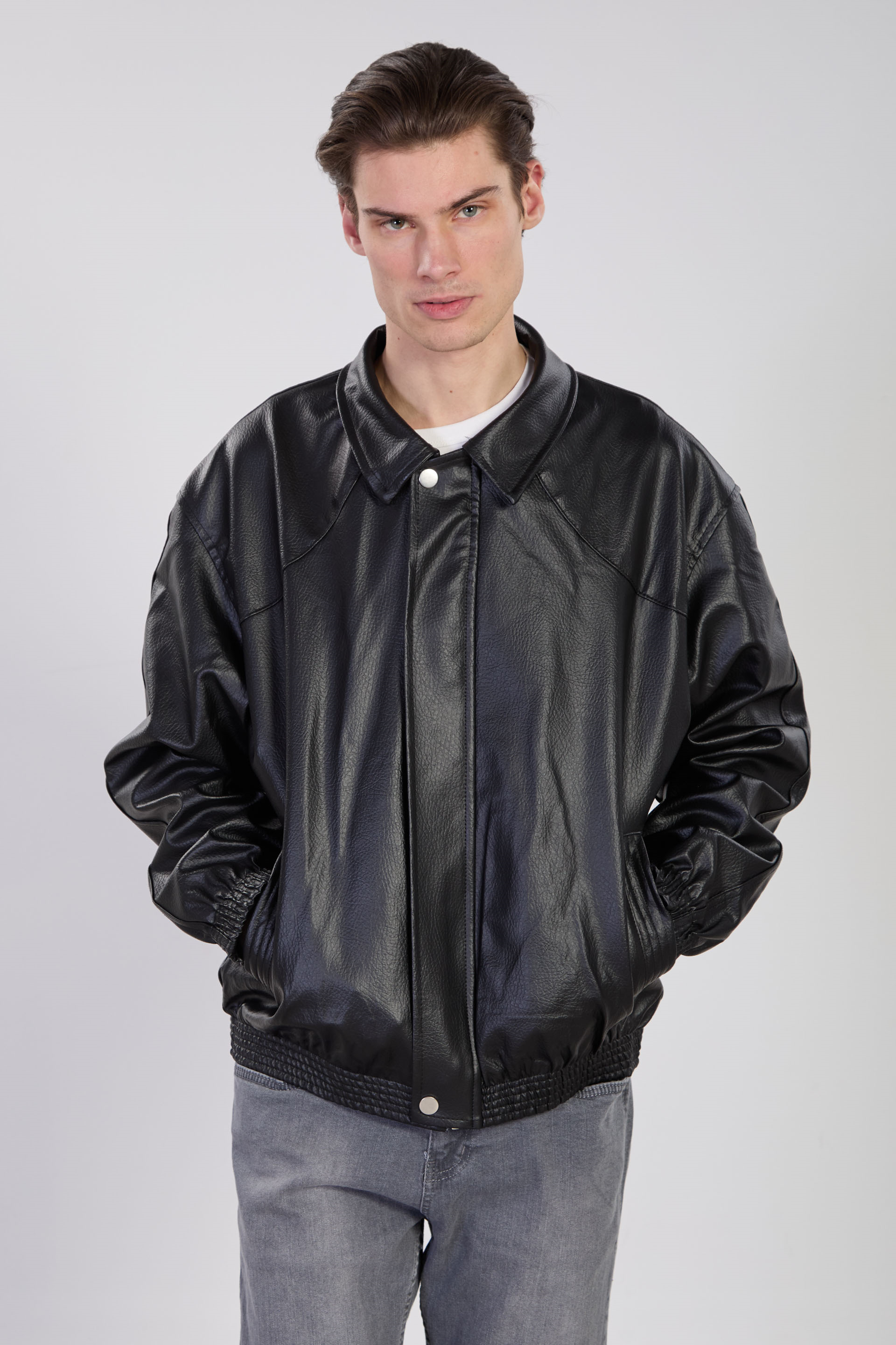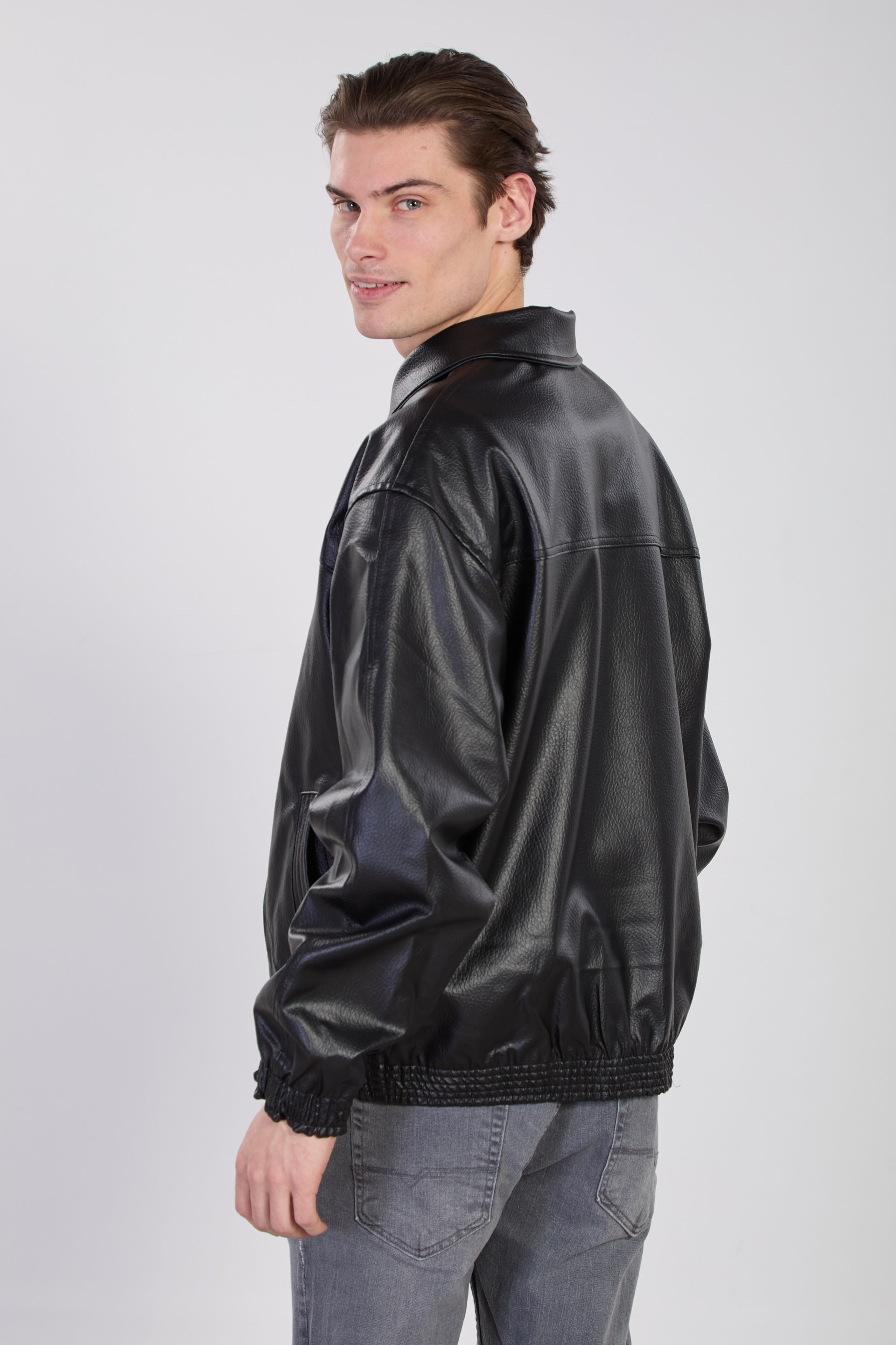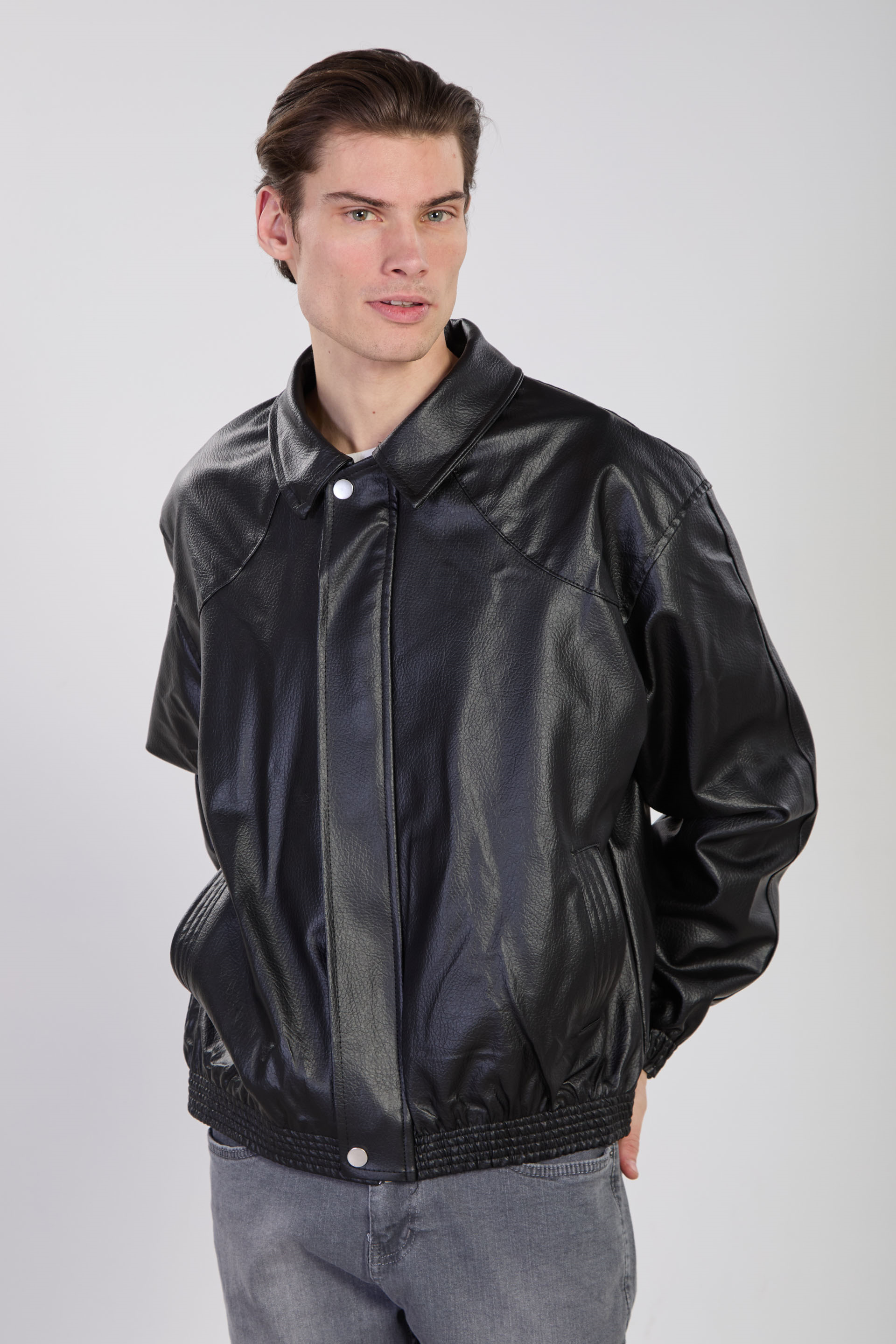Erkek Çift Cep Detaylı Bomber Deri Mont - Siyah