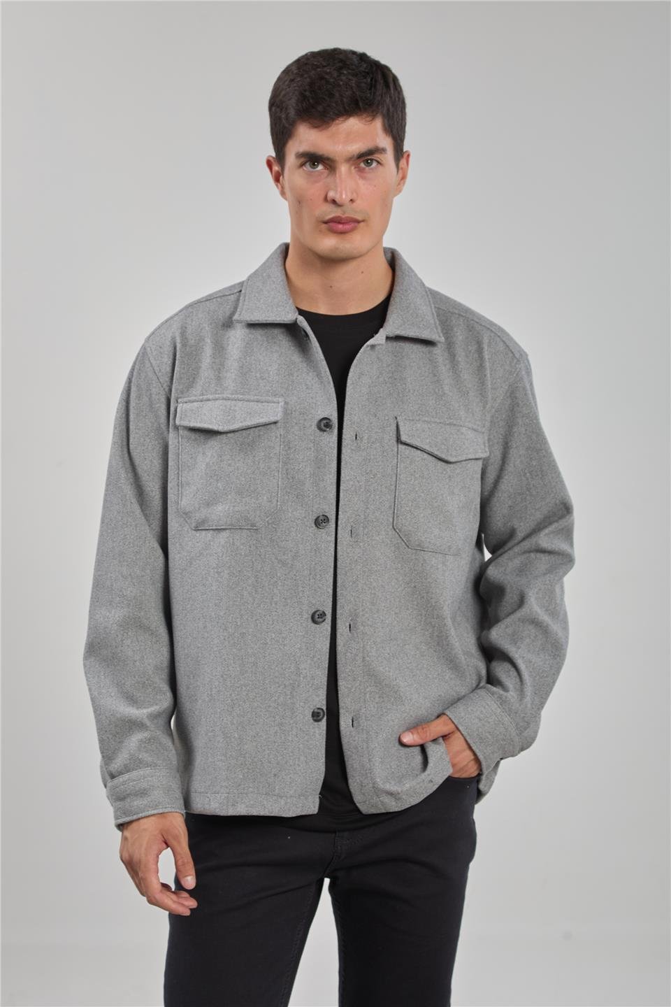 Erkek Çift Cep Kaşe Ceket - Gri Melanj