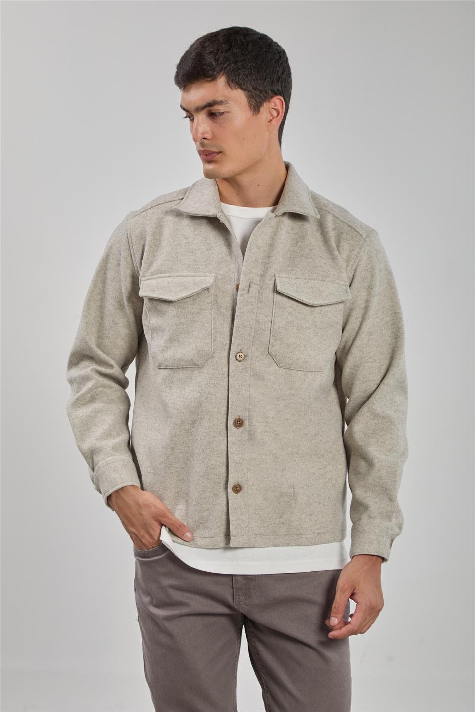 Erkek Çift Cep Kaşe Ceket - Taş Rengi