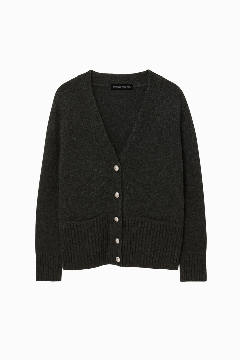 Kadın Çift Cepli Düğmeli Triko Hırka - Antrasit