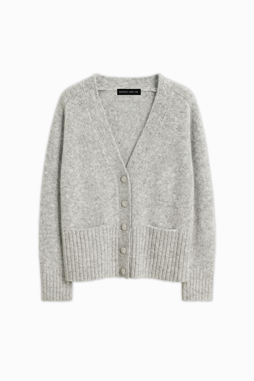 Kadın Çift Cepli Düğmeli Triko Hırka - Gri