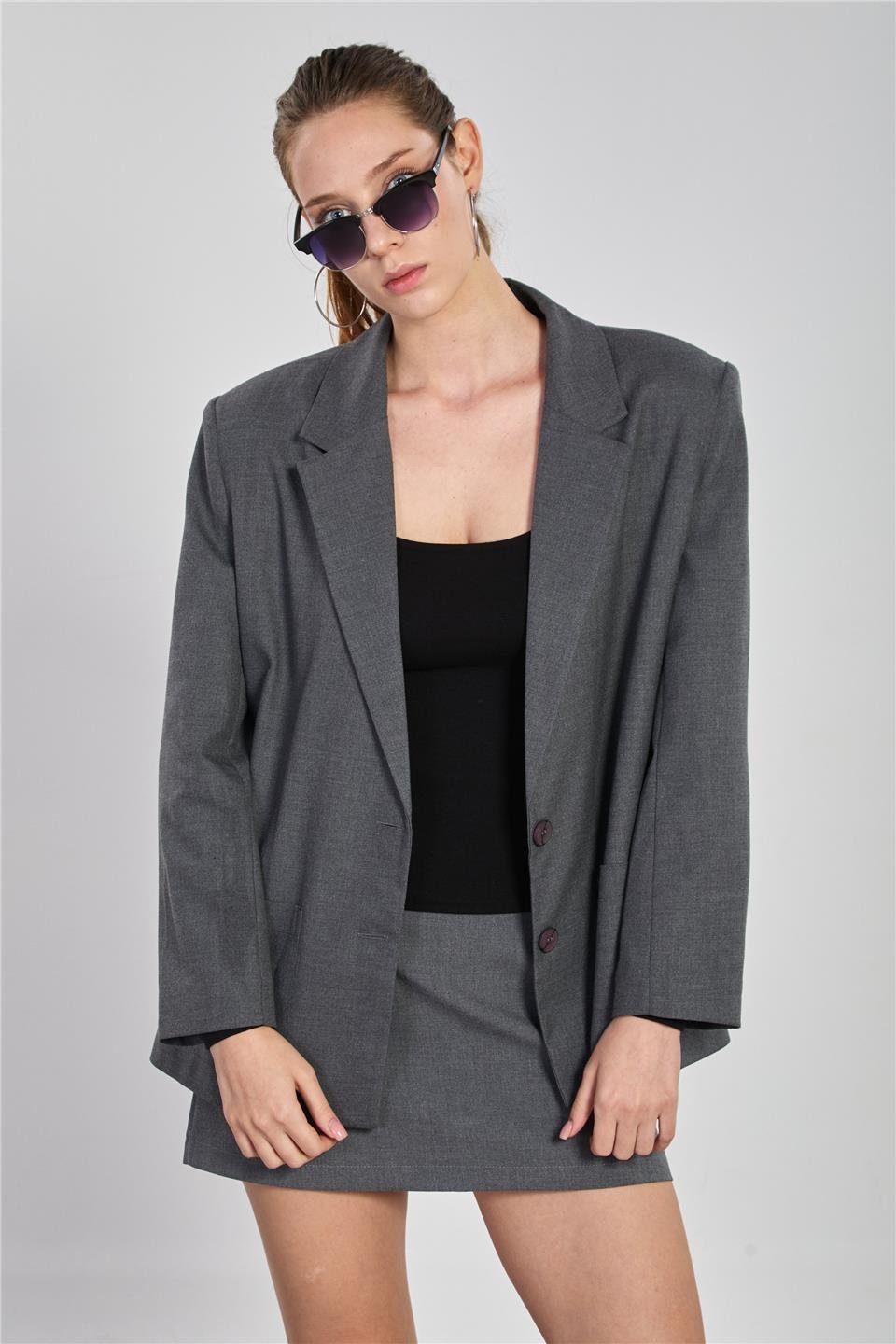 Kadın Çift Düğmeli Cepli Blazer Ceket - Antrasit