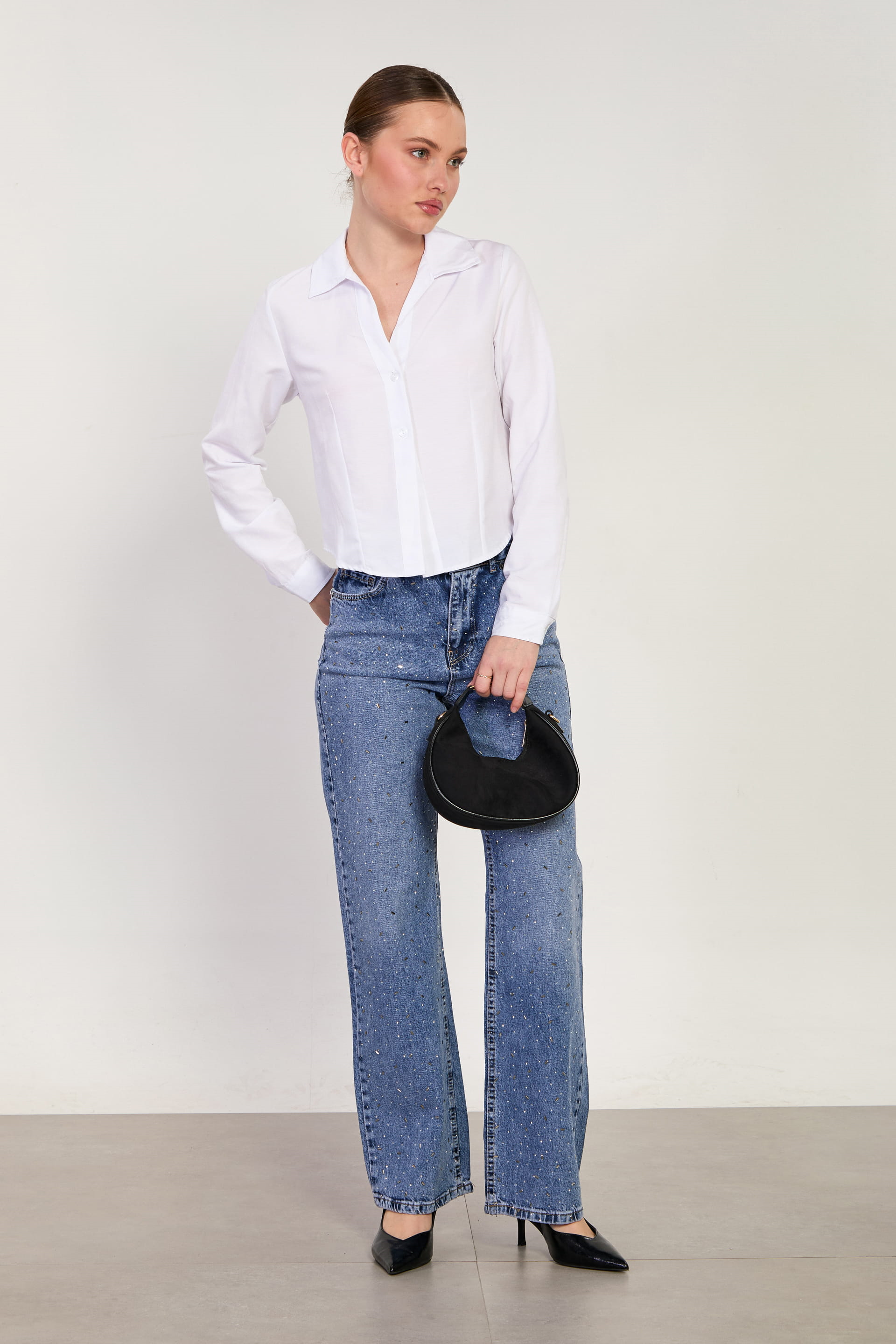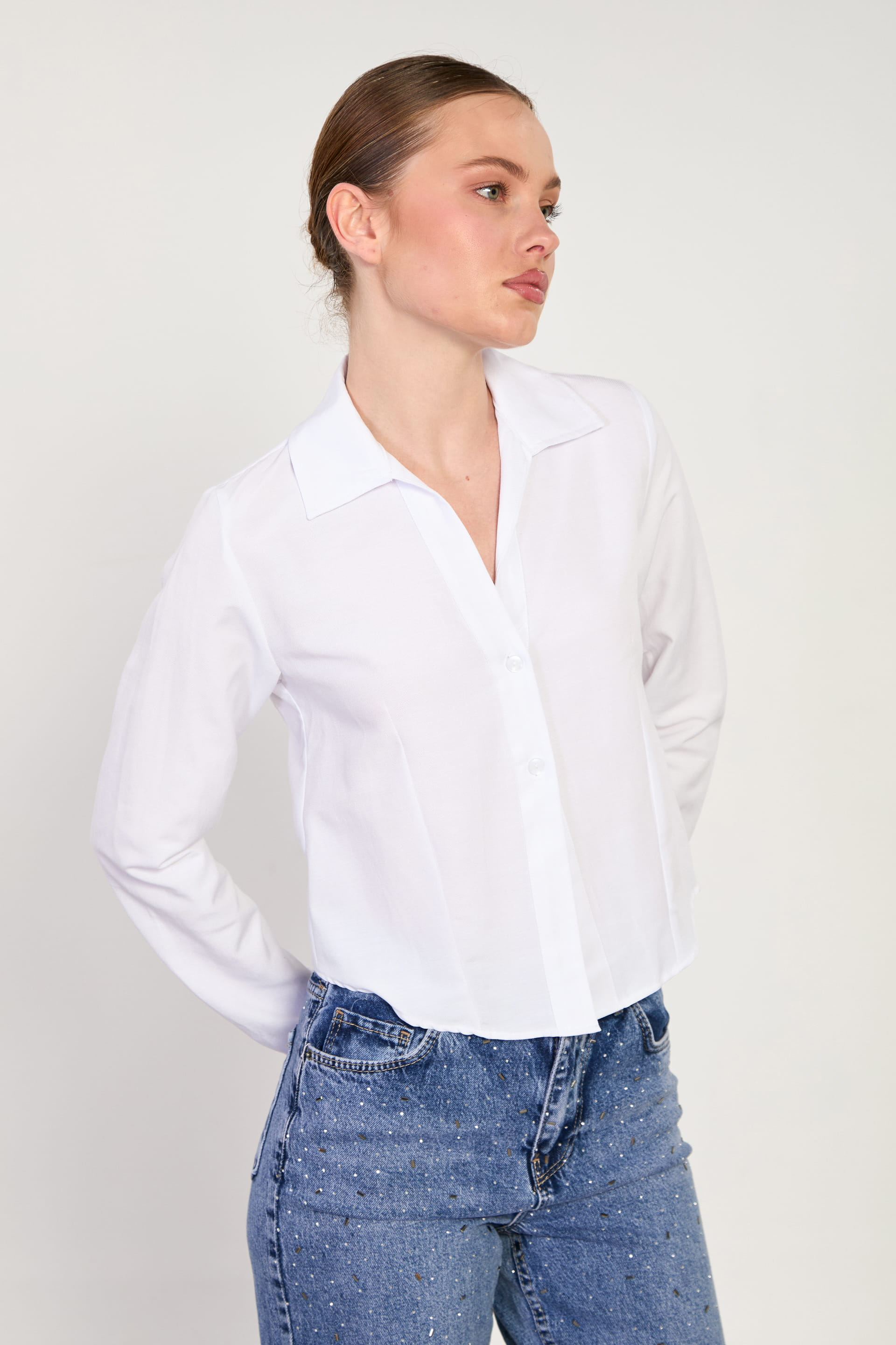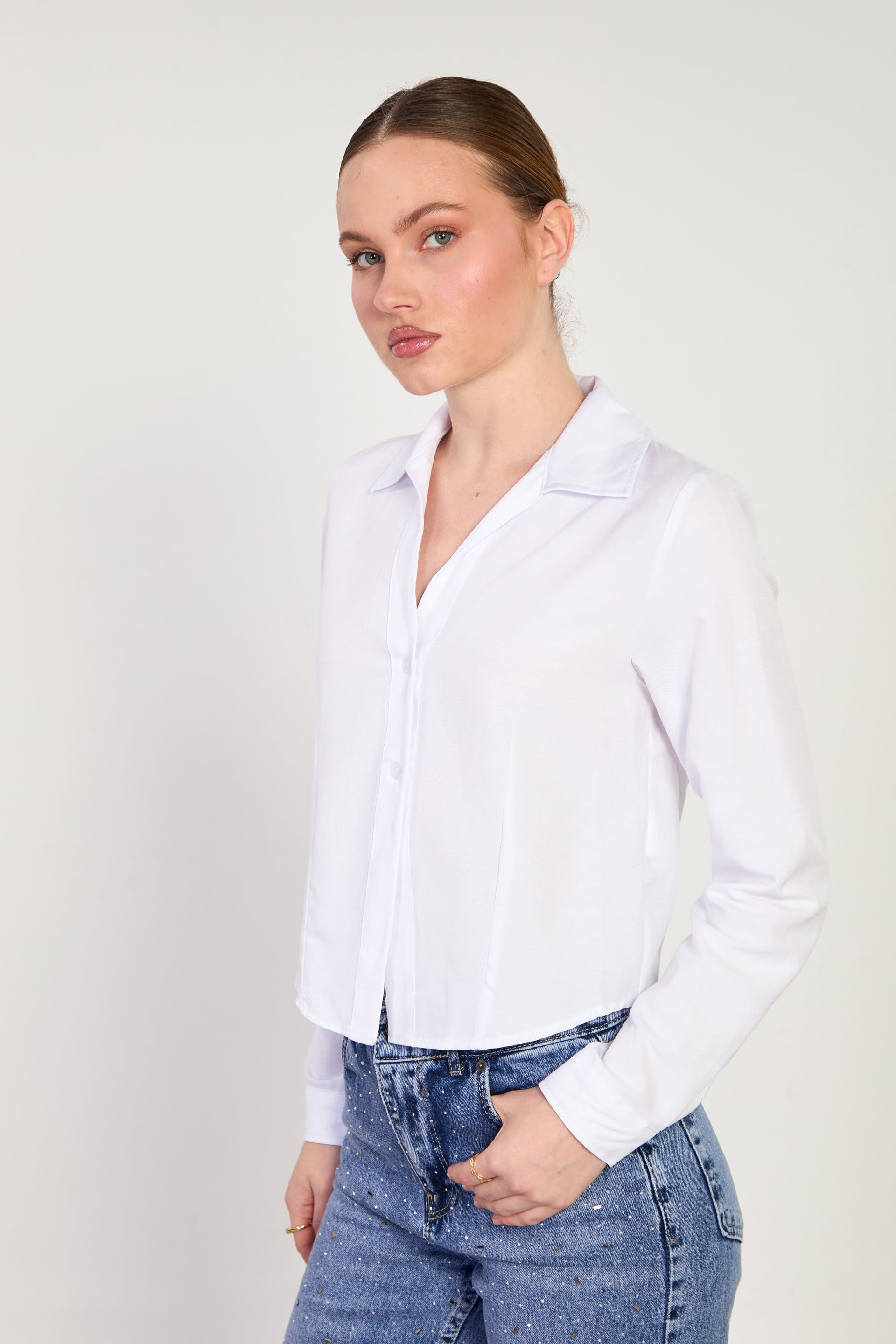 Kadın Çift Düğmeli Oxford Gömlek - Beyaz