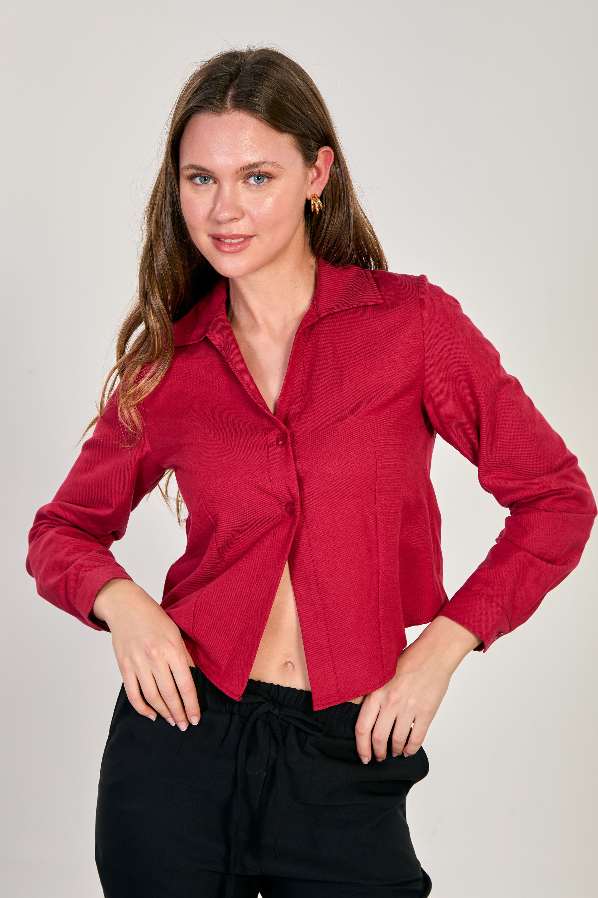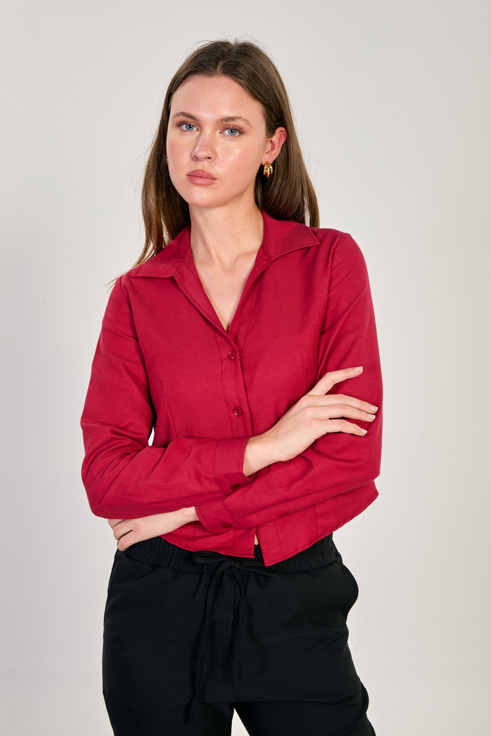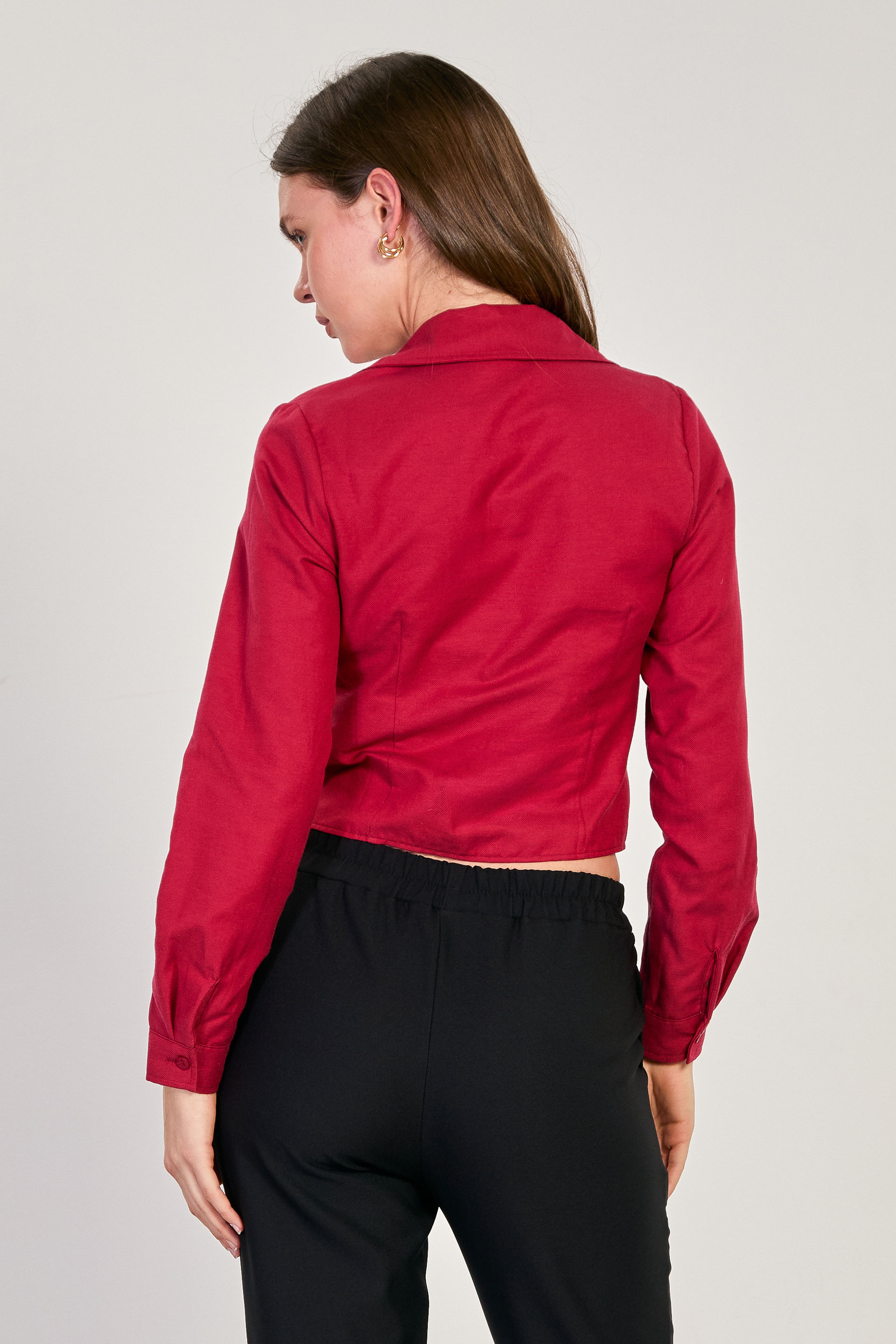 Kadın Çift Düğmeli Oxford Gömlek - Bordo