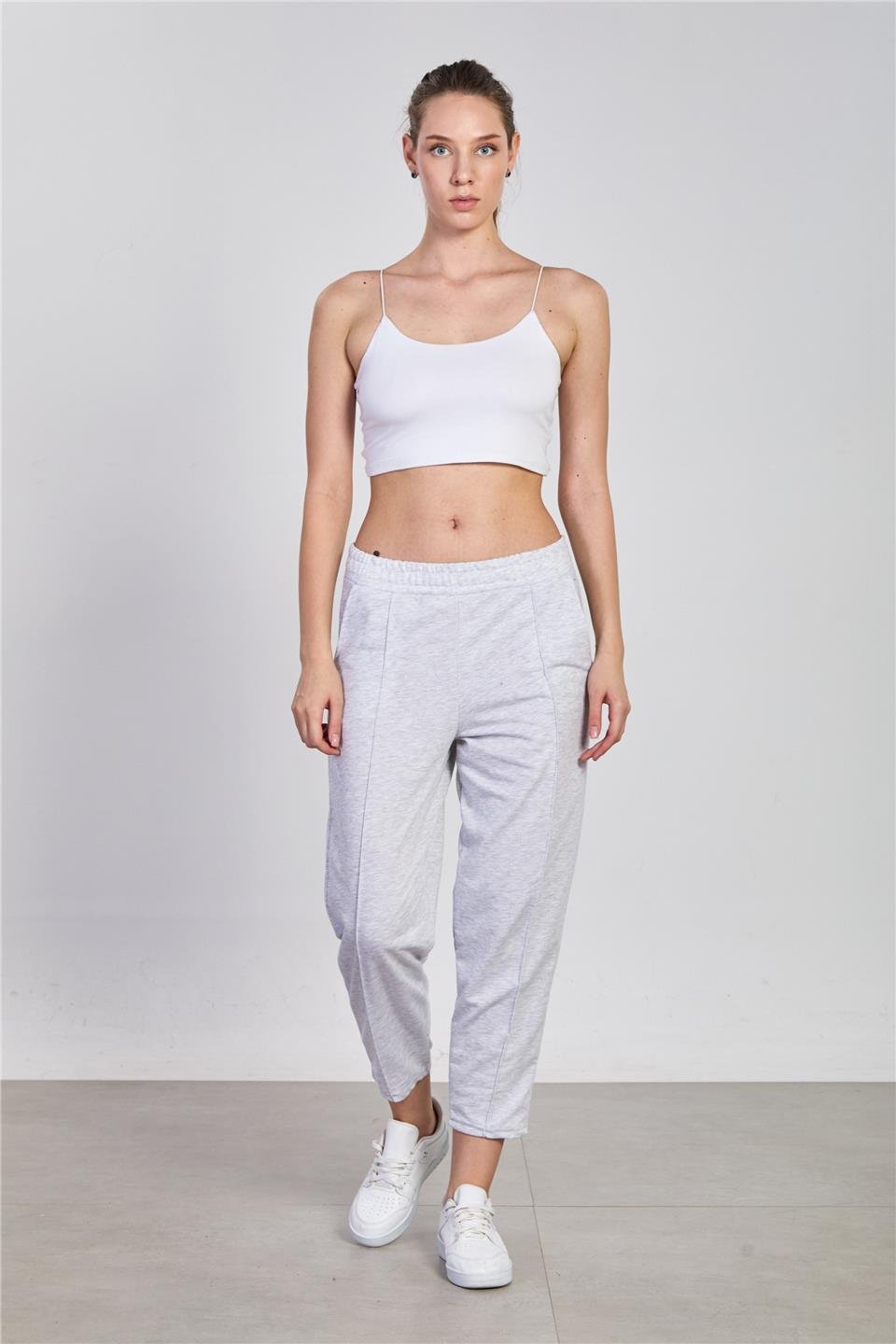 Kadın Çimalı Havuç Eşofman Altı - Kar Melanj