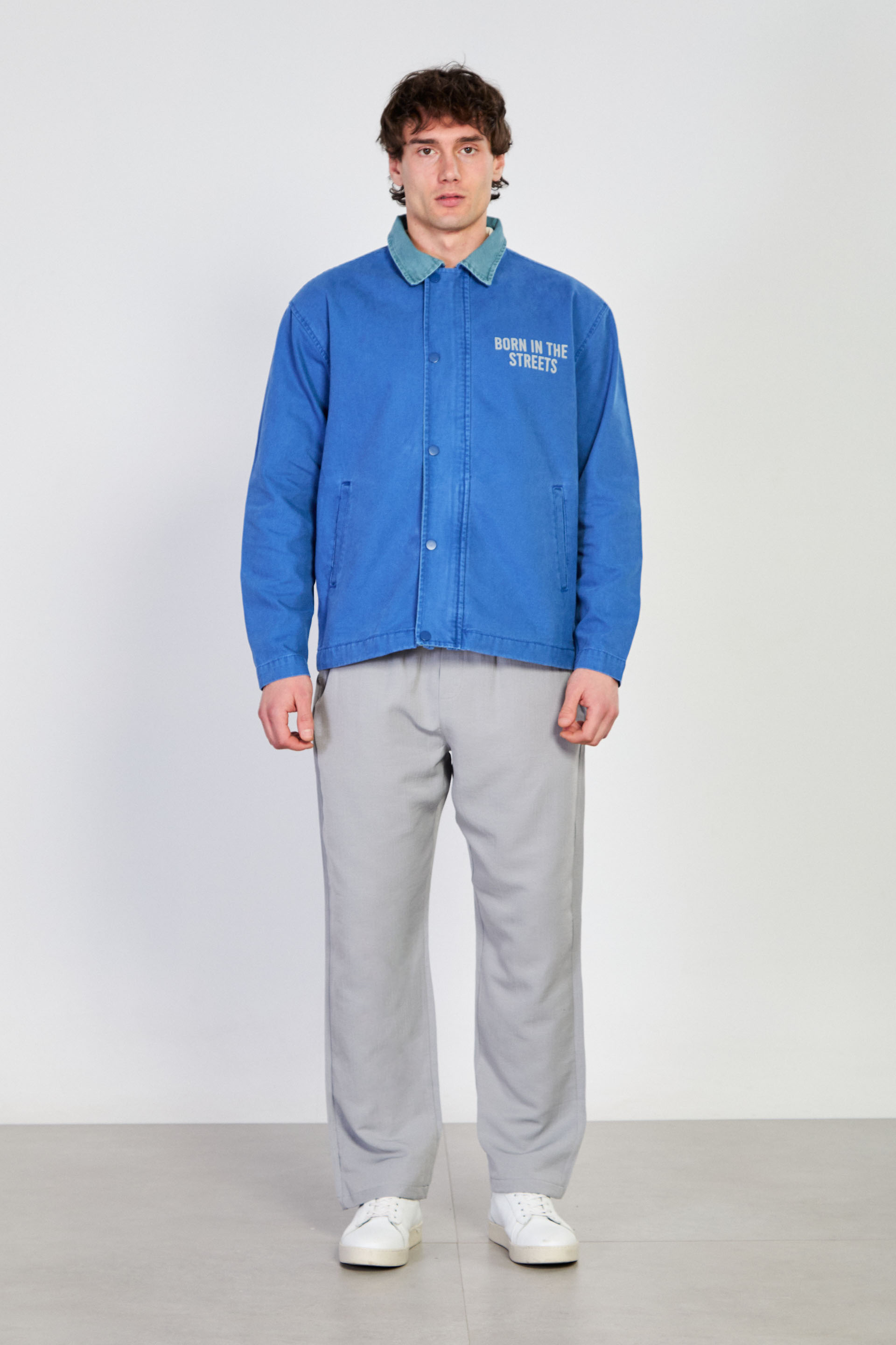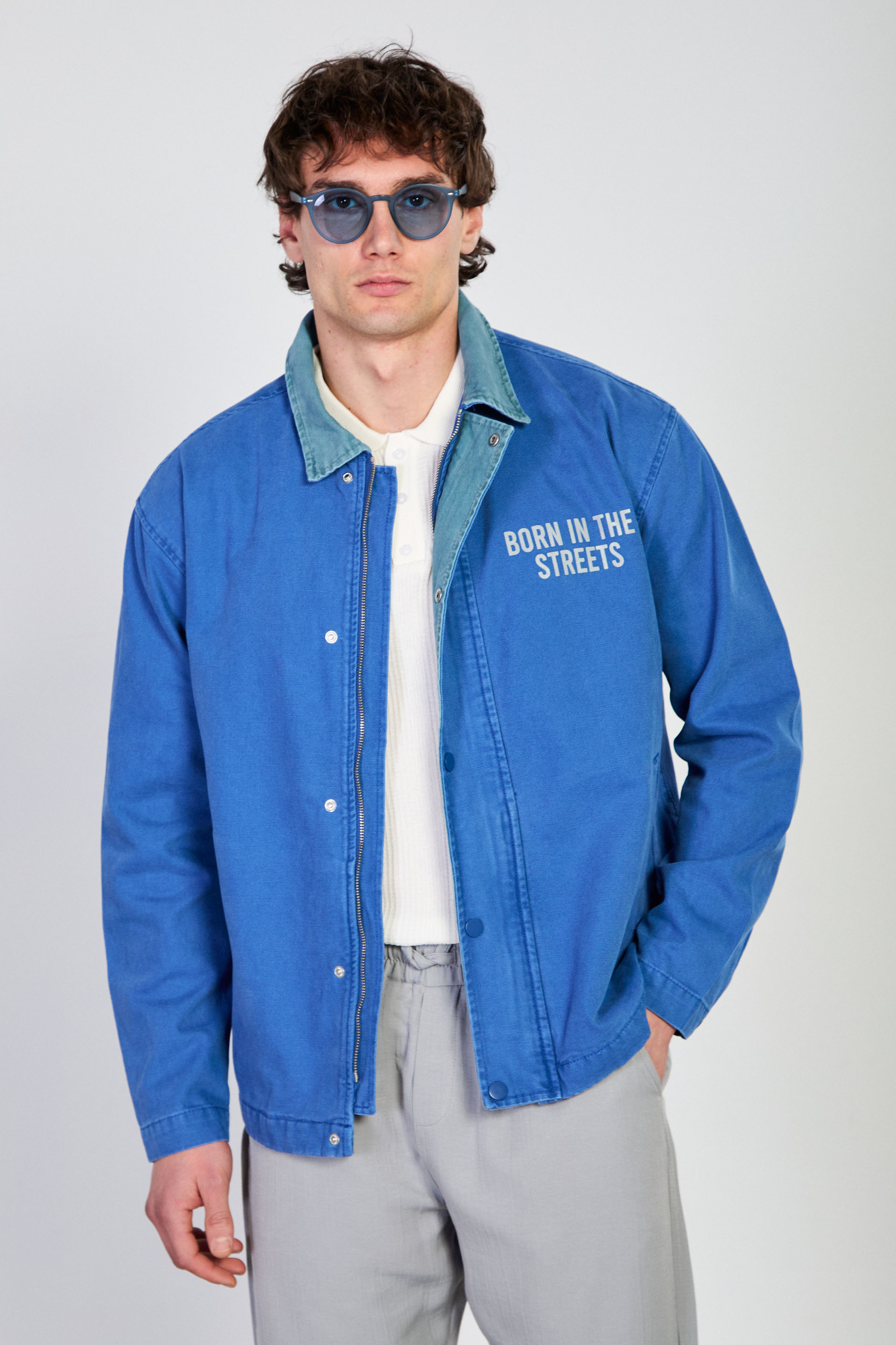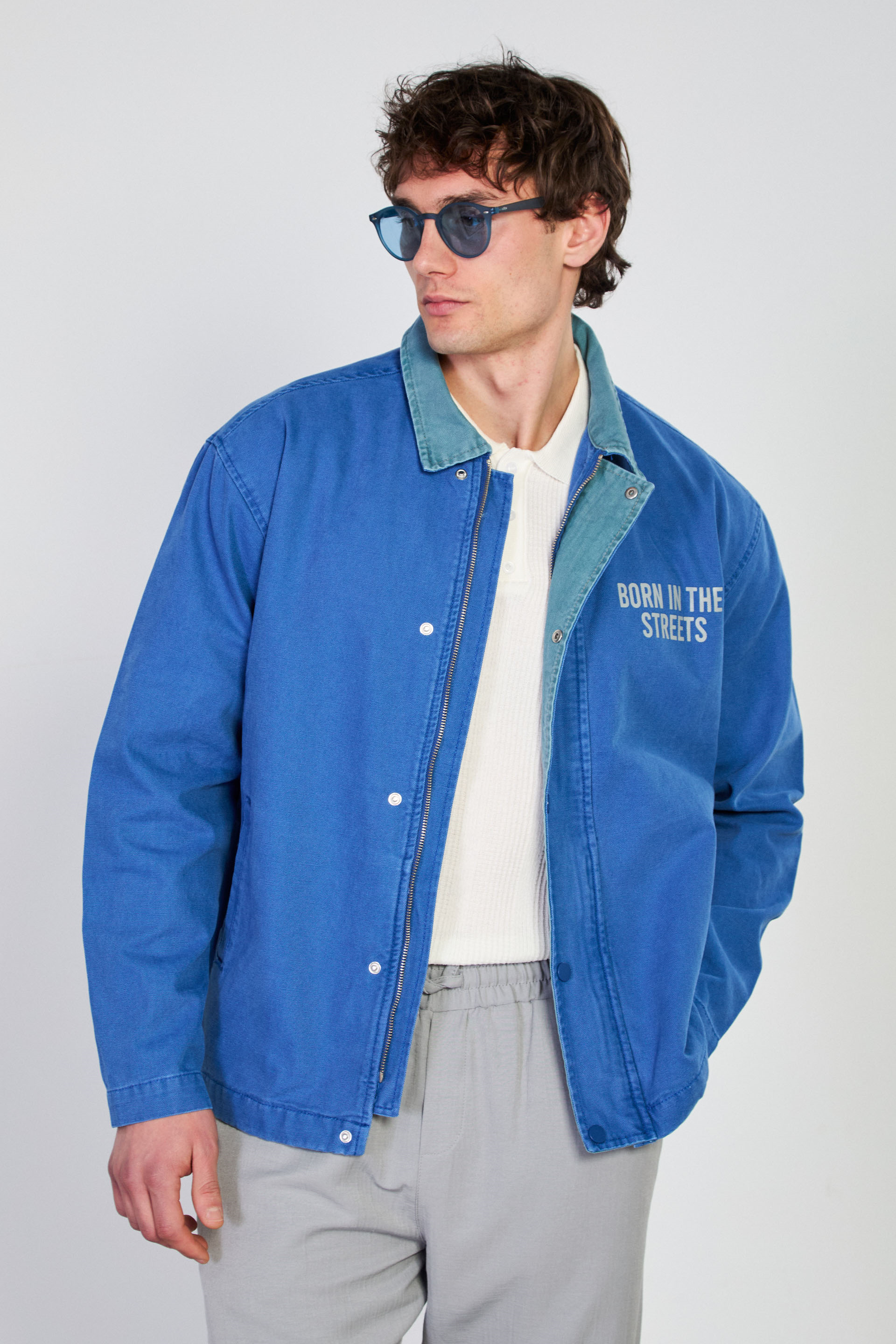 Erkek Çıtçıtlı Fermuarlı Polo Yaka Ceket - İndigo