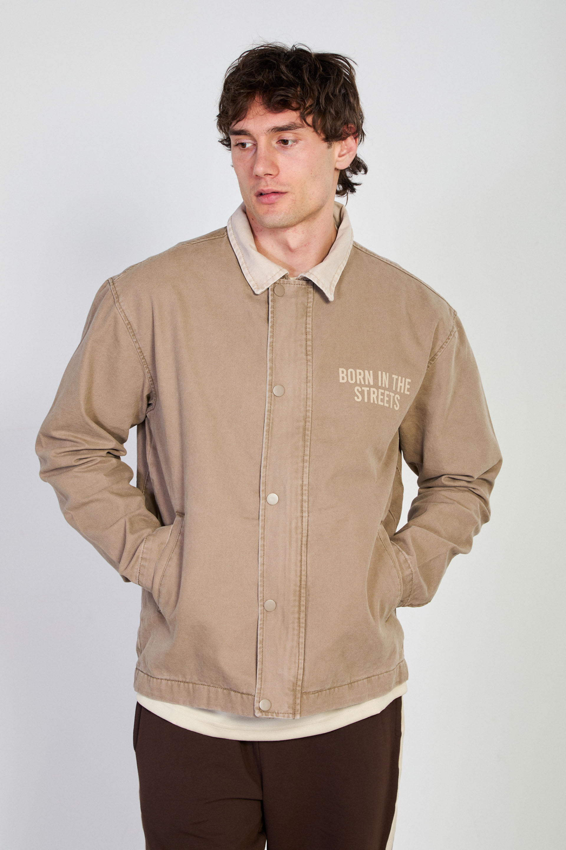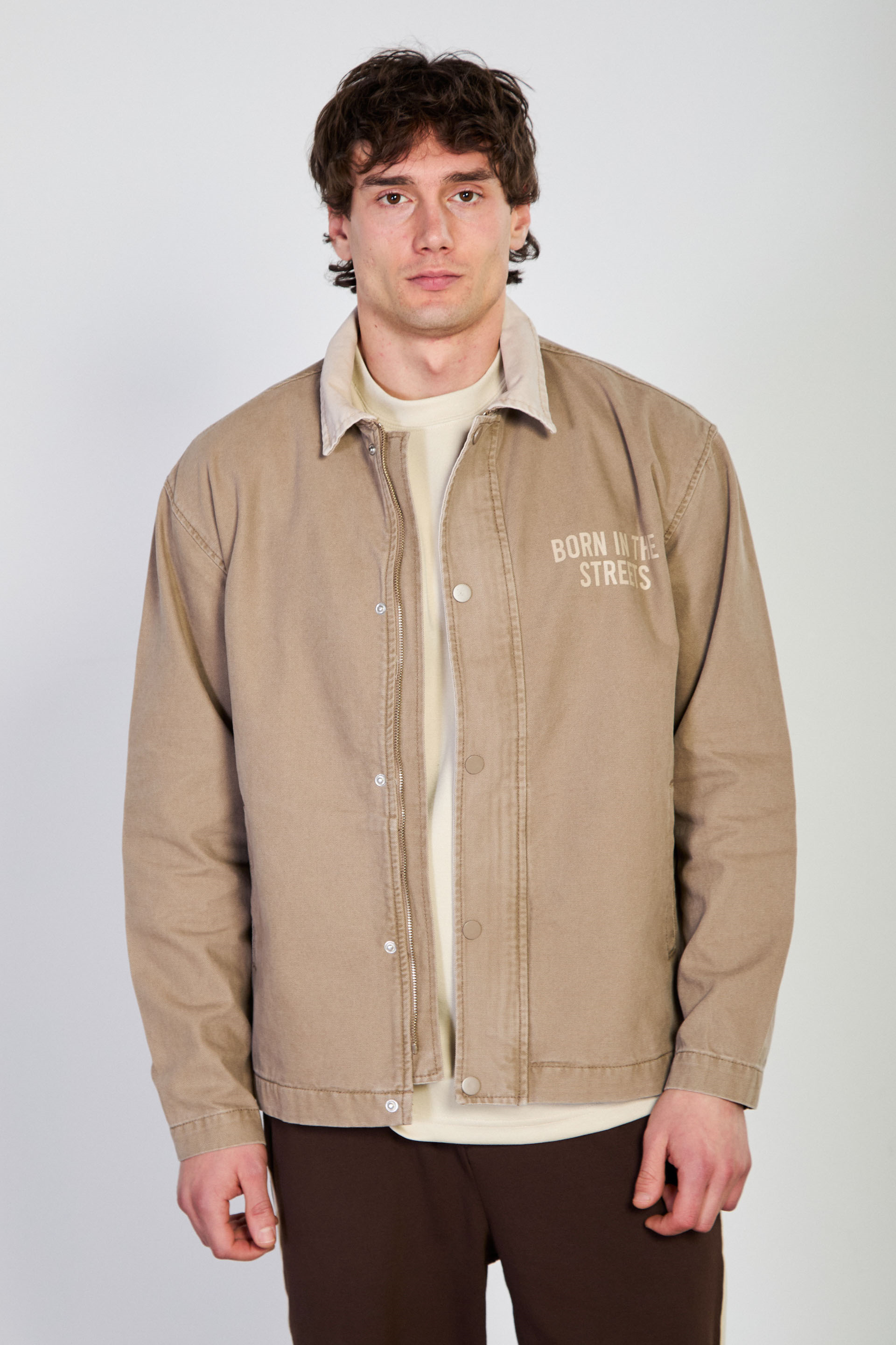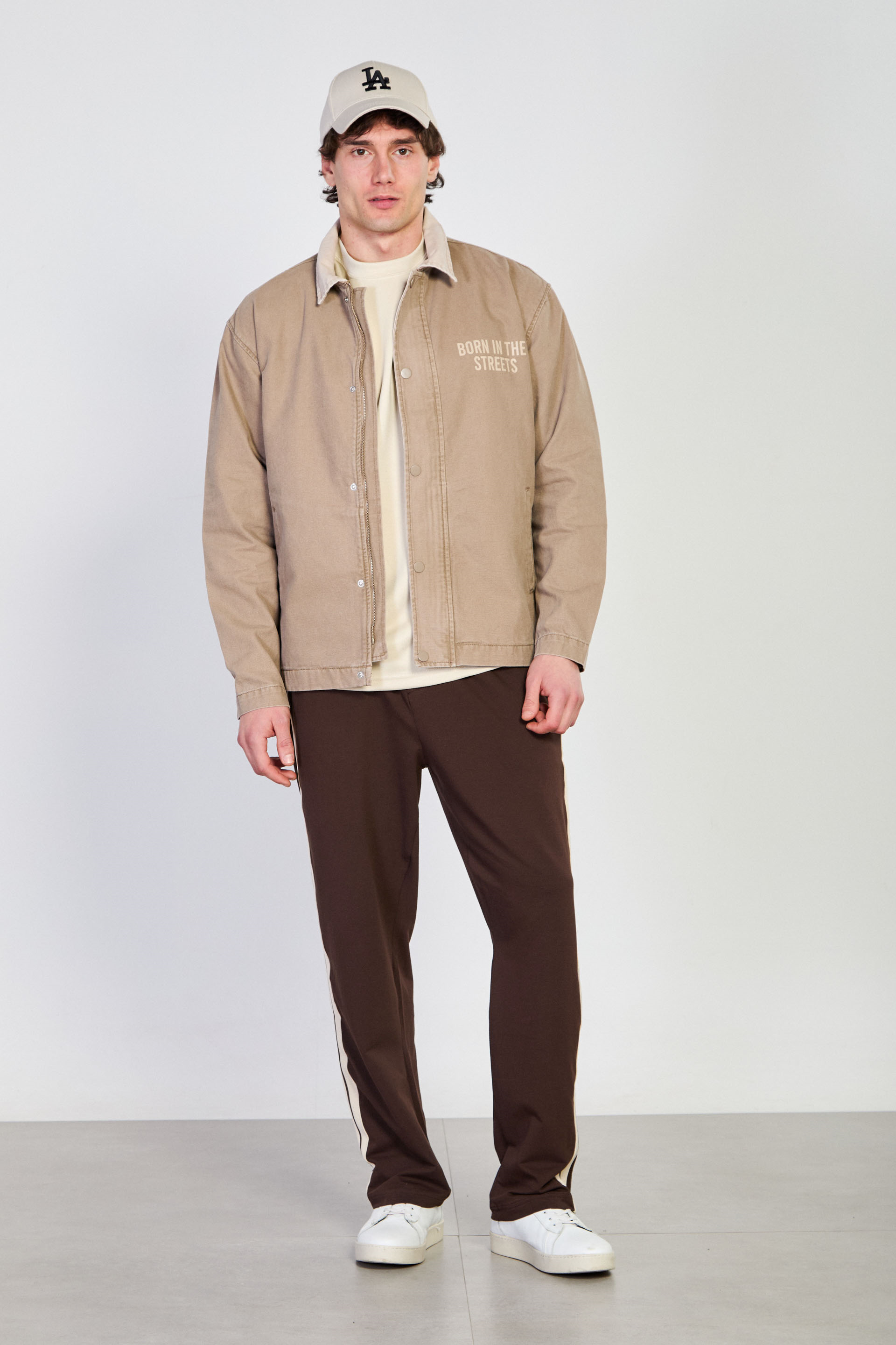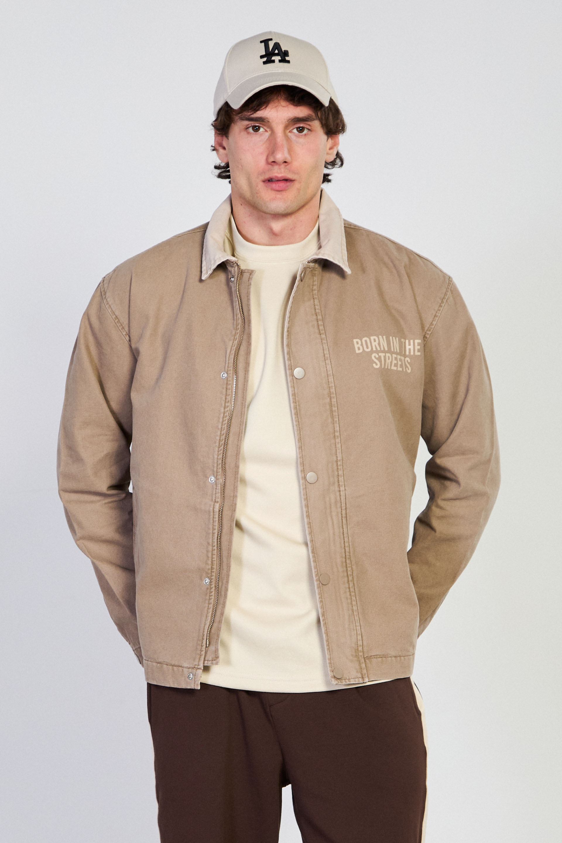 Erkek Çıtçıtlı Fermuarlı Polo Yaka Ceket - Vizon