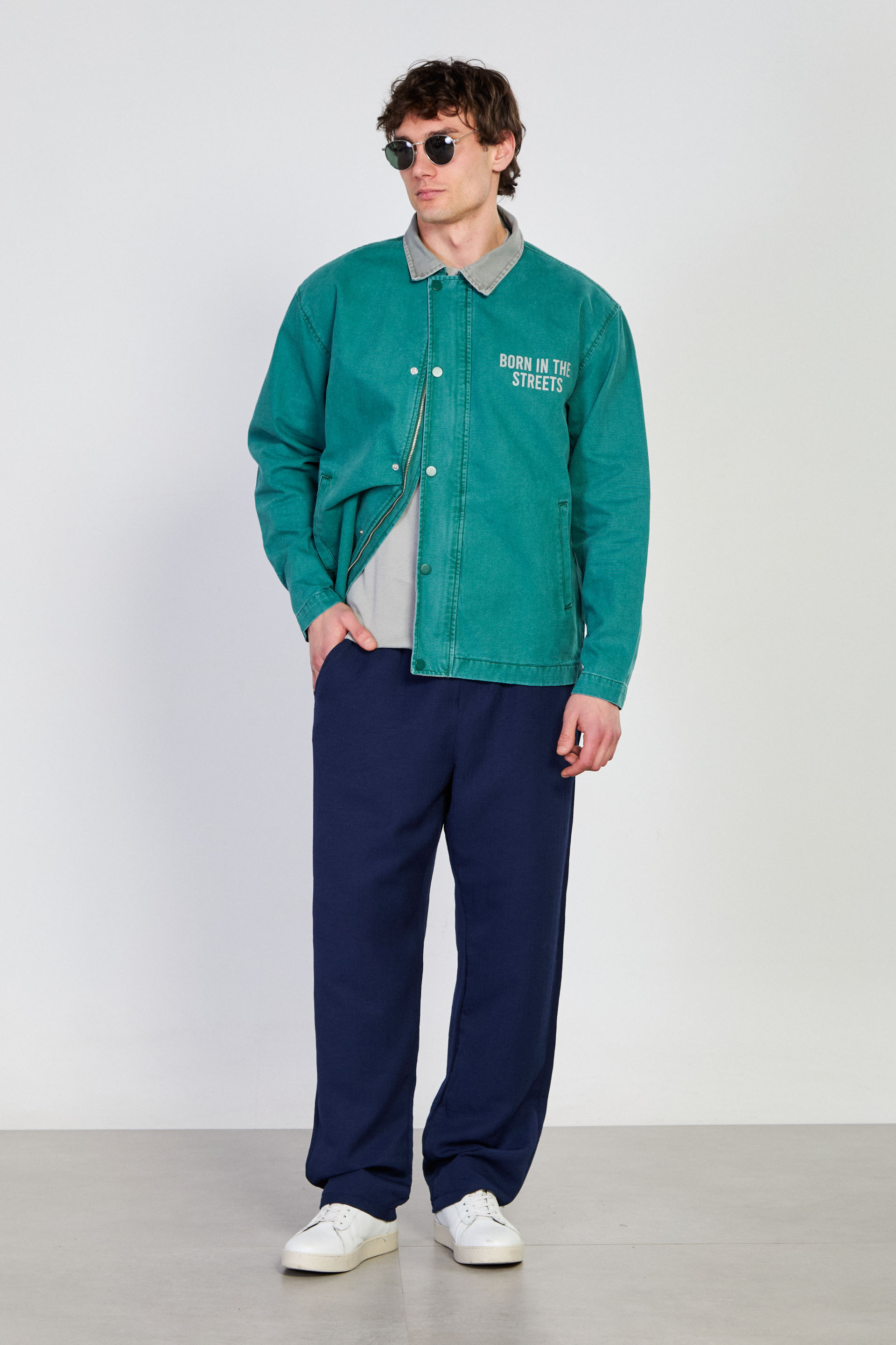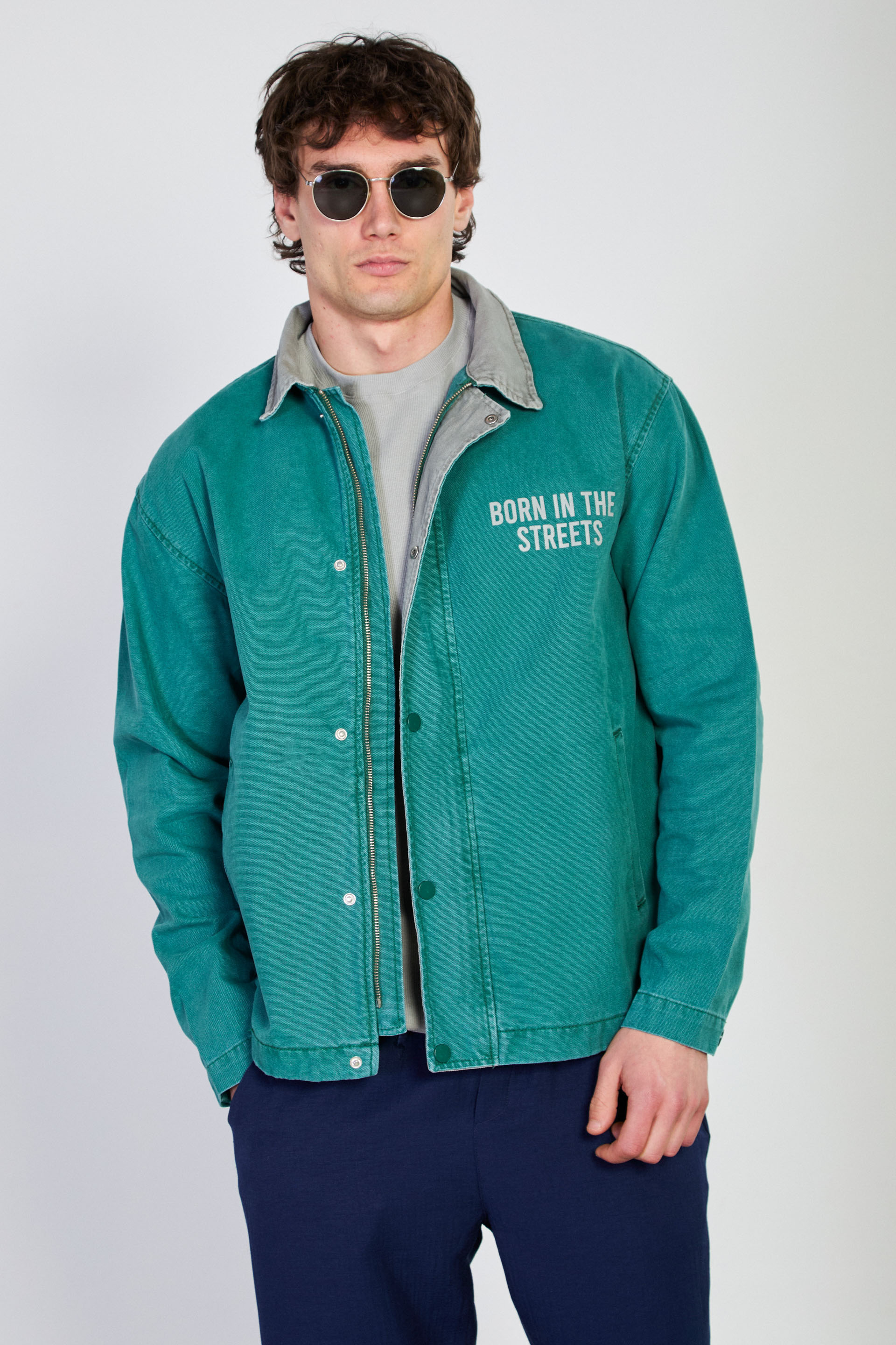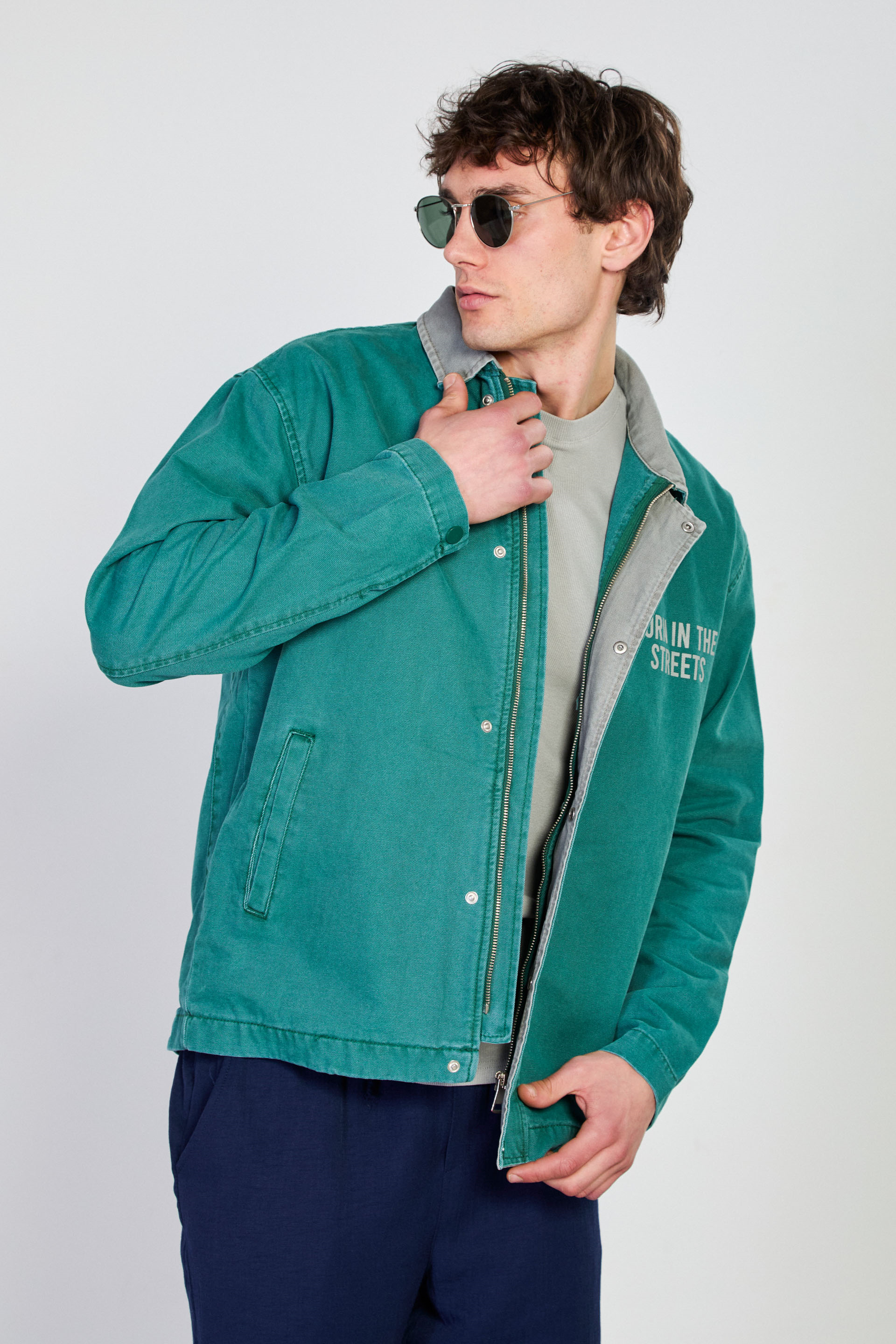 Erkek Çıtçıtlı Fermuarlı Polo Yaka Ceket - Yeşil