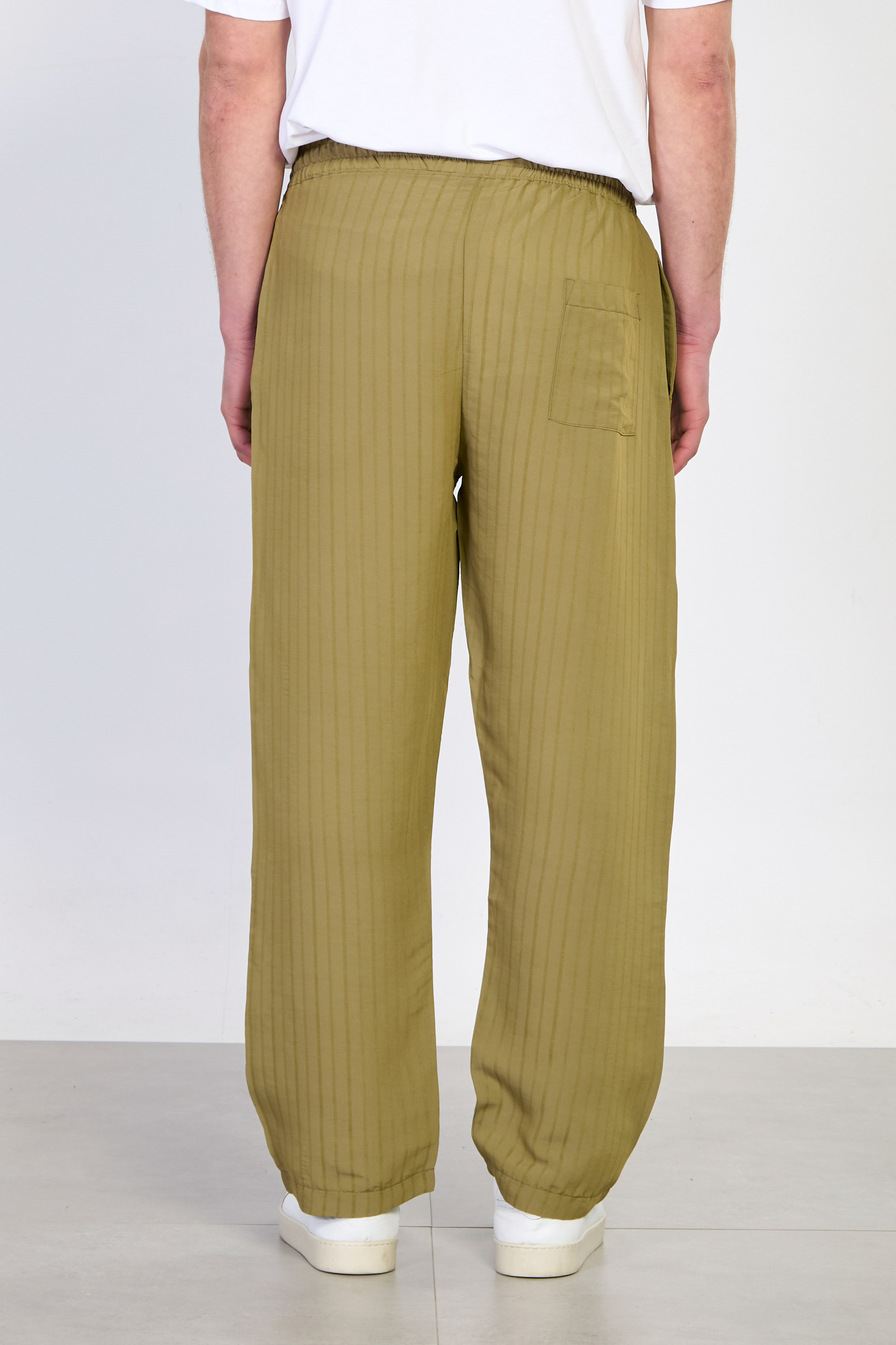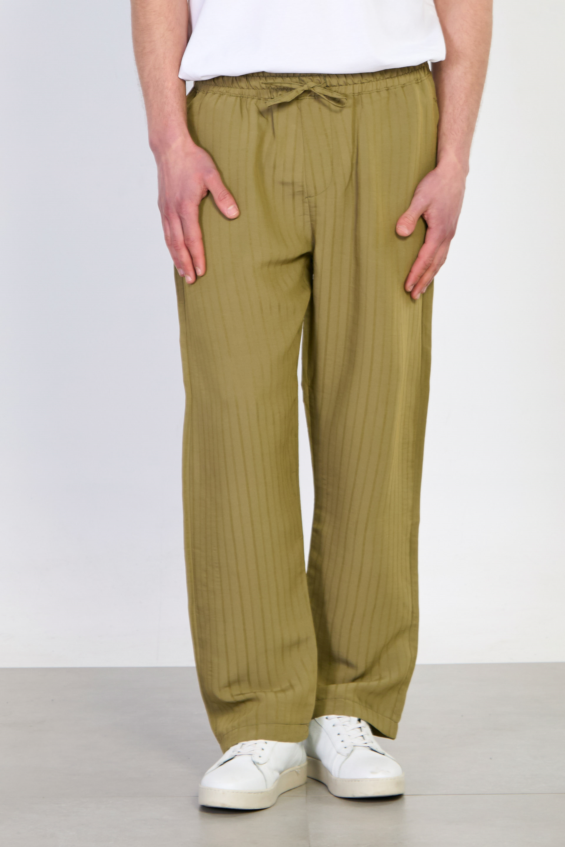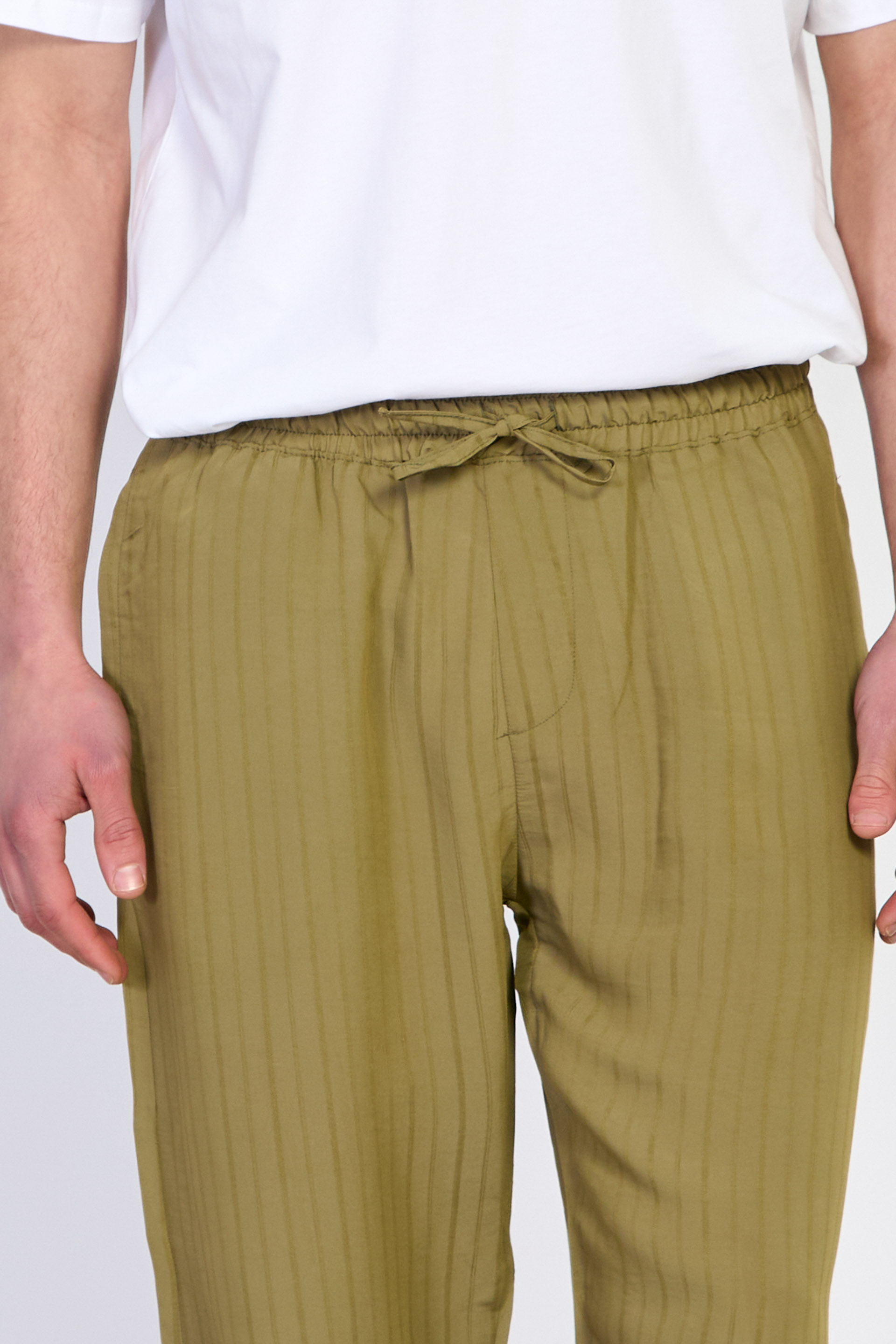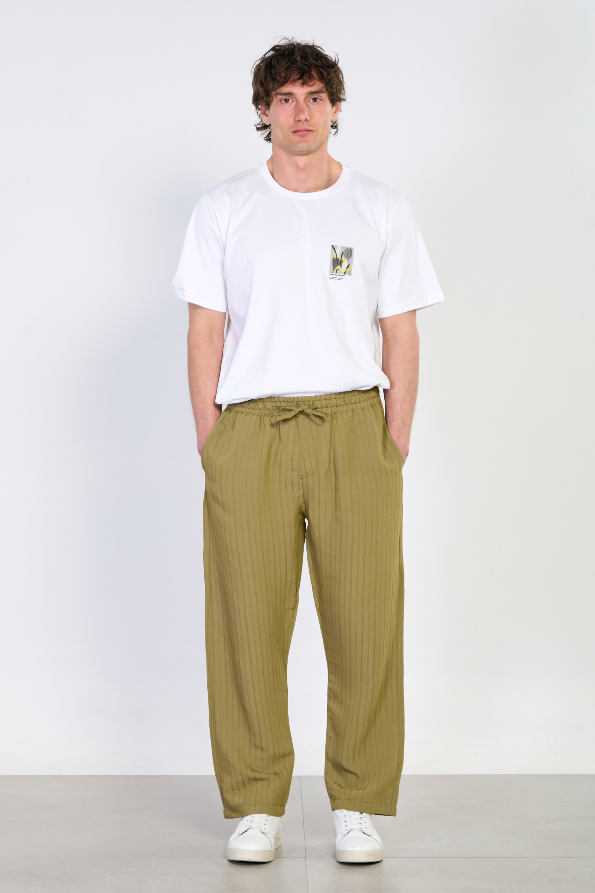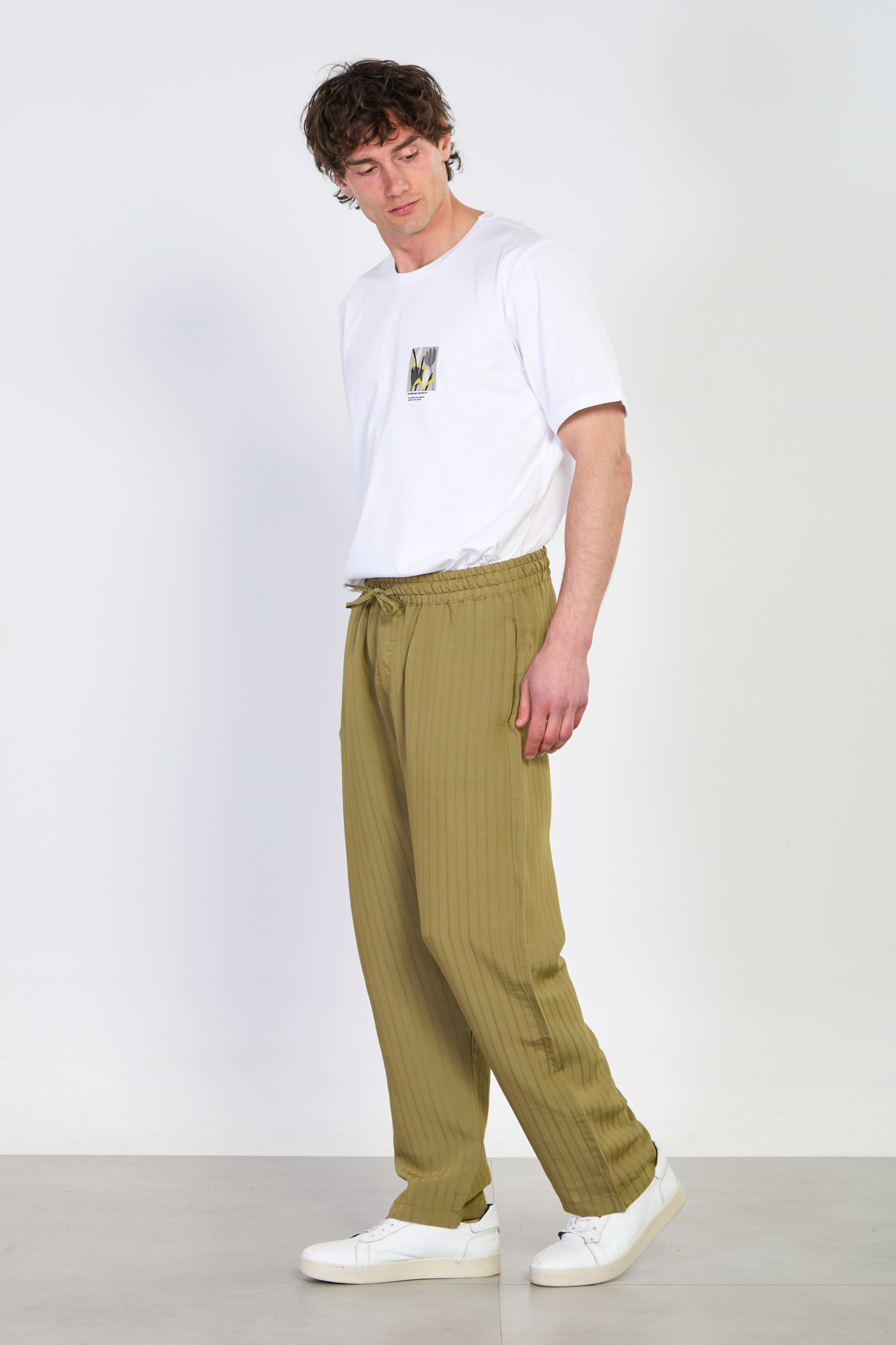 Erkek Çizgili Beli Bağlamalı Pantolon - Haki