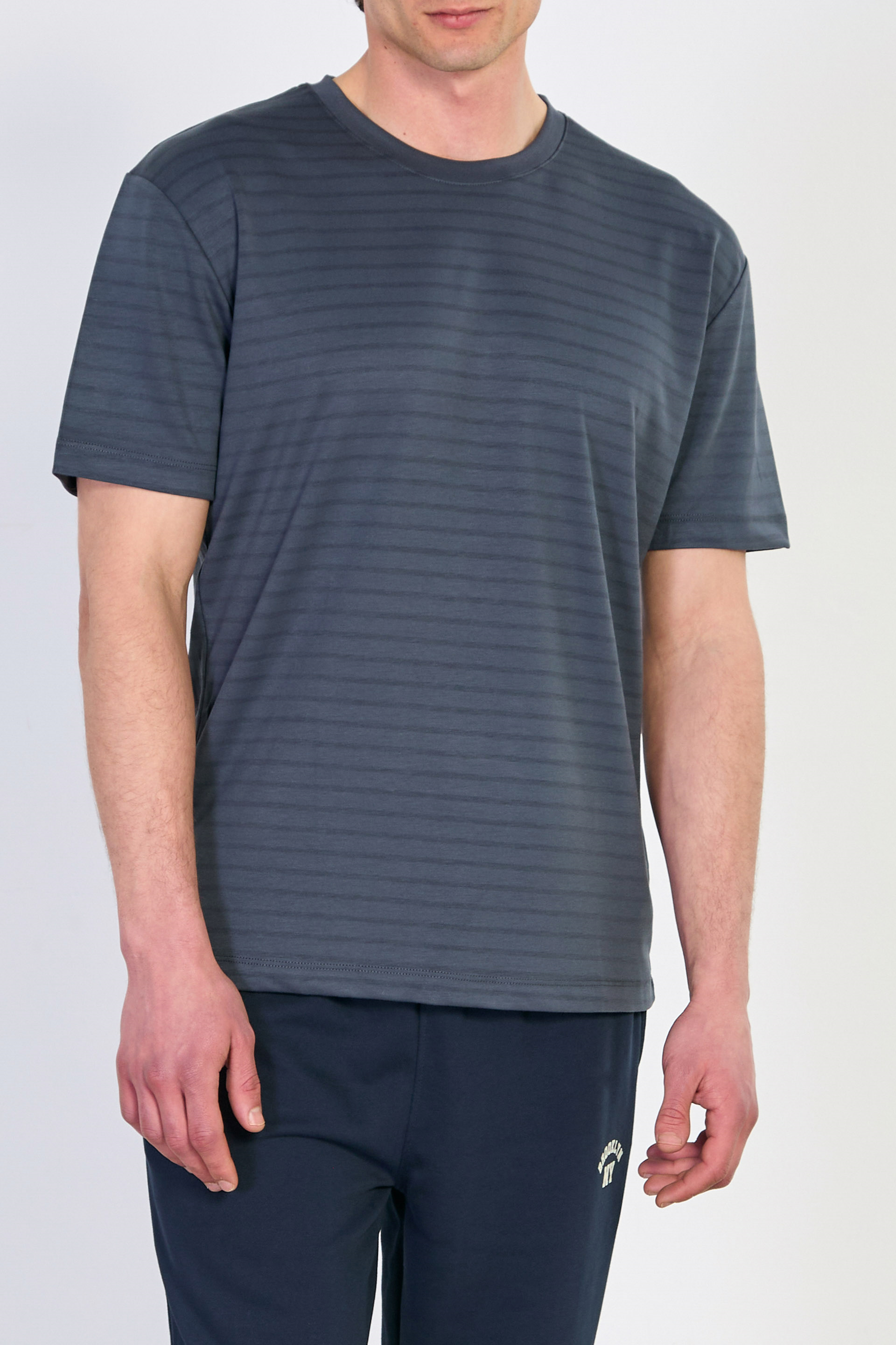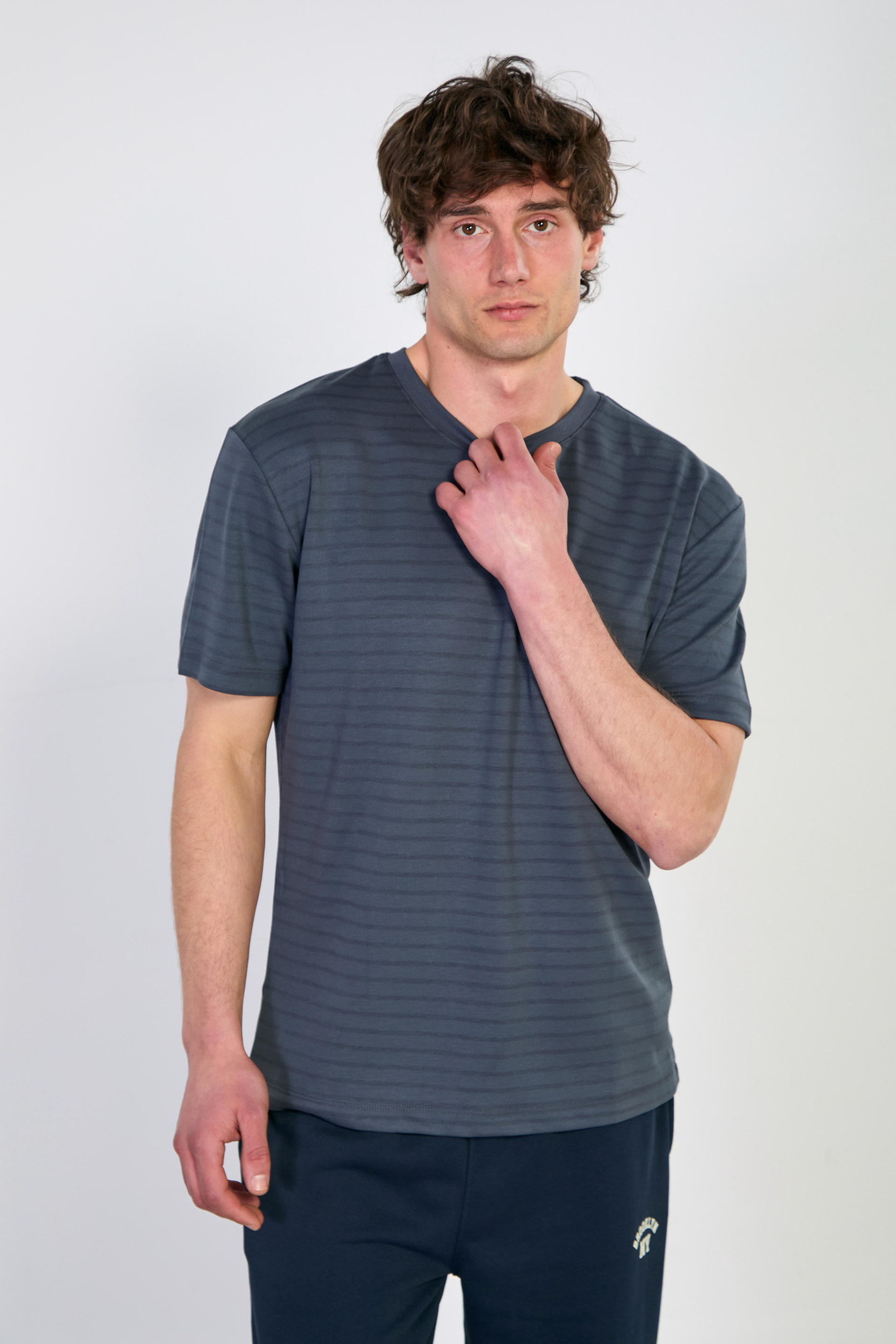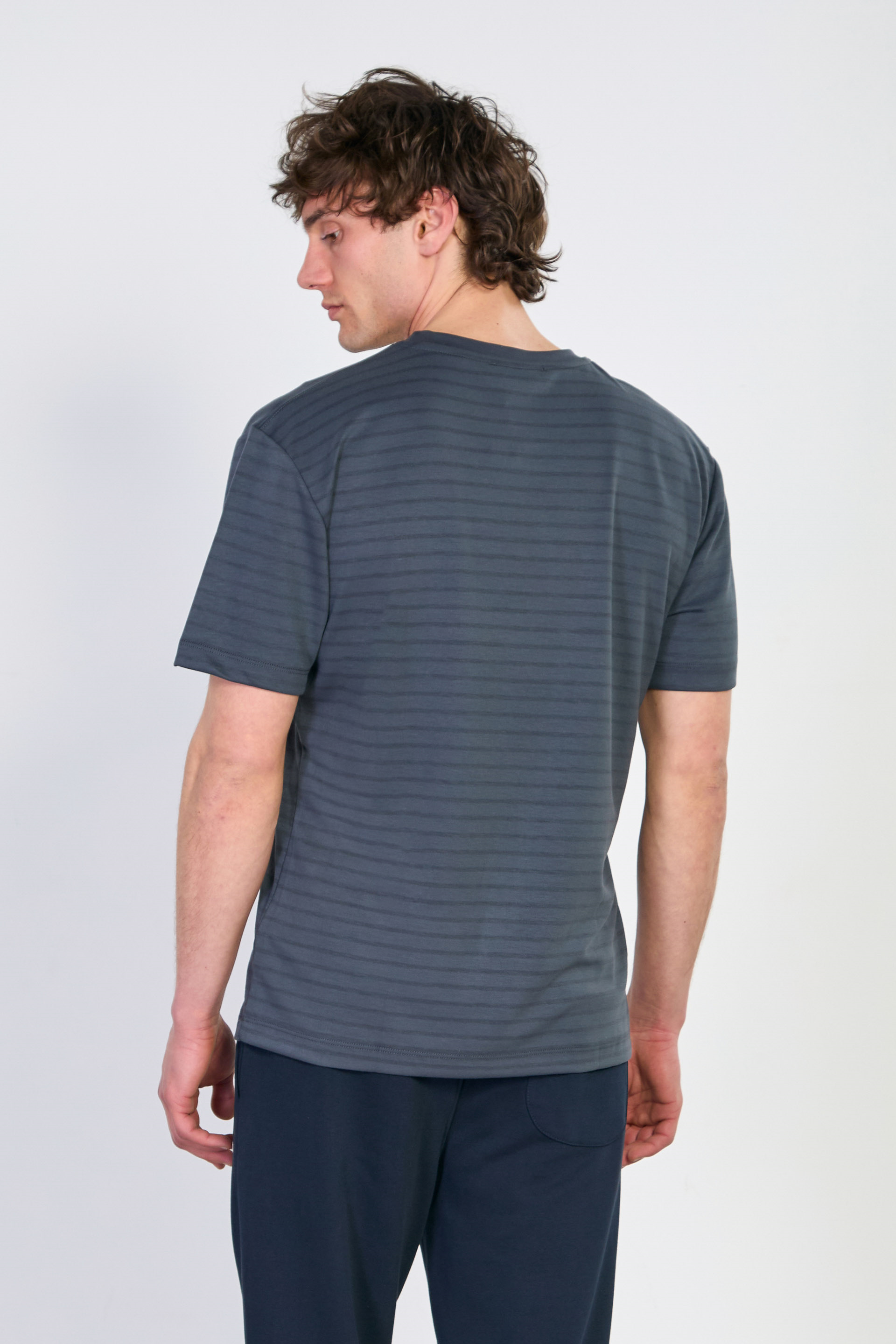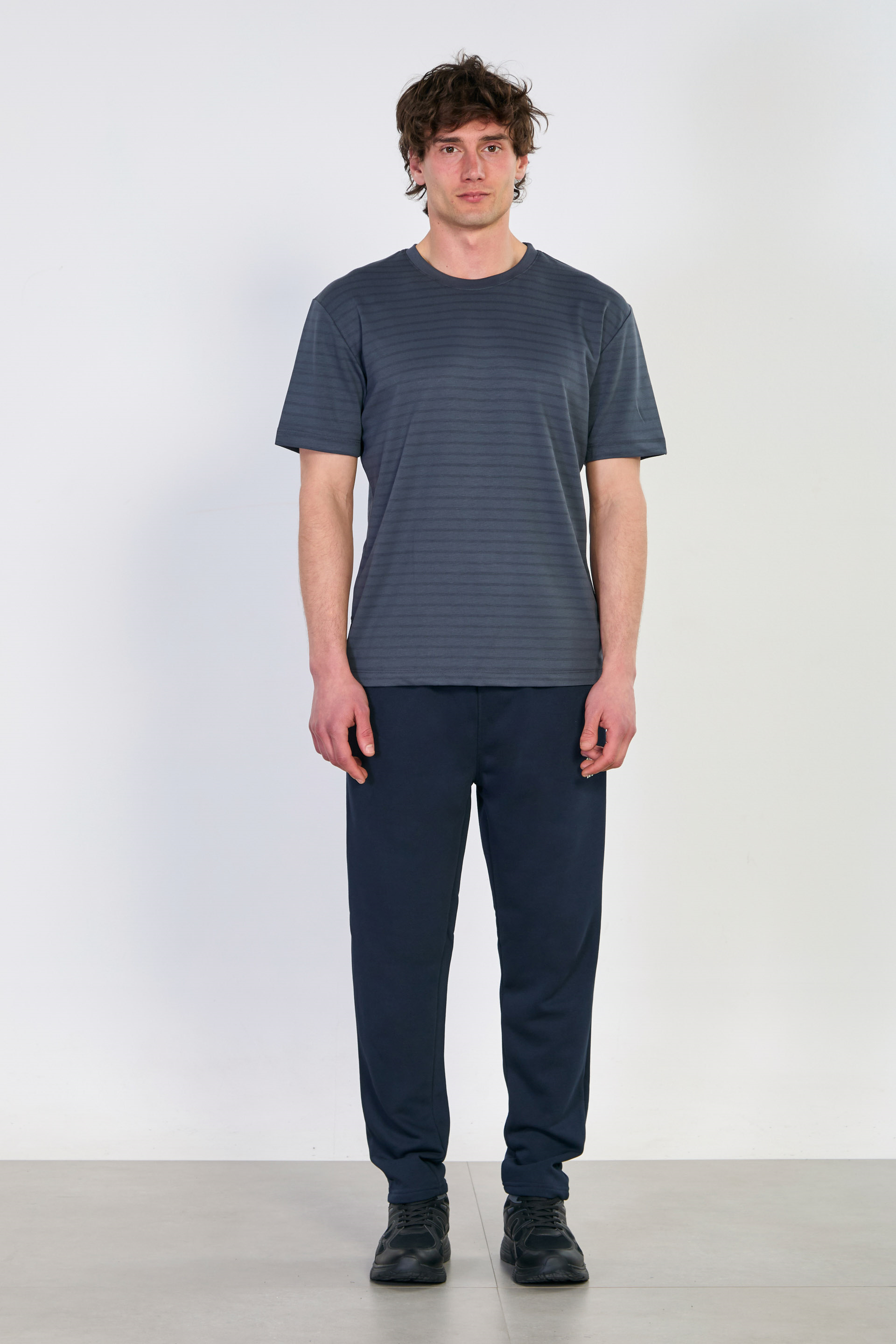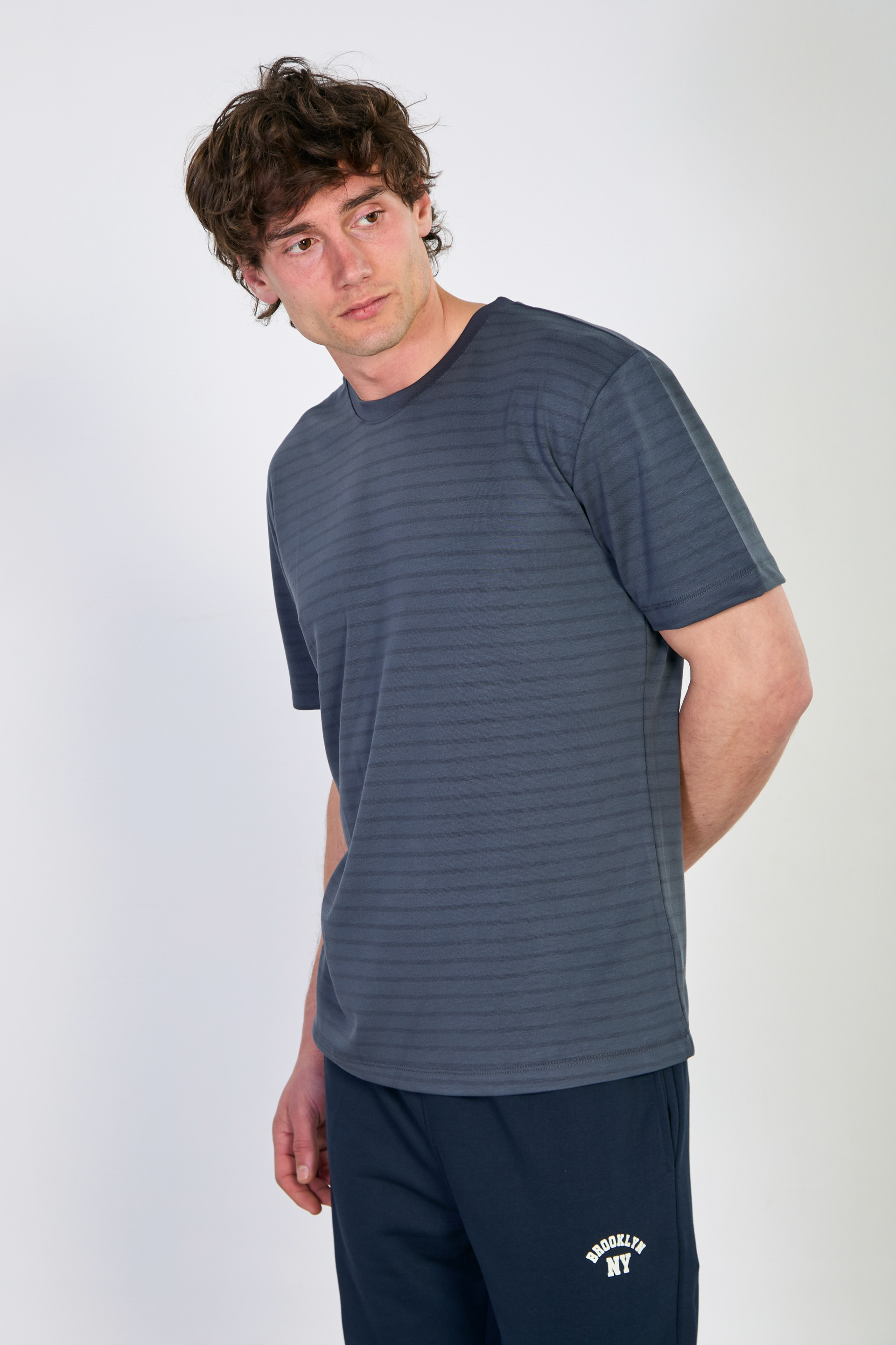 Erkek Çizgili Bisiklet Yaka T-Shirt - Füme/Siyah