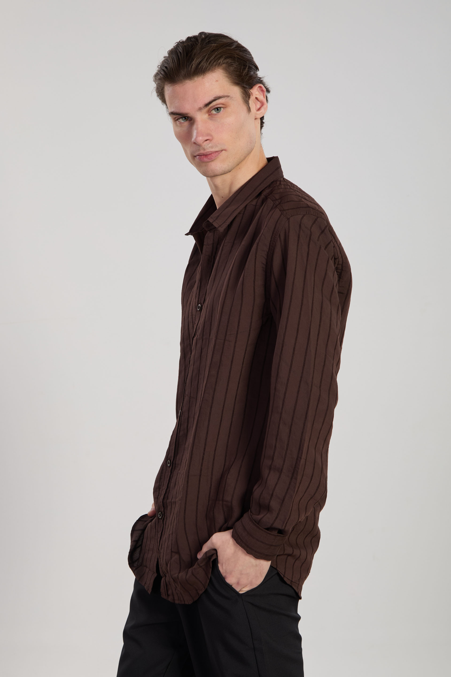 Erkek Çizgili Gömlek - Kahve