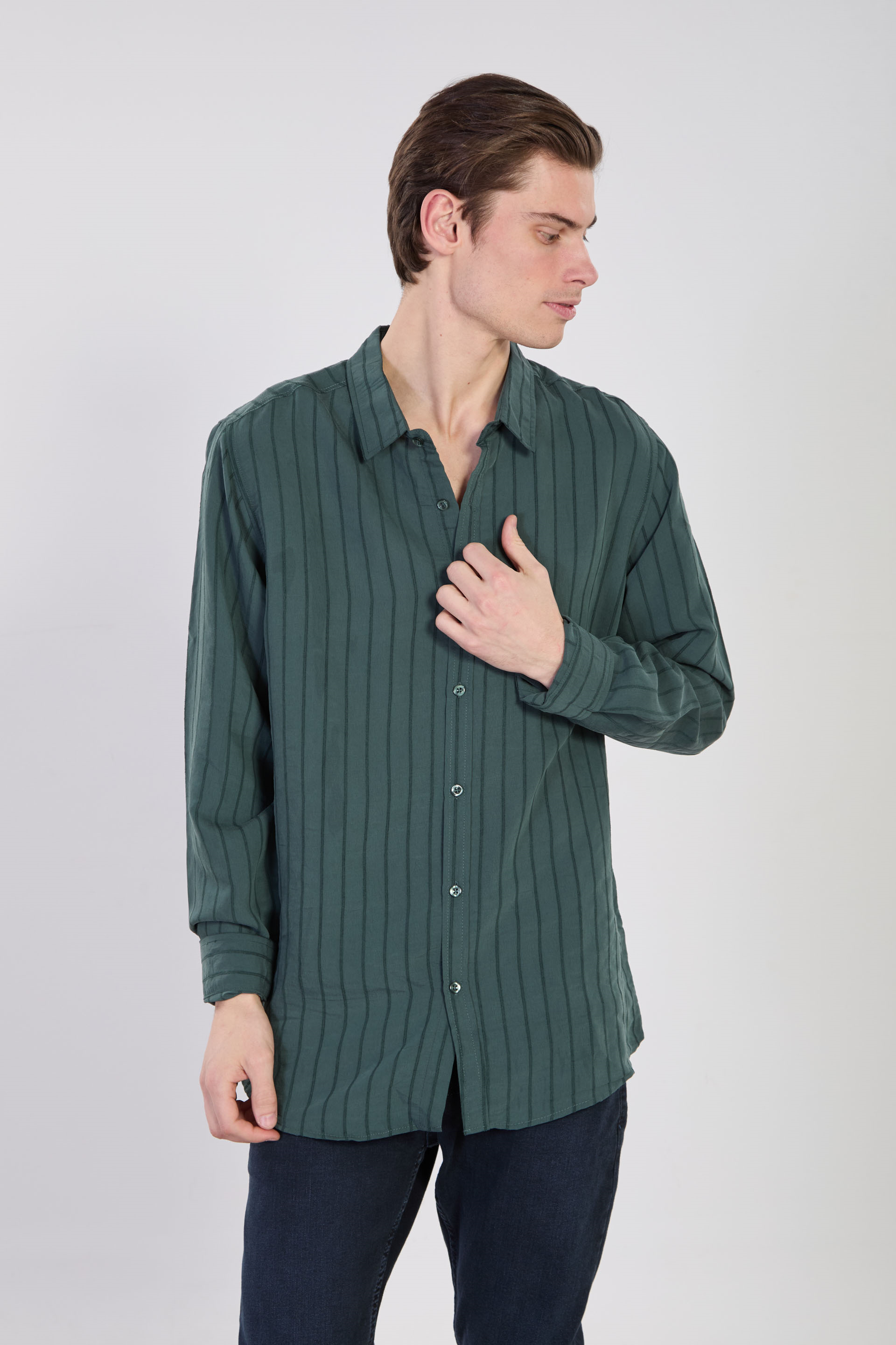 Erkek Çizgili Gömlek - Yeşil
