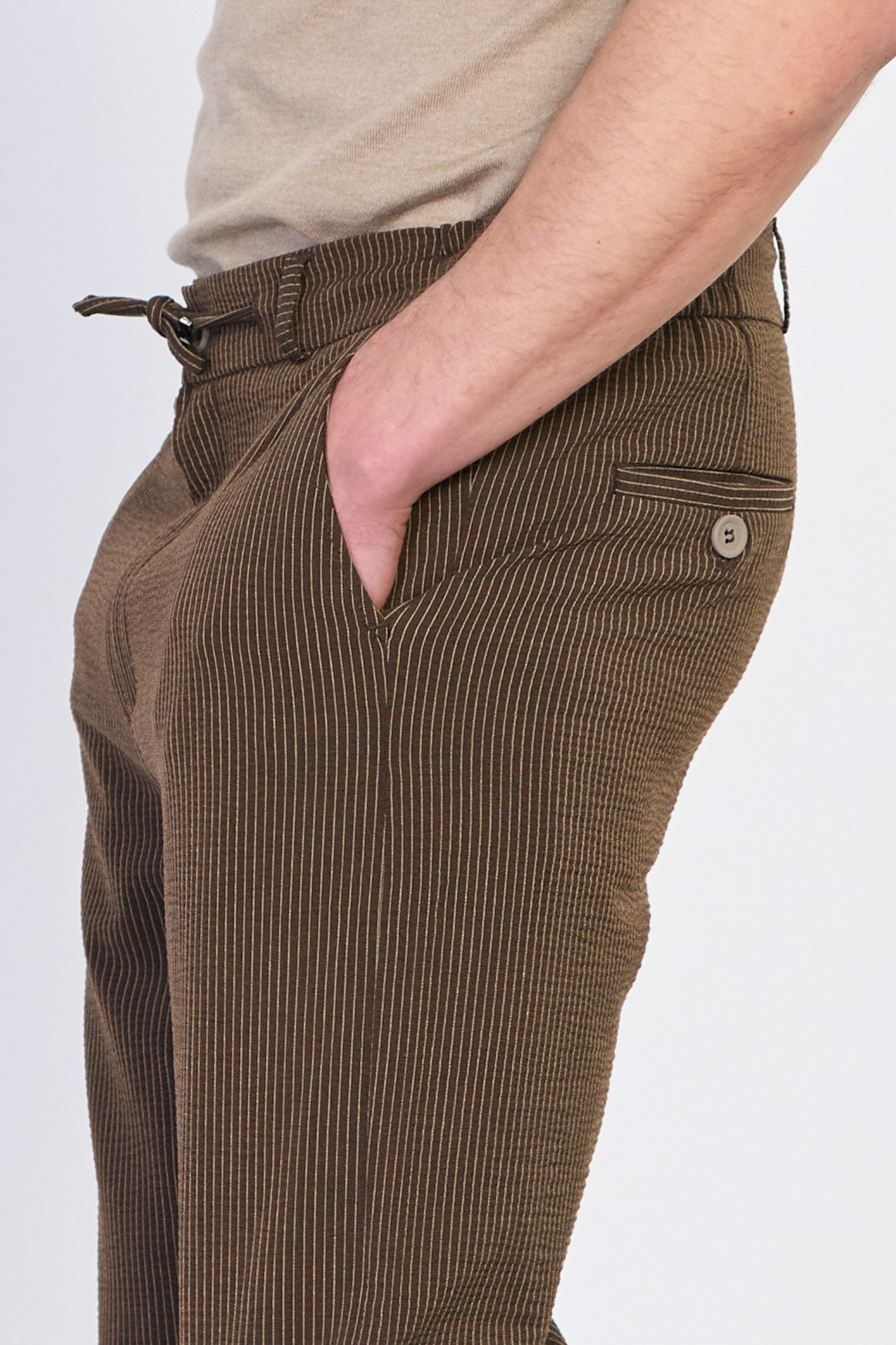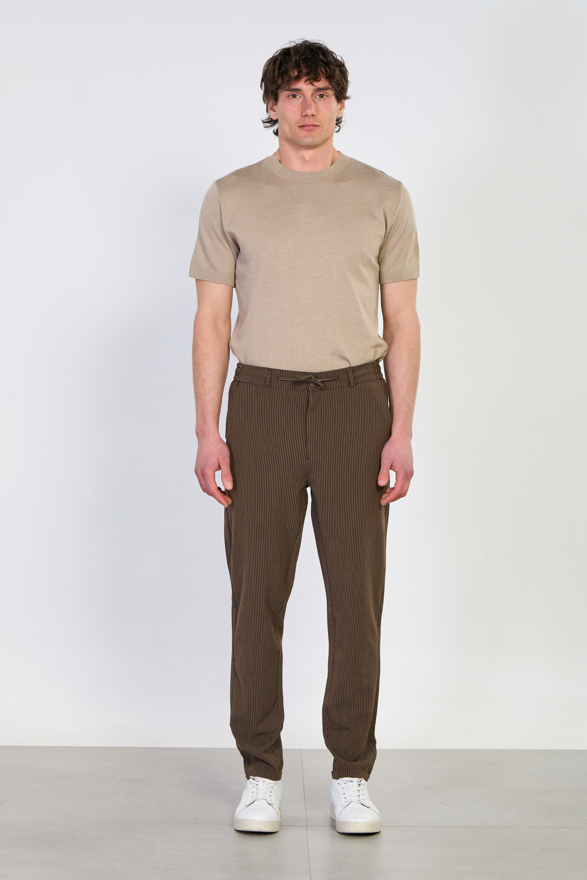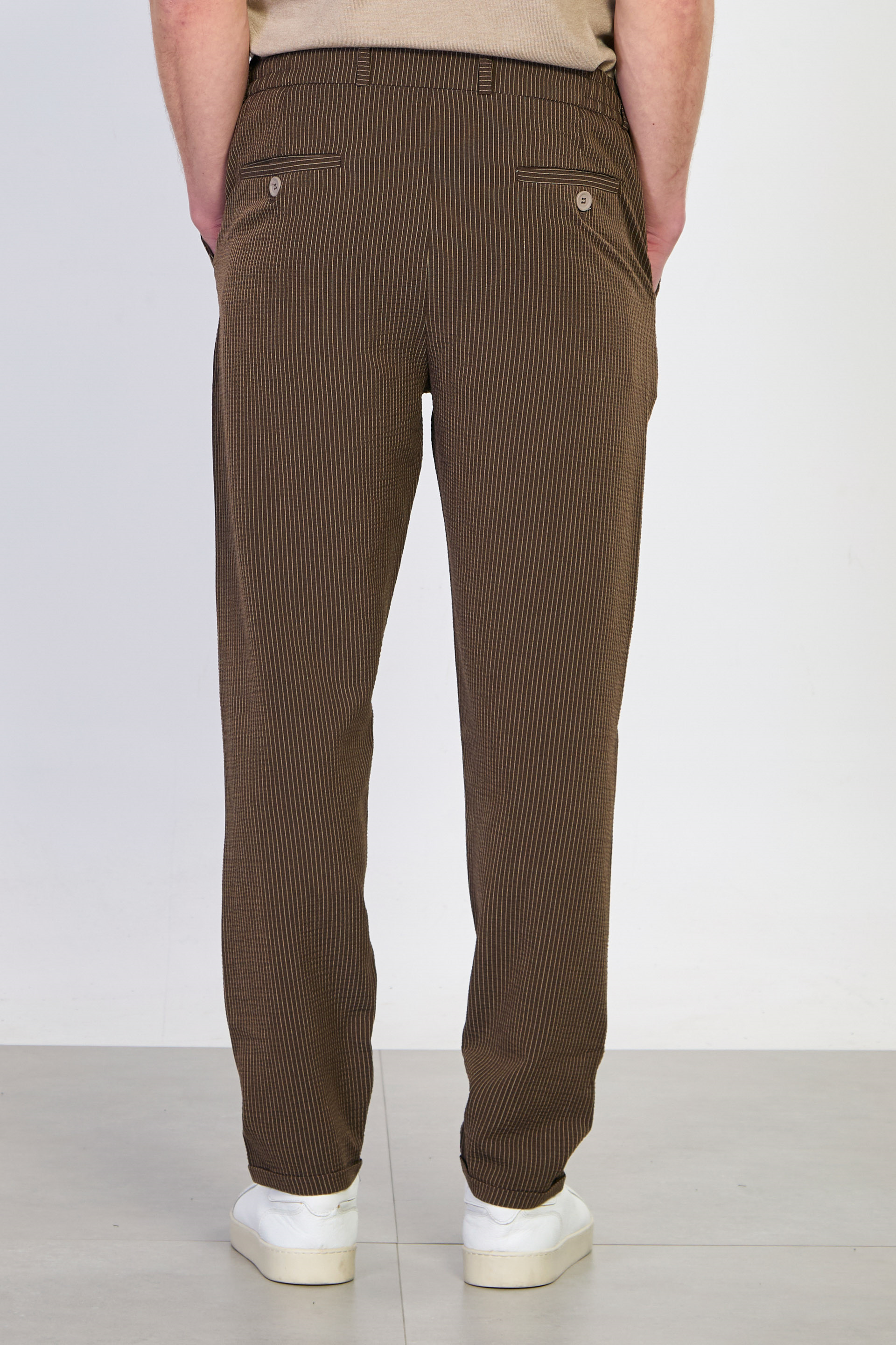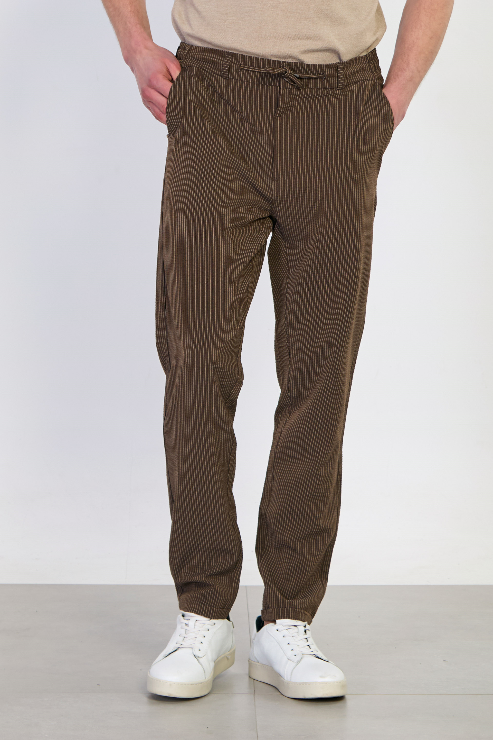 Erkek Çizgili Jogger Pantolon - Kahve