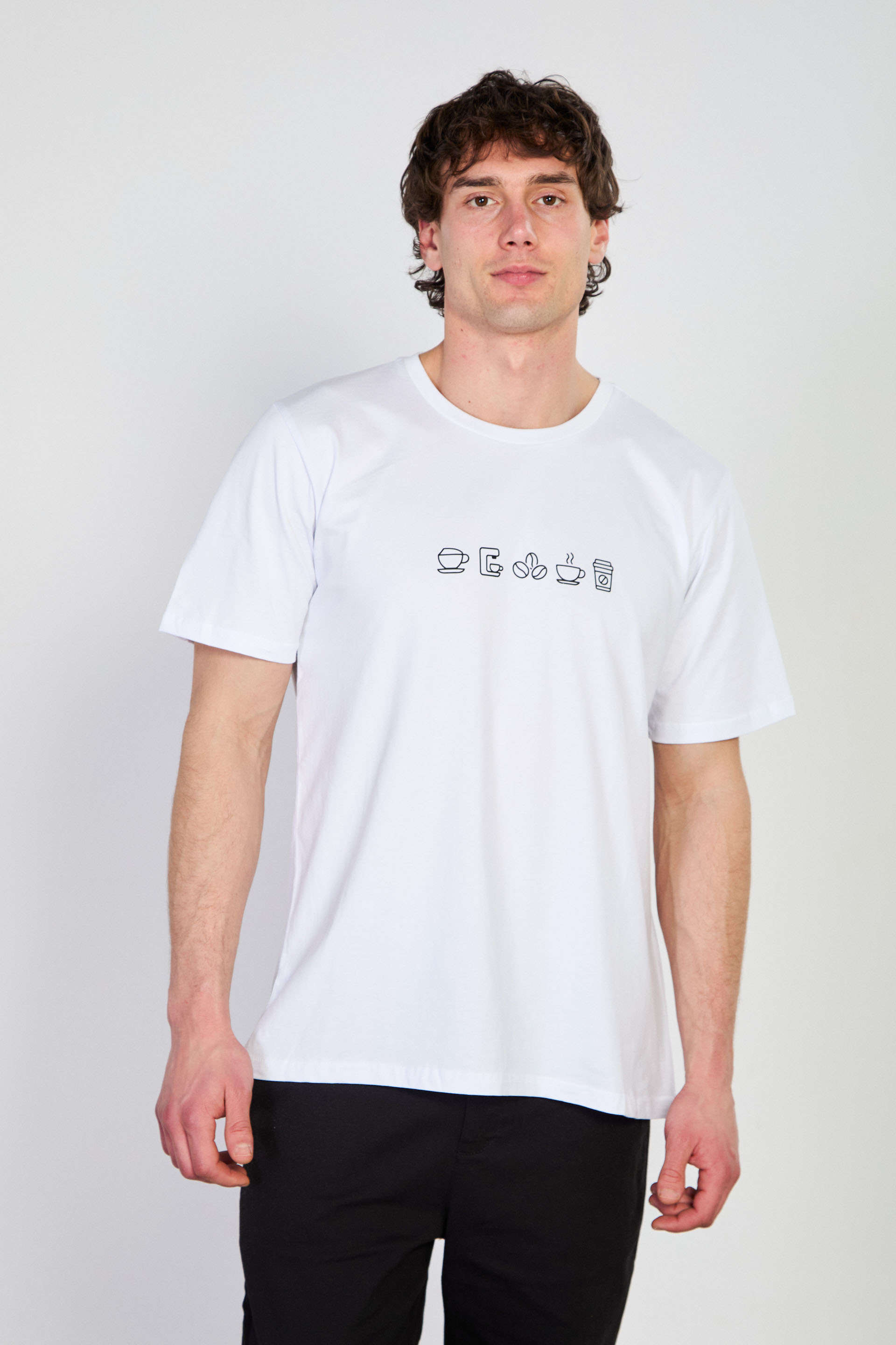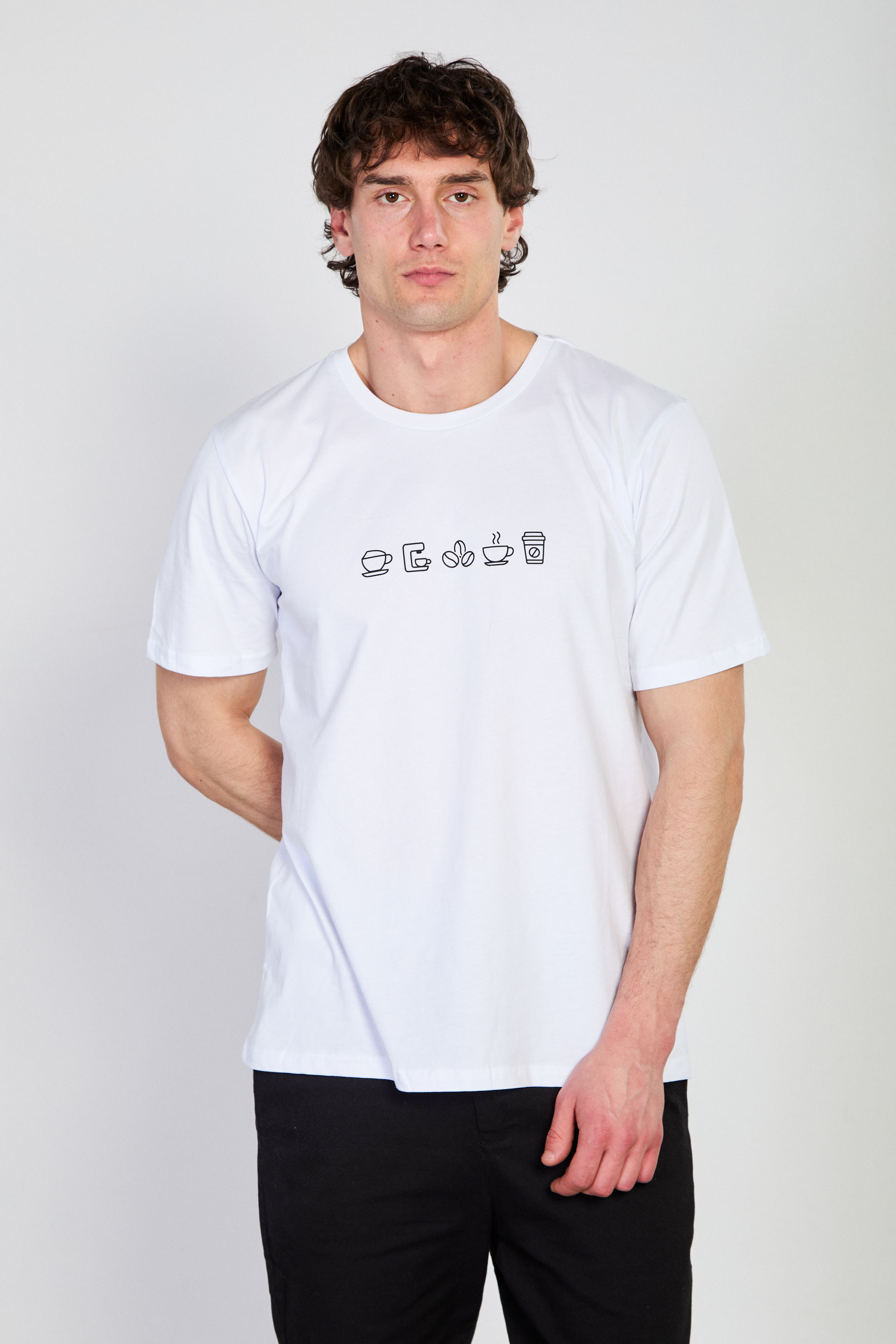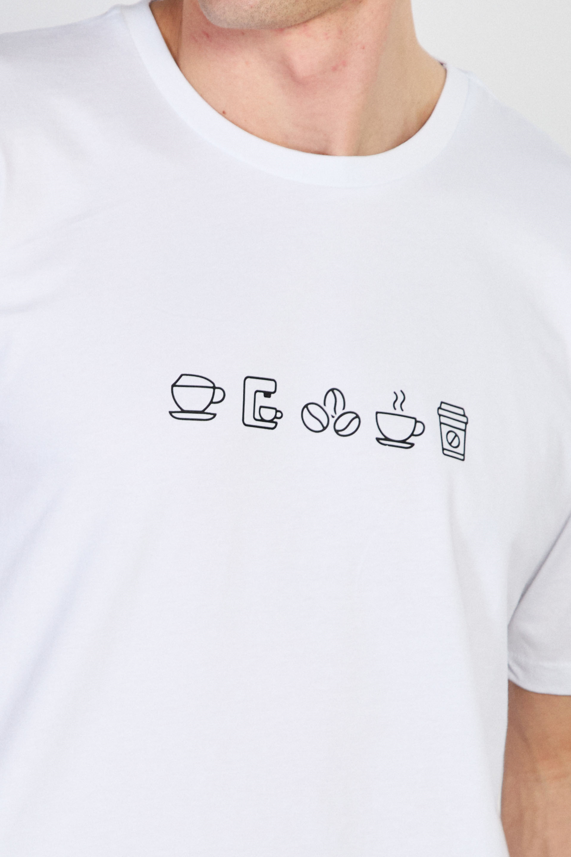 Erkek Coffee Baskılı T-Shirt - Beyaz