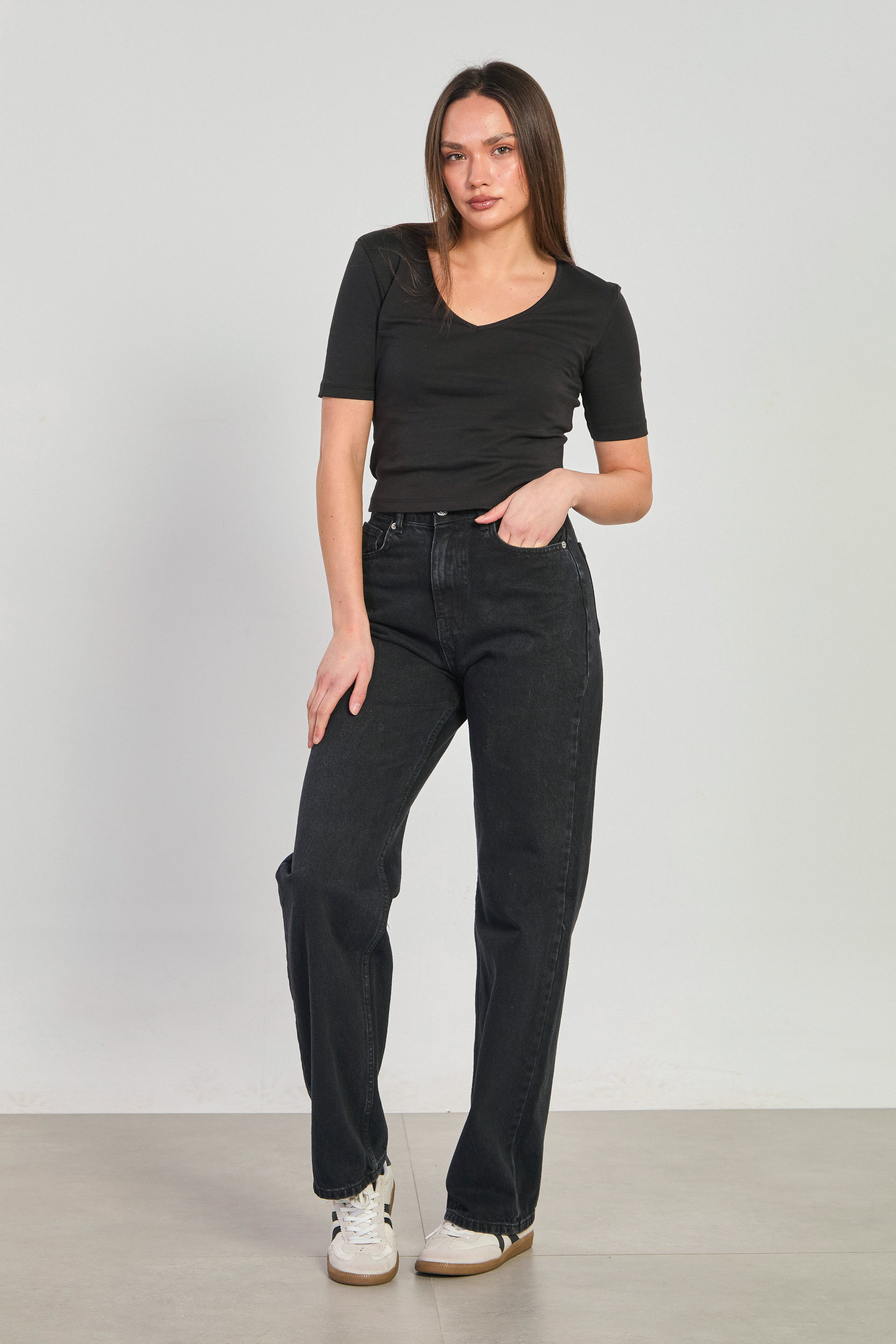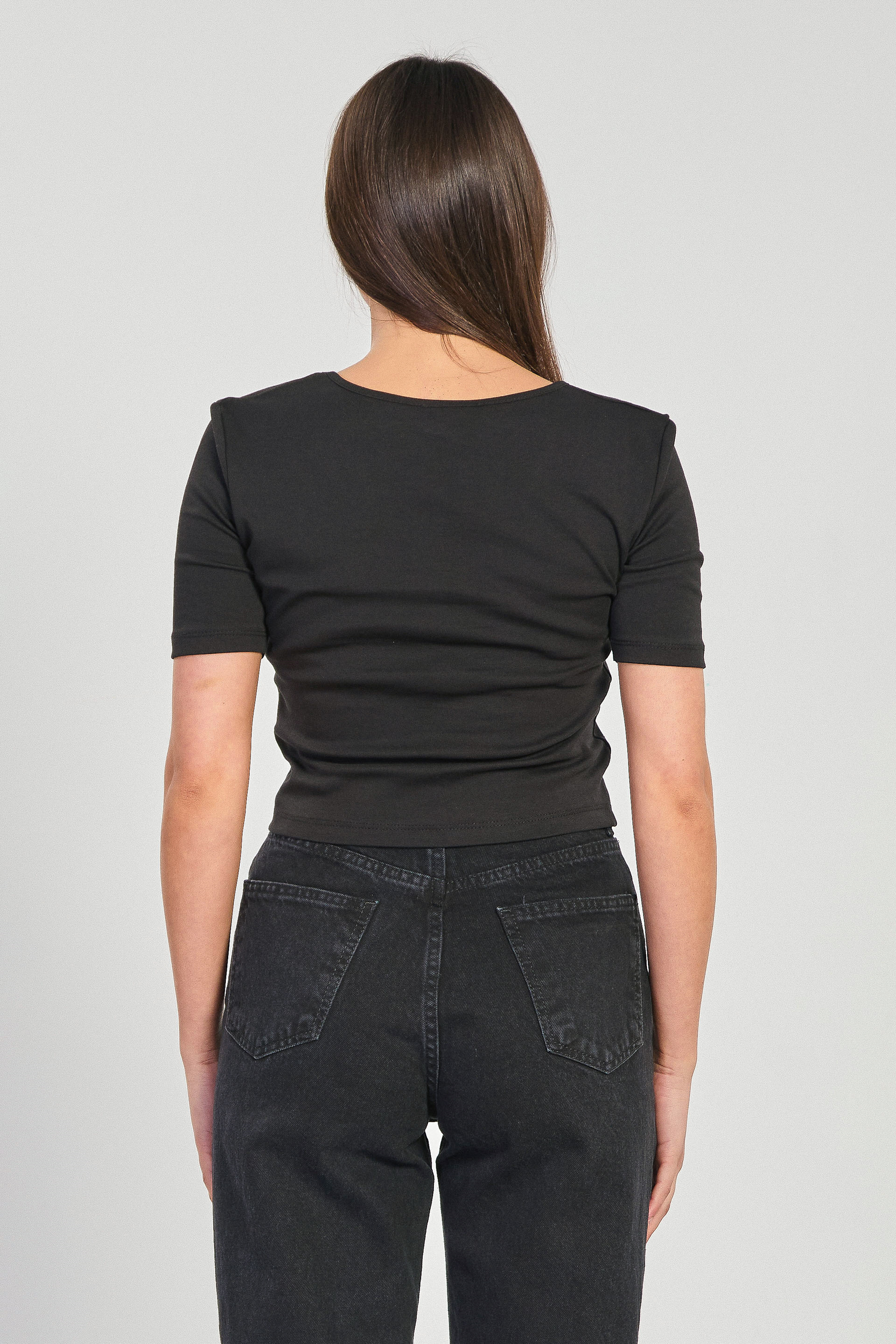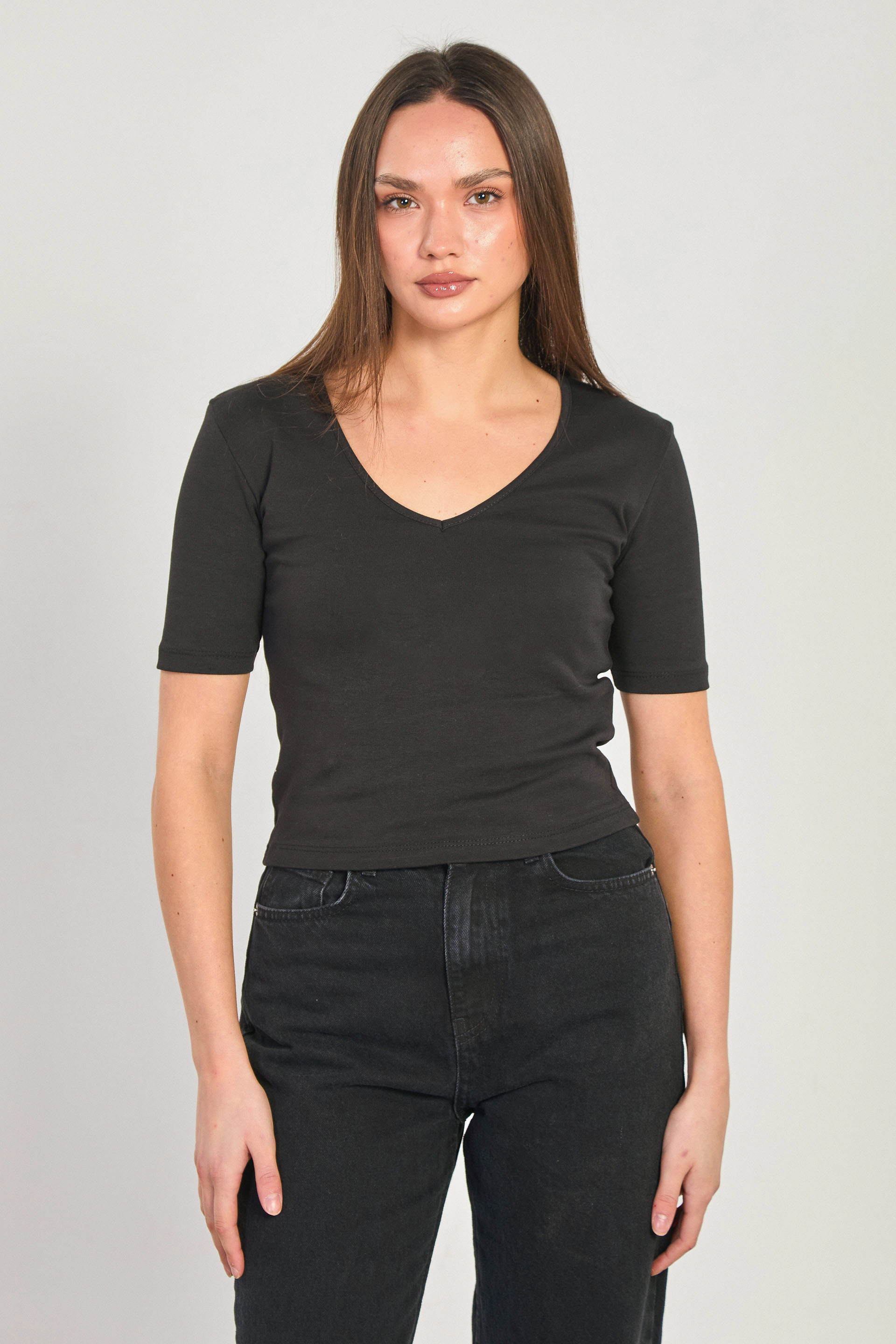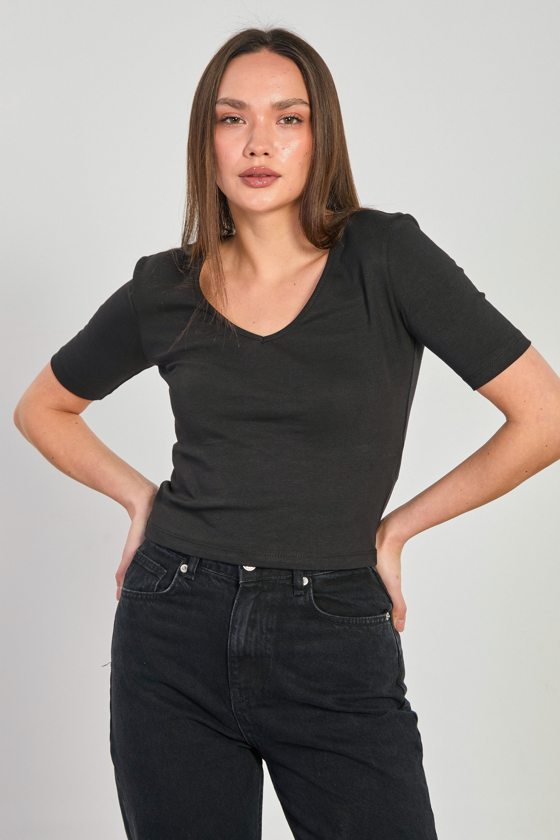 Kadın Derin V Yaka Kısa Kollu Body - Siyah