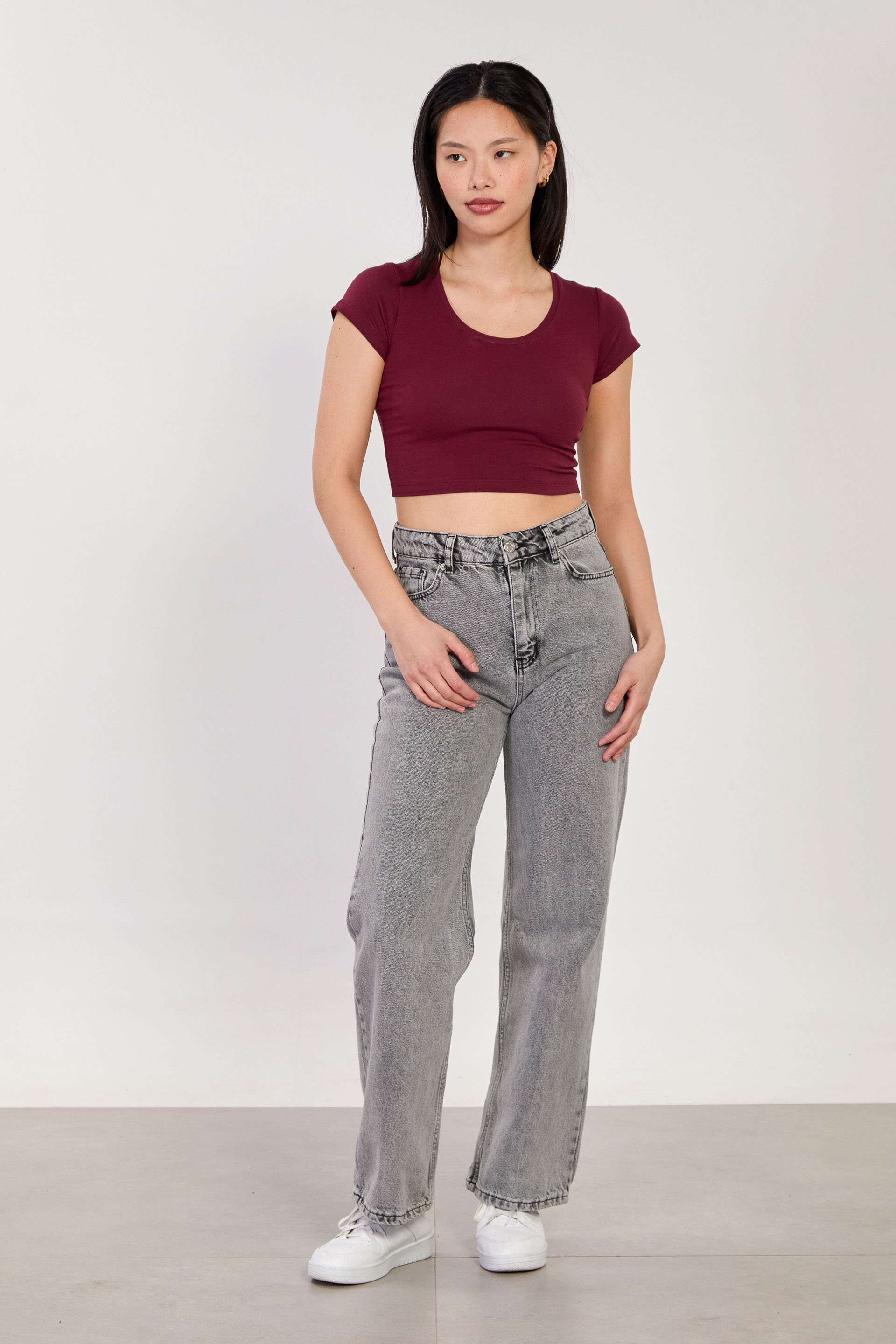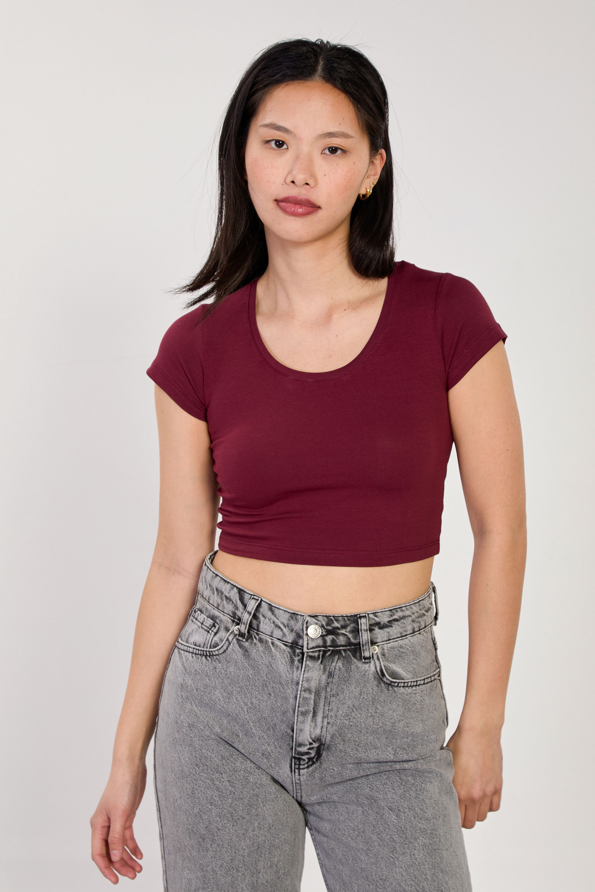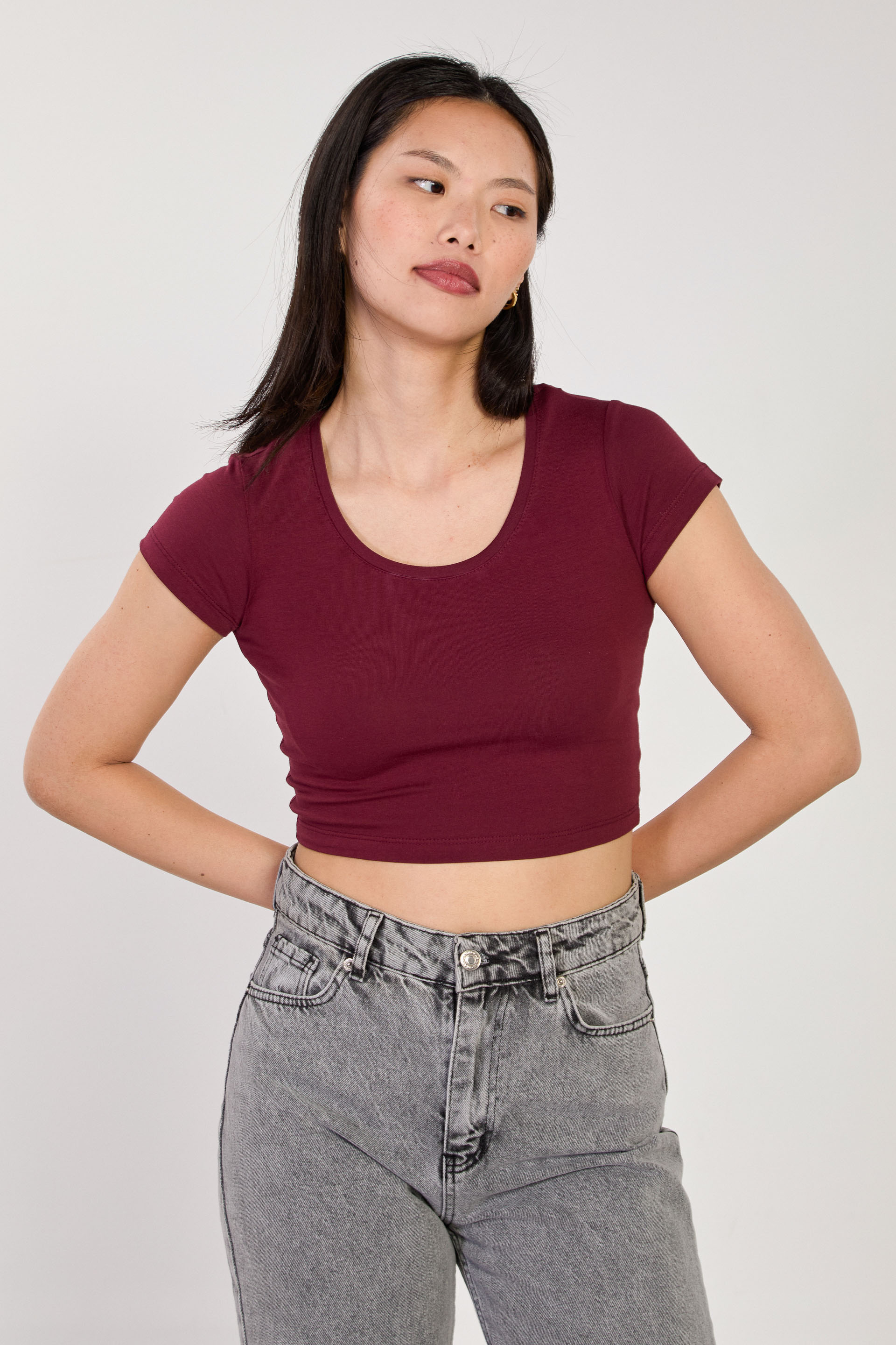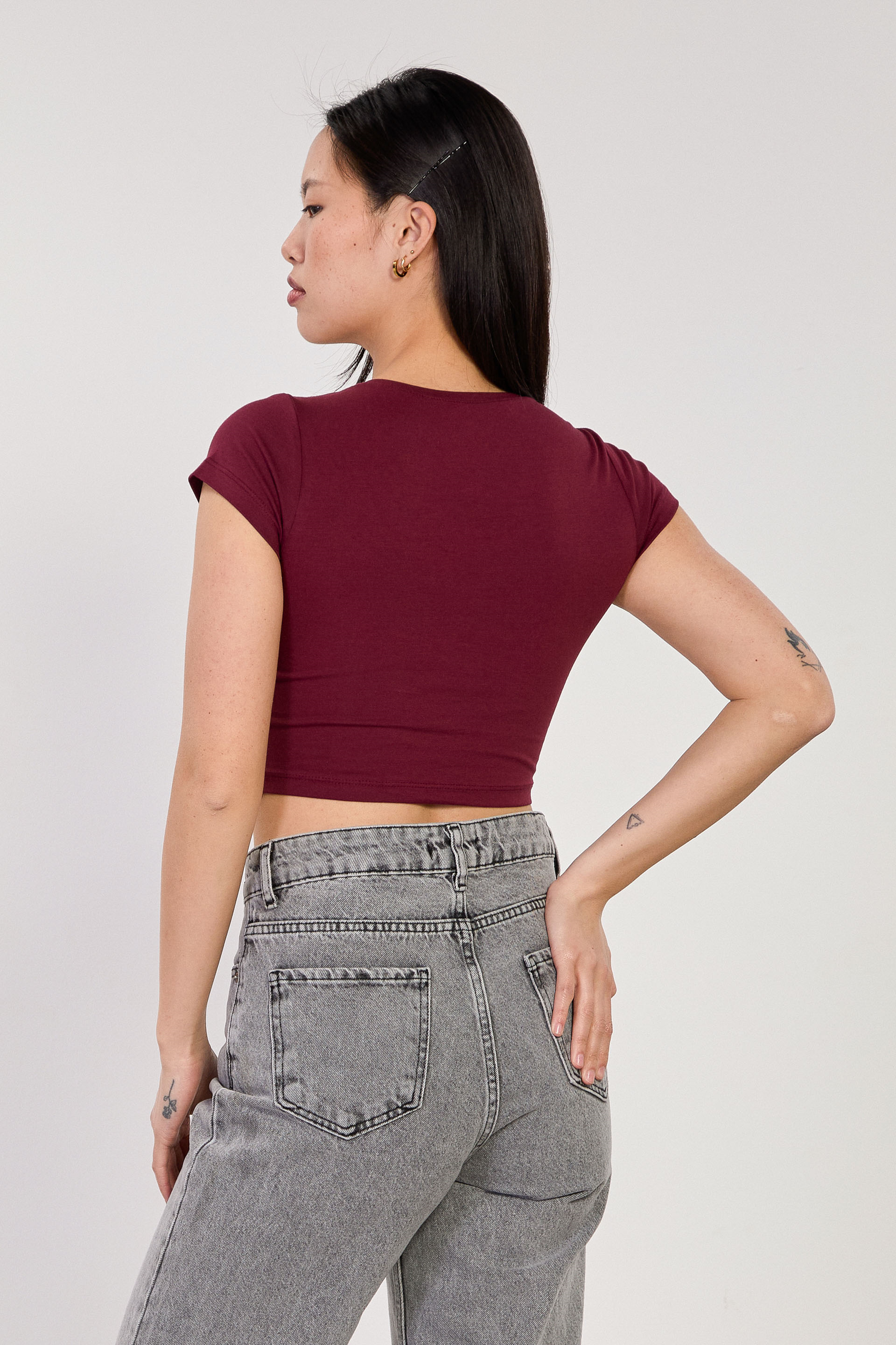Kadın Derin Yaka Crop Body - Vişne