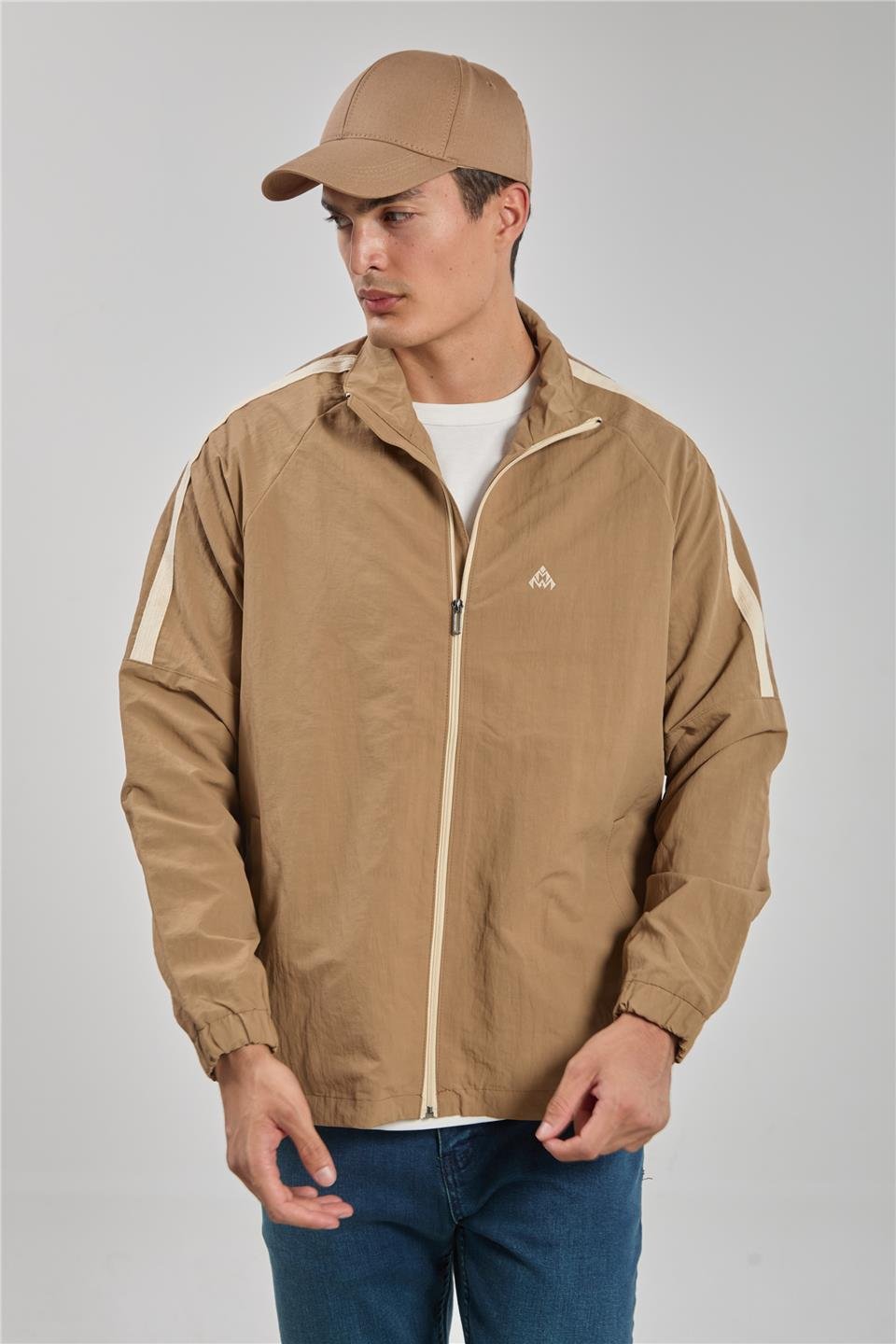 Erkek Dik Yaka Kalın Kol Biyeli Ceket - Vizon